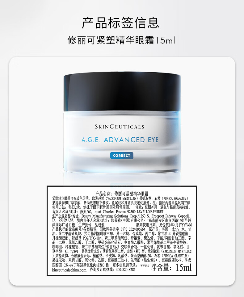 修丽可AGE眼霜15ml 护肤品提拉紧致淡化细纹保湿丰润圣诞礼物送女友