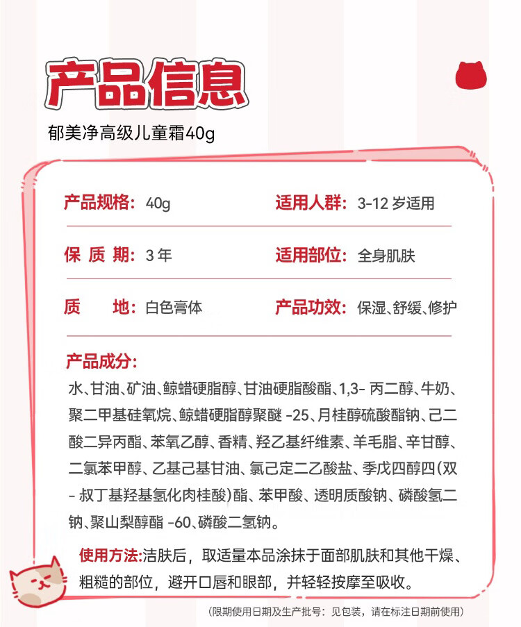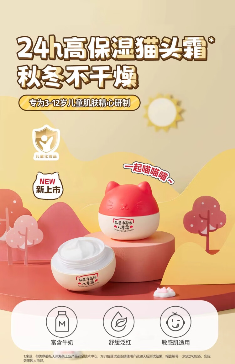 郁美净猫头霜40g高级面霜瓶装儿童面霜鲜奶滋润宝宝面霜保湿 软管霜30g*4