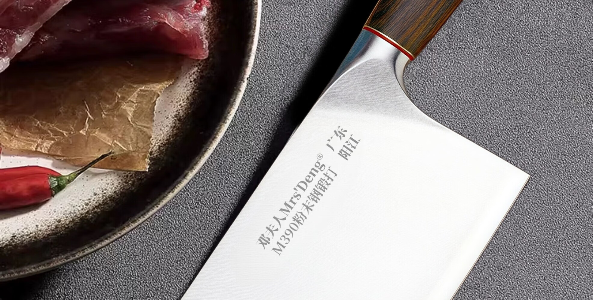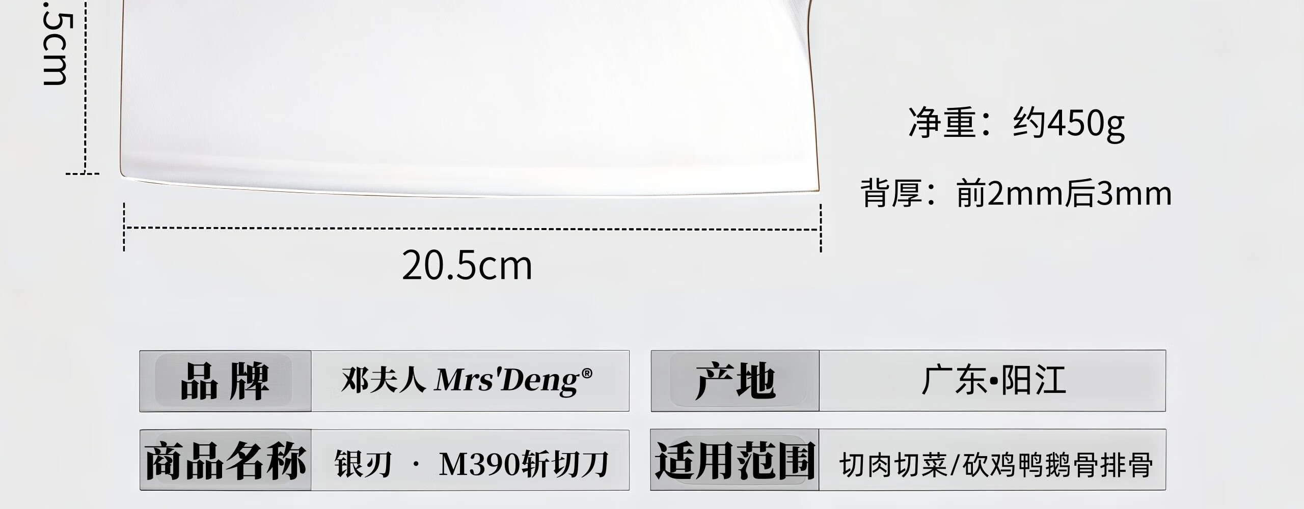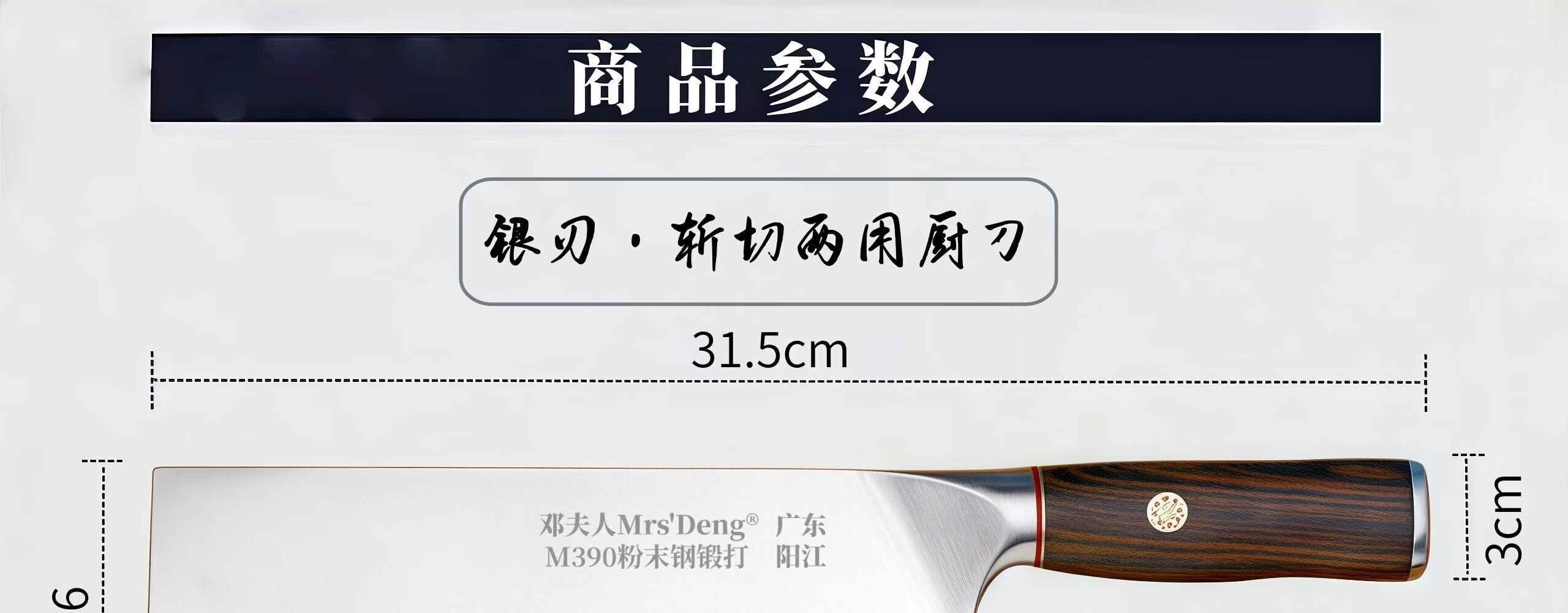 邓夫人 MRS'DENGM390粉末钢刀斩切刀厨房菜刀切菜刀厨师砍骨刀家用切片刀剁骨刀 【邓夫人】银刃--M390高端斩切刀