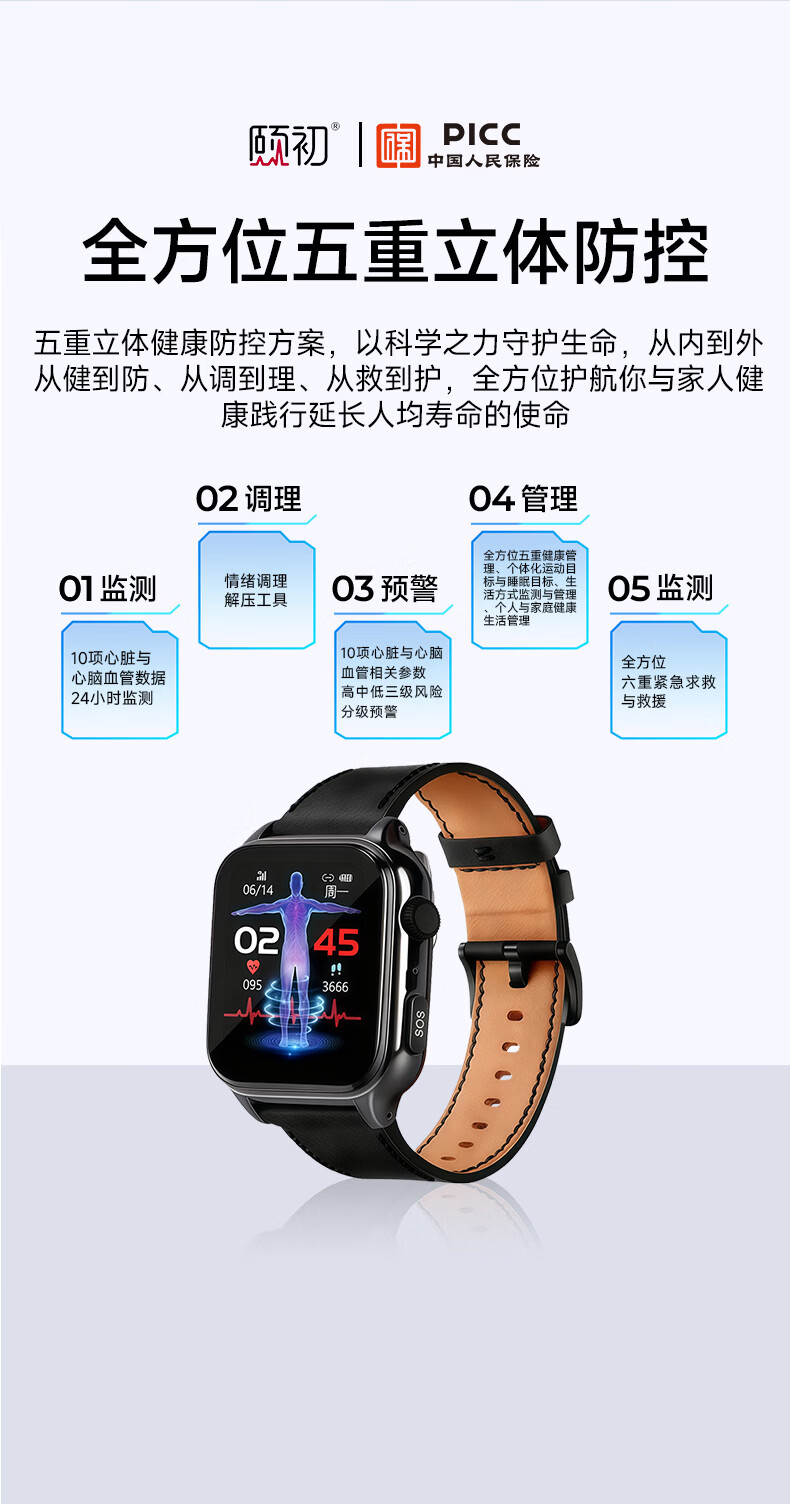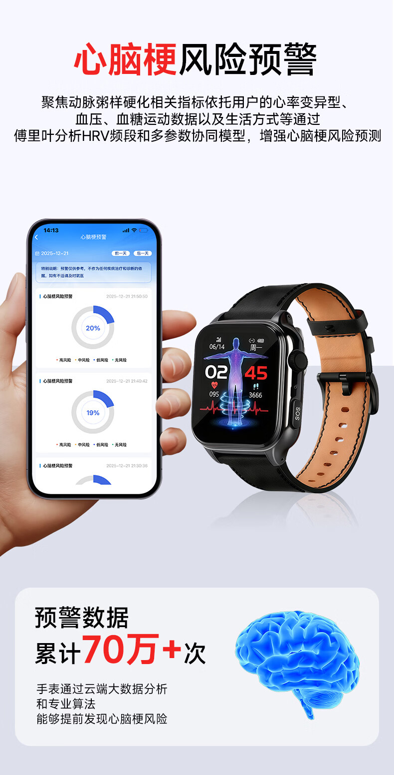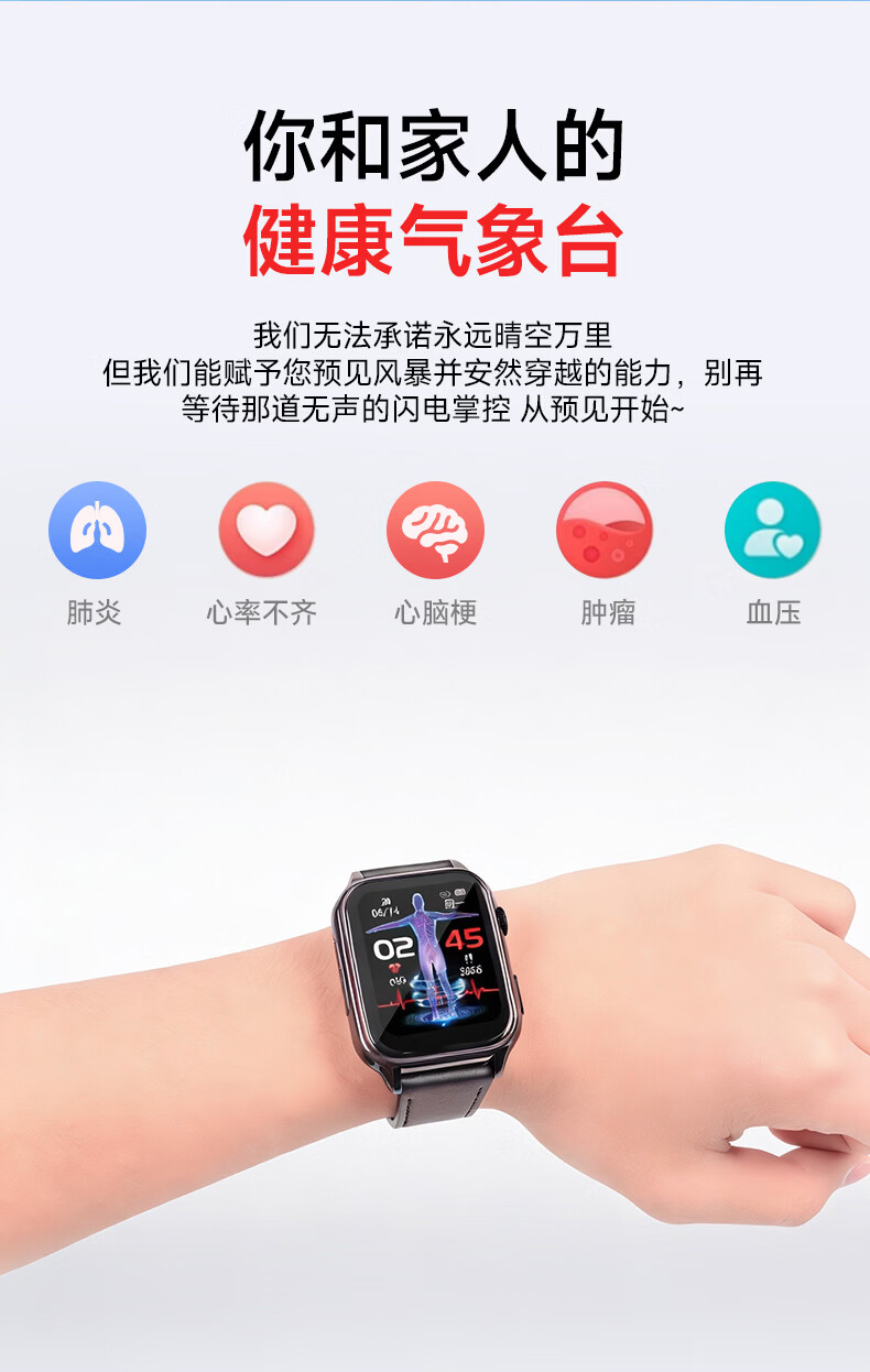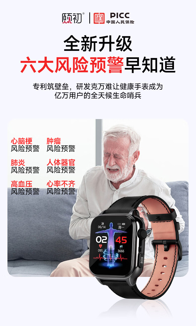 颐初健康预警手表X6系列 心脑梗肿瘤人体器官肺炎心律高血压血脂血氧无创测心率健康检测送礼老人 X6健康预警尊享版-冰原银