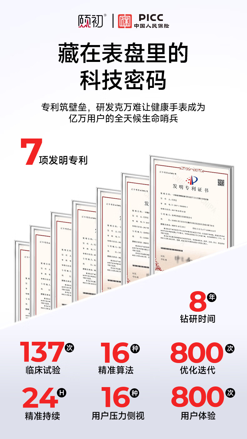 颐初健康预警手表X6 血压手表血糖监测手表心率血氧心脑梗智能手表血脂尿酸无创免扎针趋势监测手表 X6智能健康监测预警-冰原银