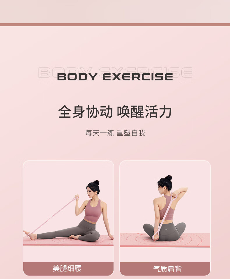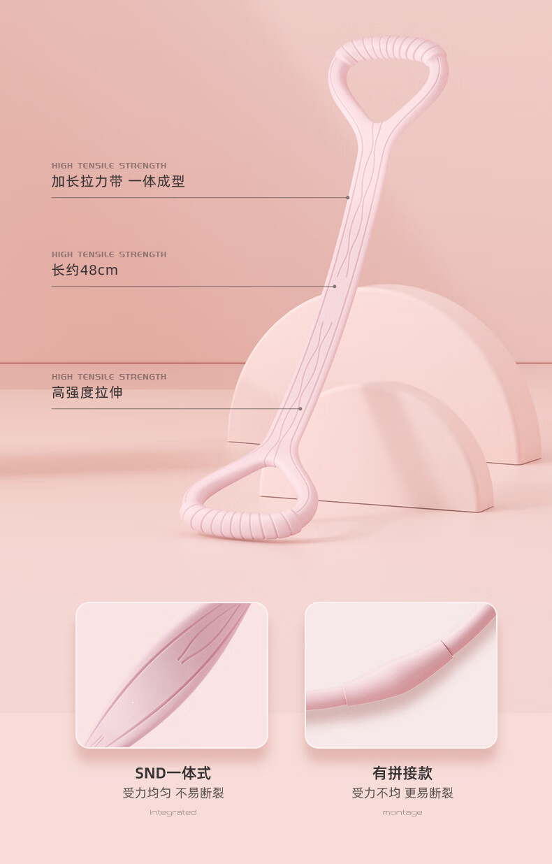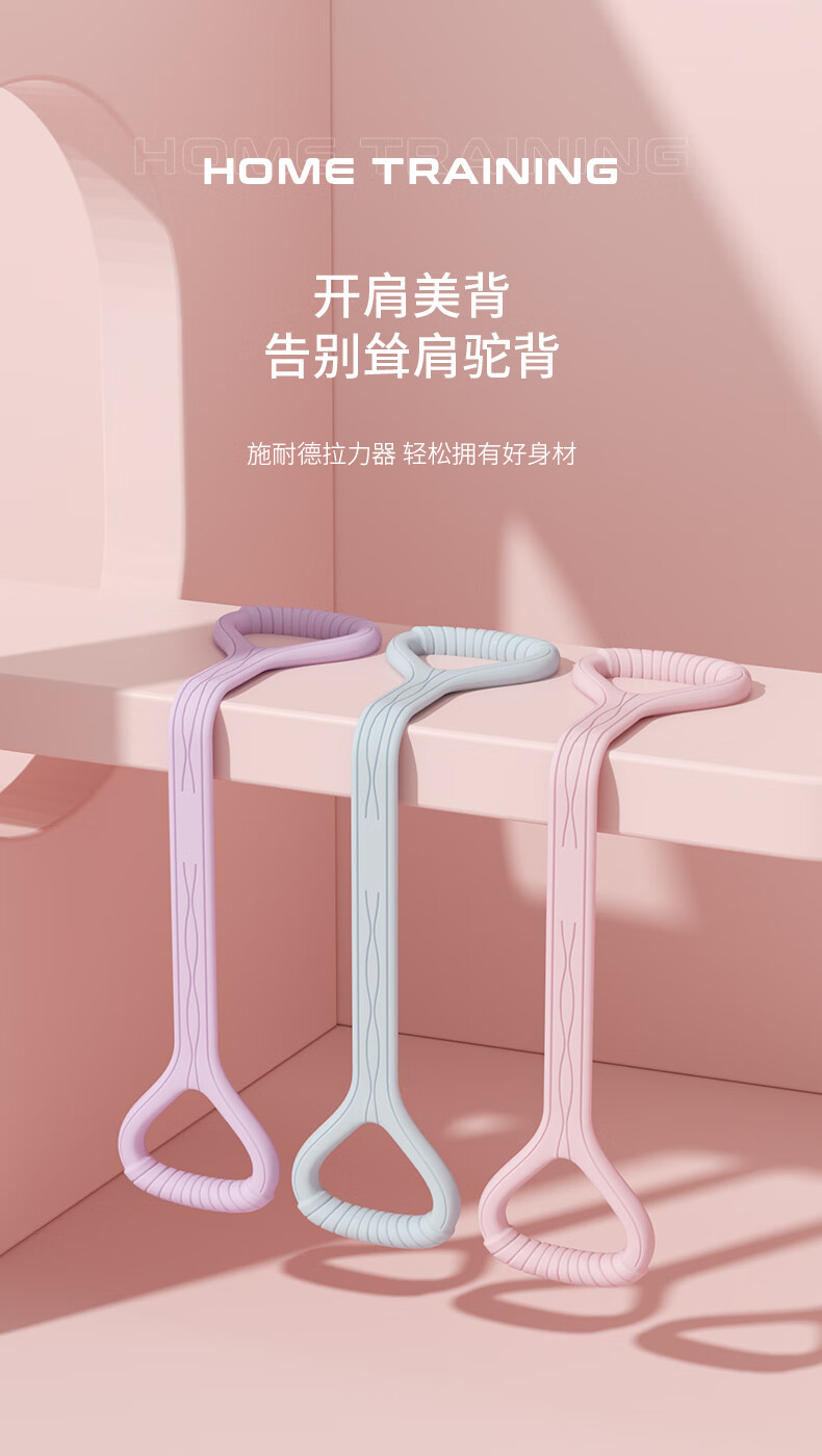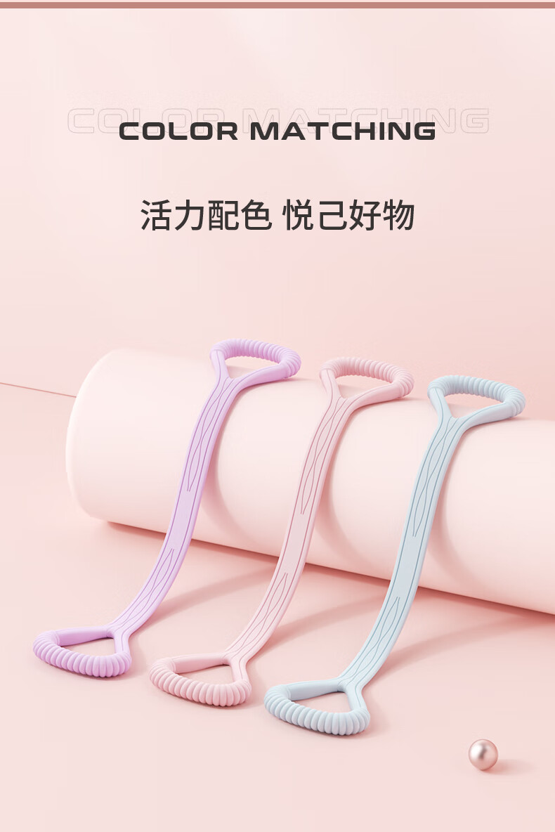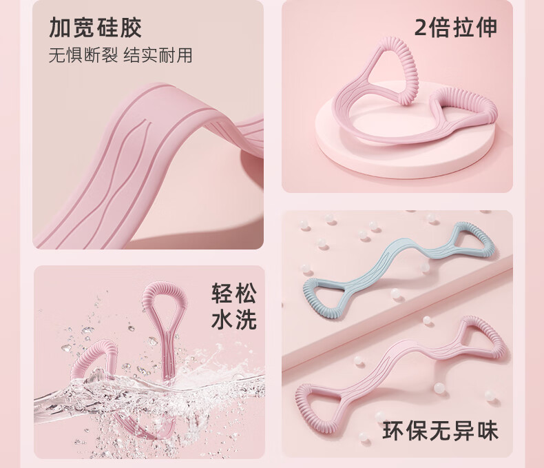女开背健身拉力绳弹力带锻炼器材家用瑜伽拉伸练背 双股款2条装【樱花粉】