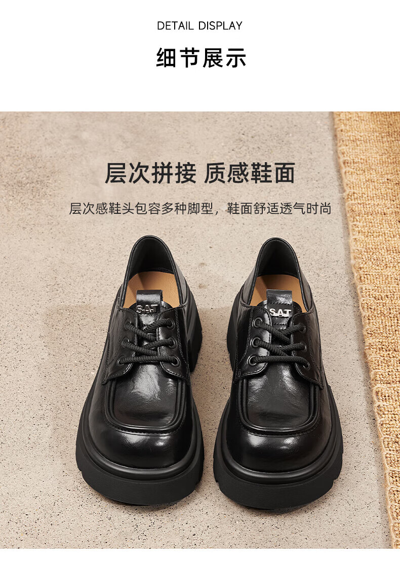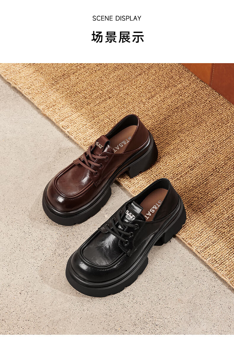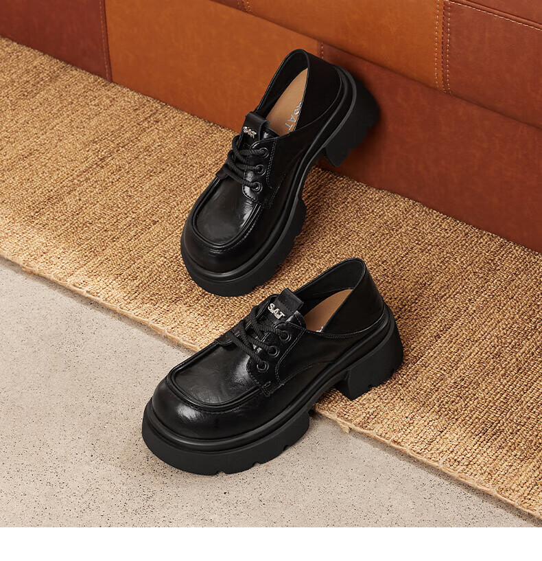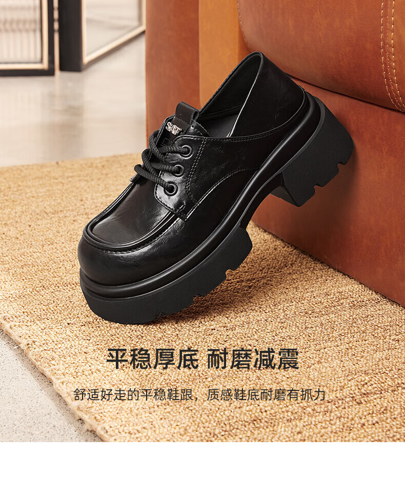 星期六厚底增高乐福鞋女2025新款爆款秋冬百搭鞋子黑色英伦小皮鞋女款 黑色 38