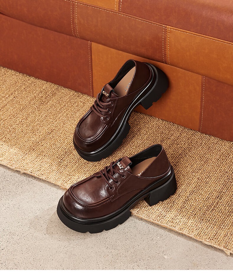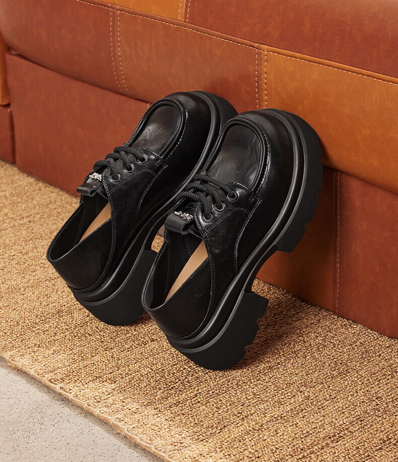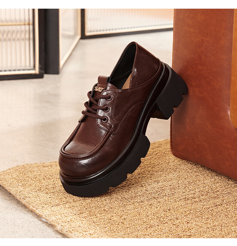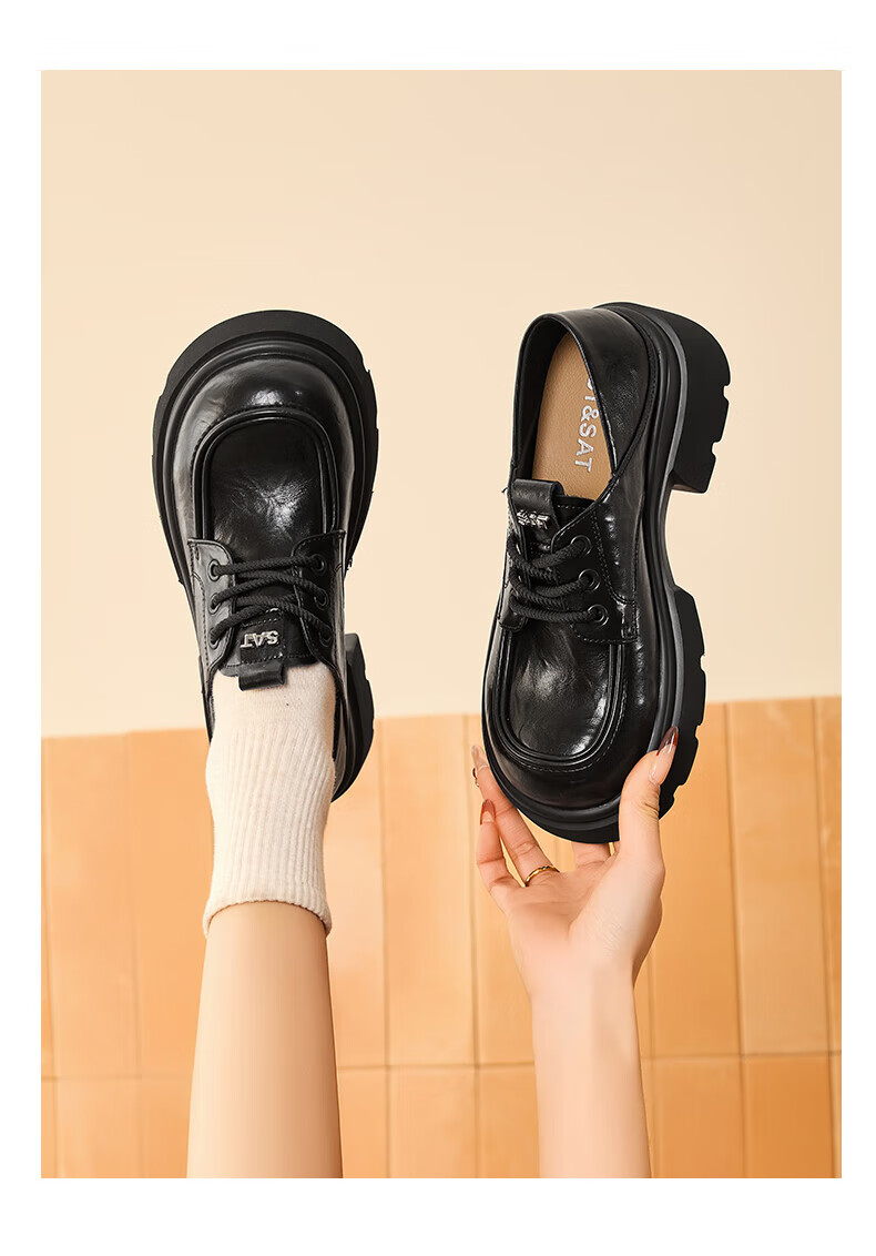 星期六厚底增高乐福鞋女2025新款爆款秋冬百搭鞋子黑色英伦小皮鞋女款 黑色 38