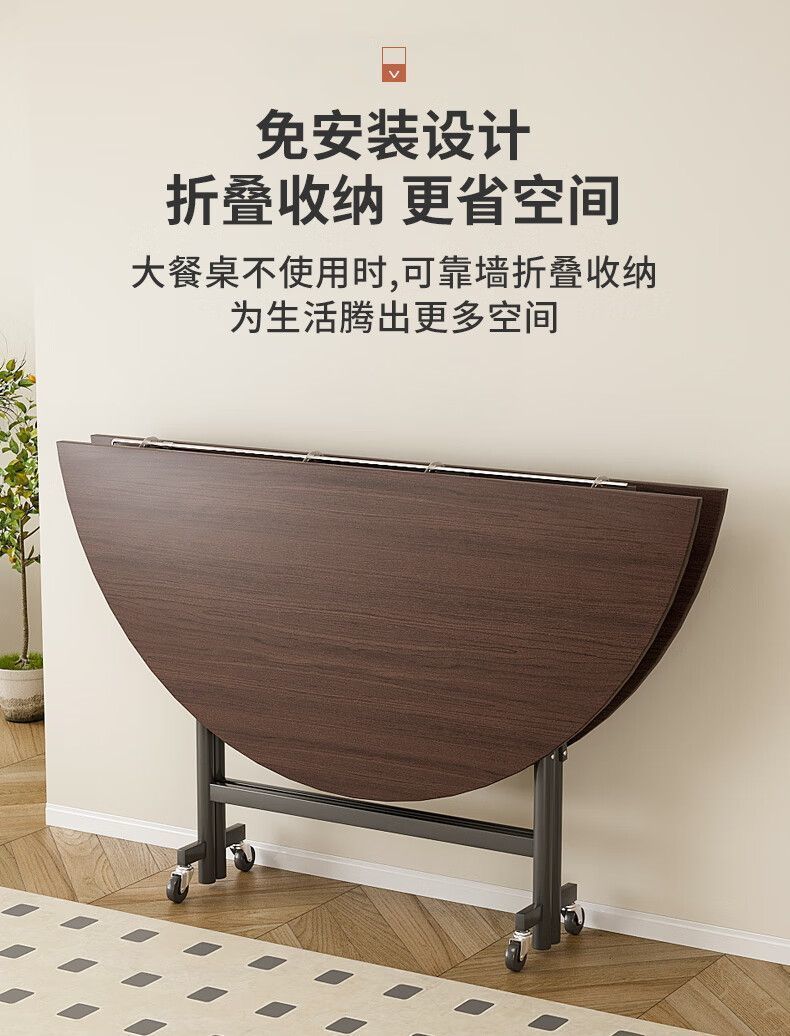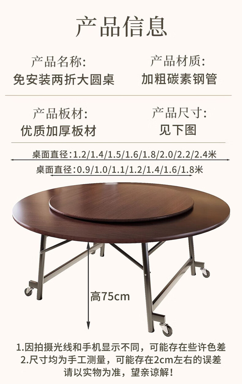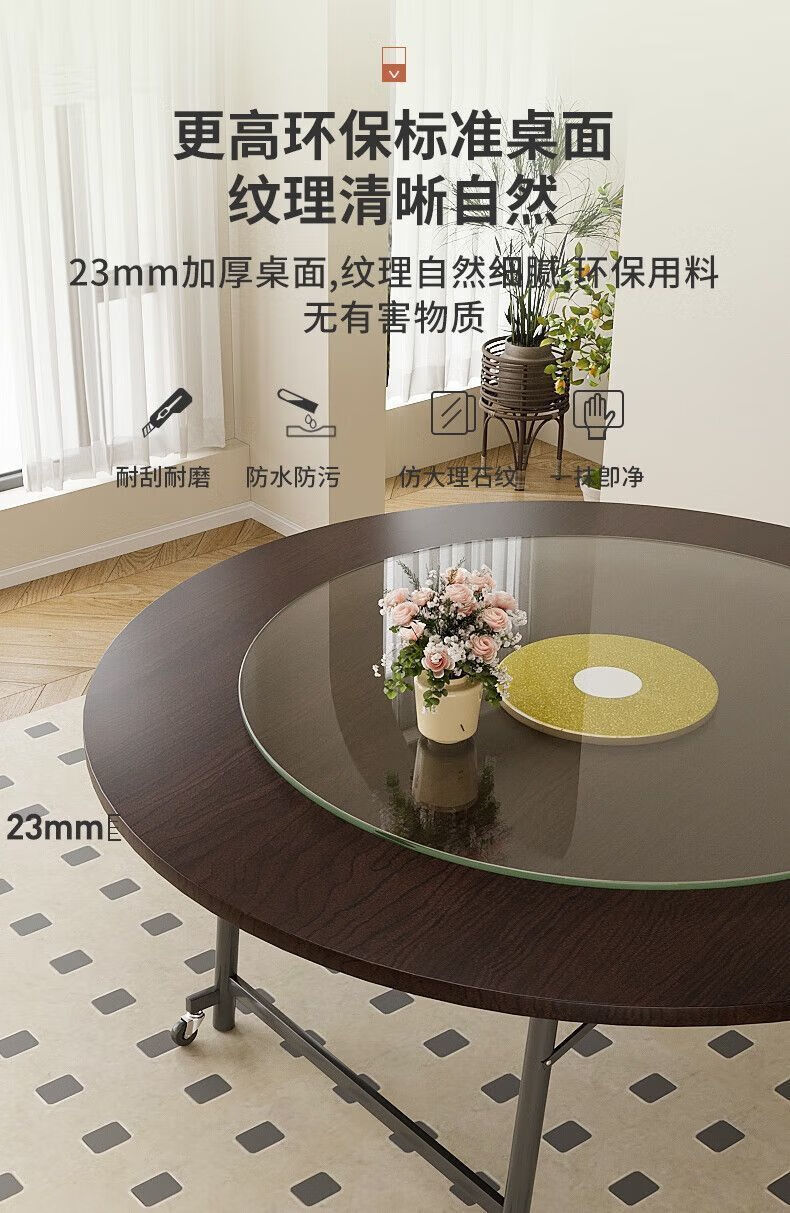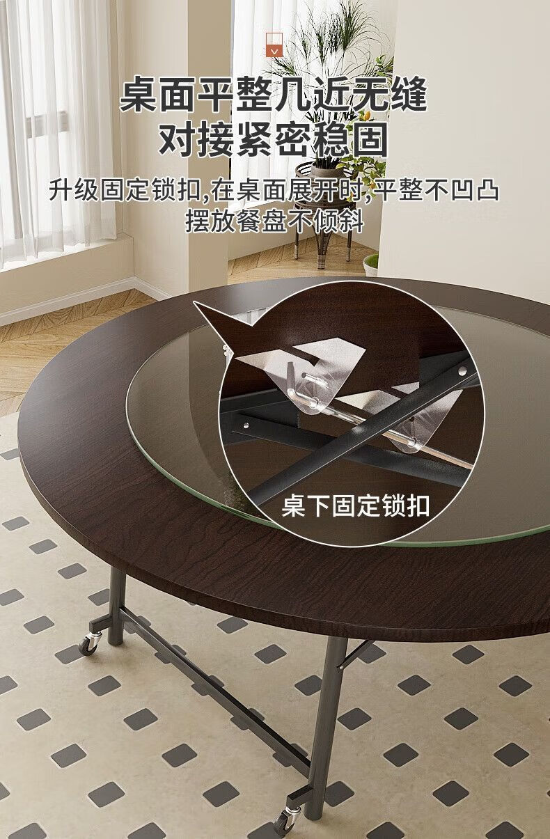 科虎折叠餐桌家用8-10人多功能可移动大圆桌带转盘小户型饭桌 23mm 黑胡桃纹 1.4m 单桌