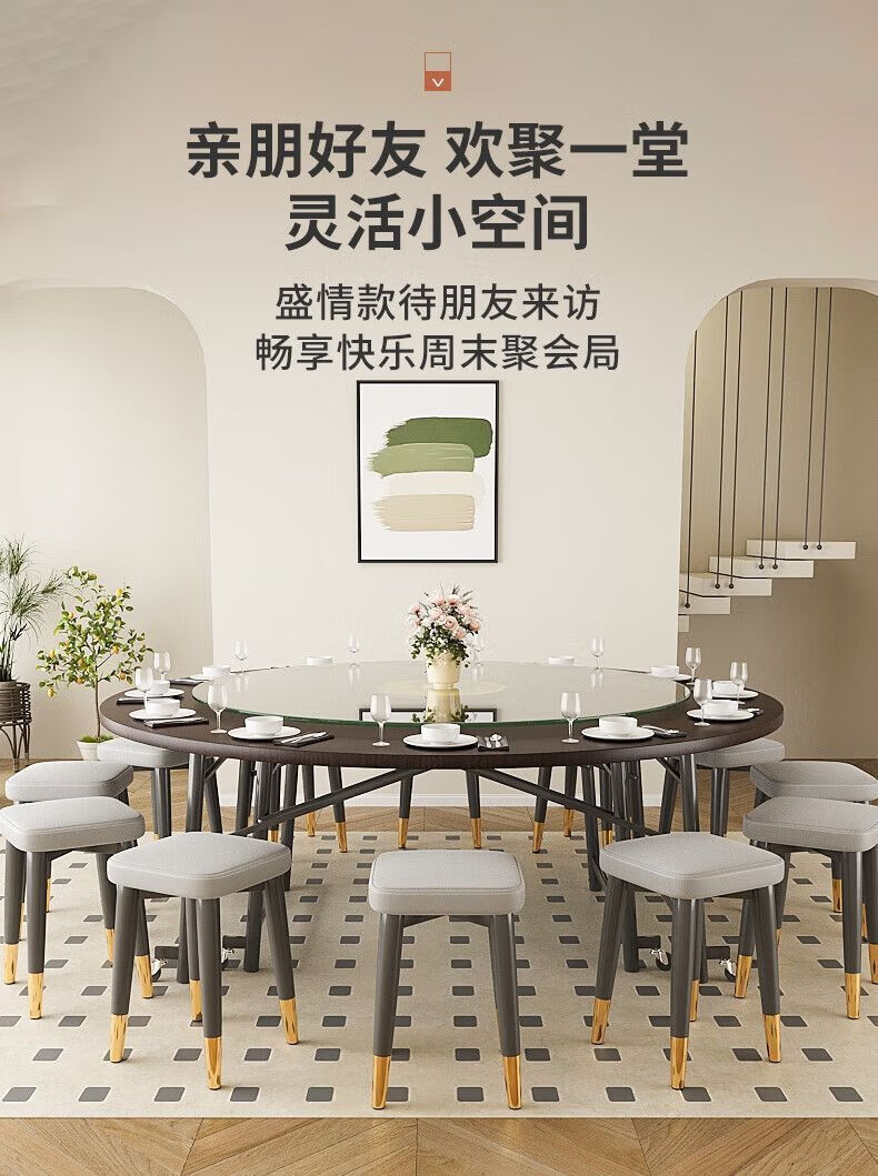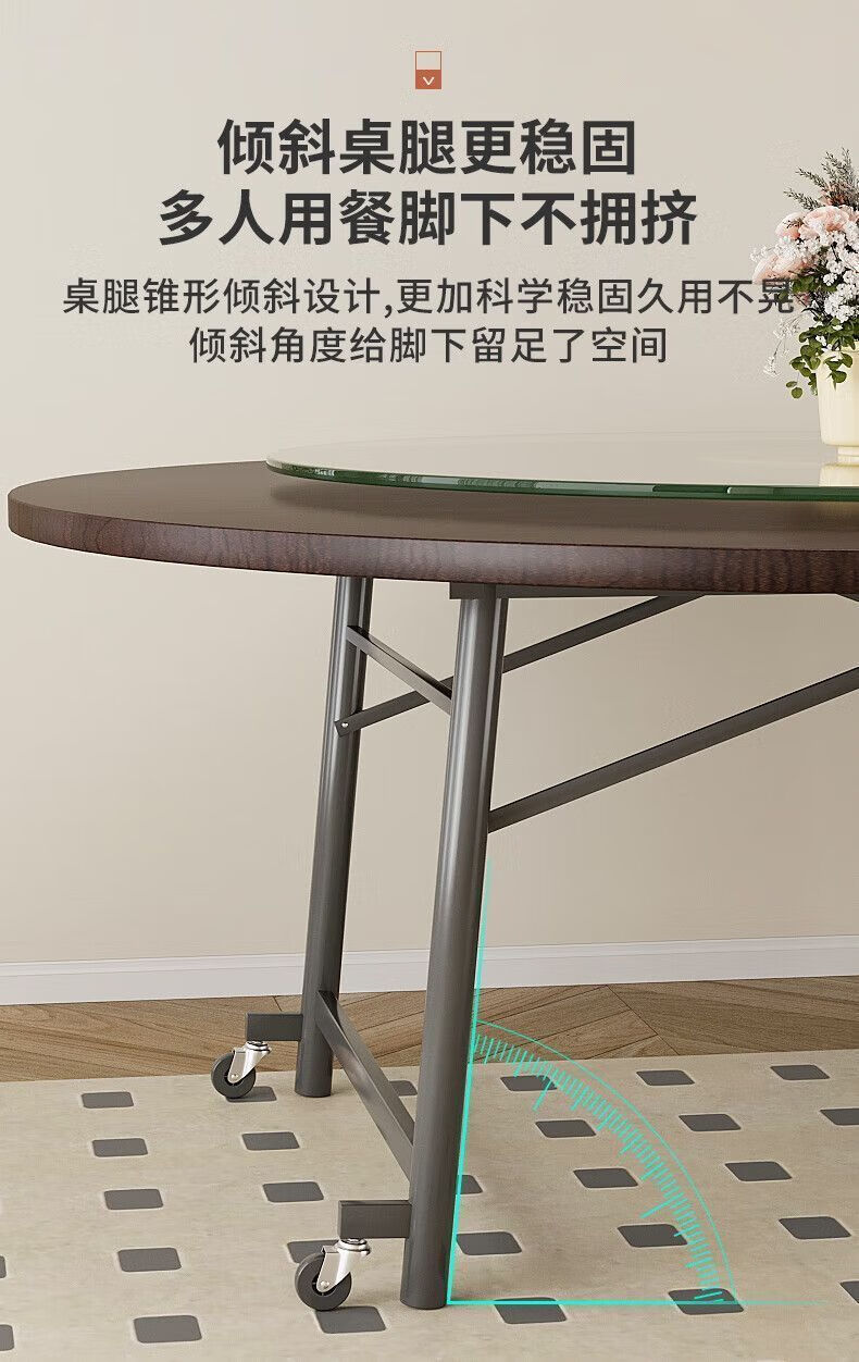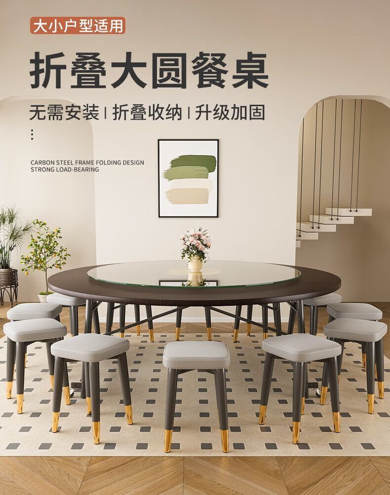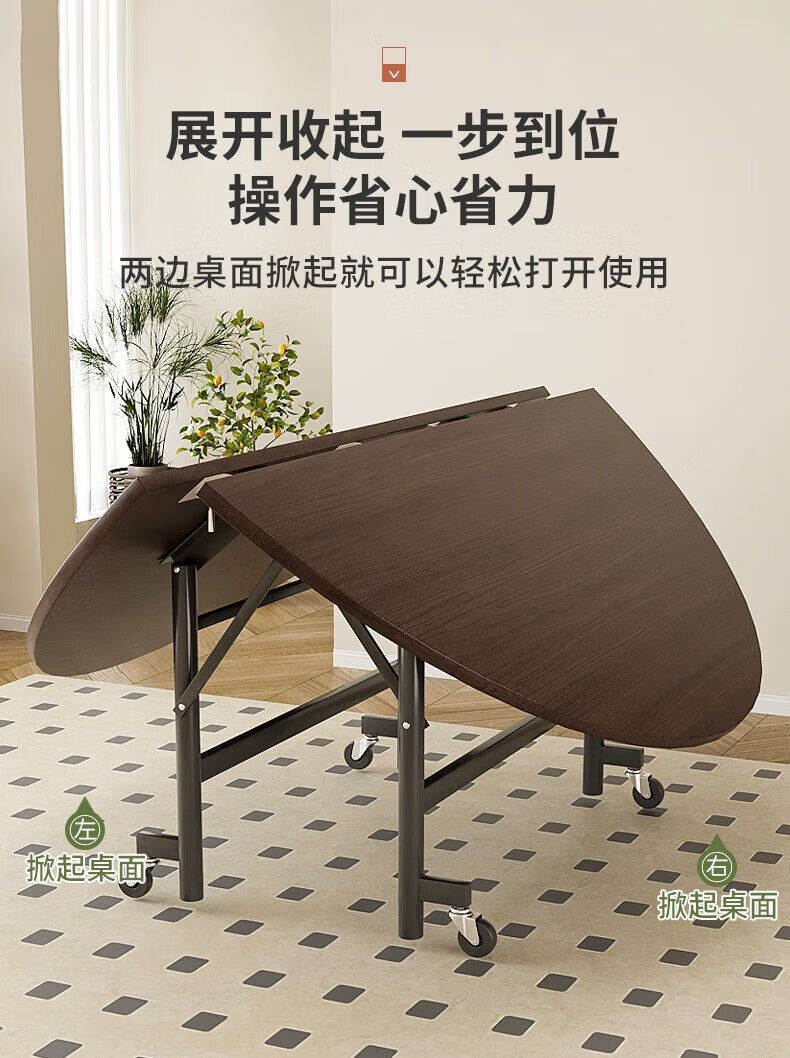 科虎折叠餐桌家用8-10人多功能可移动大圆桌带转盘小户型饭桌 23mm 黑胡桃纹 1.4m 单桌