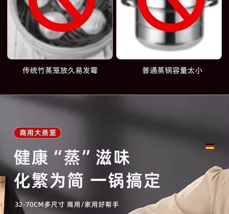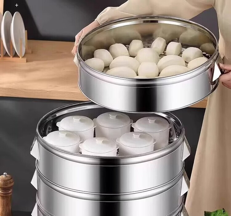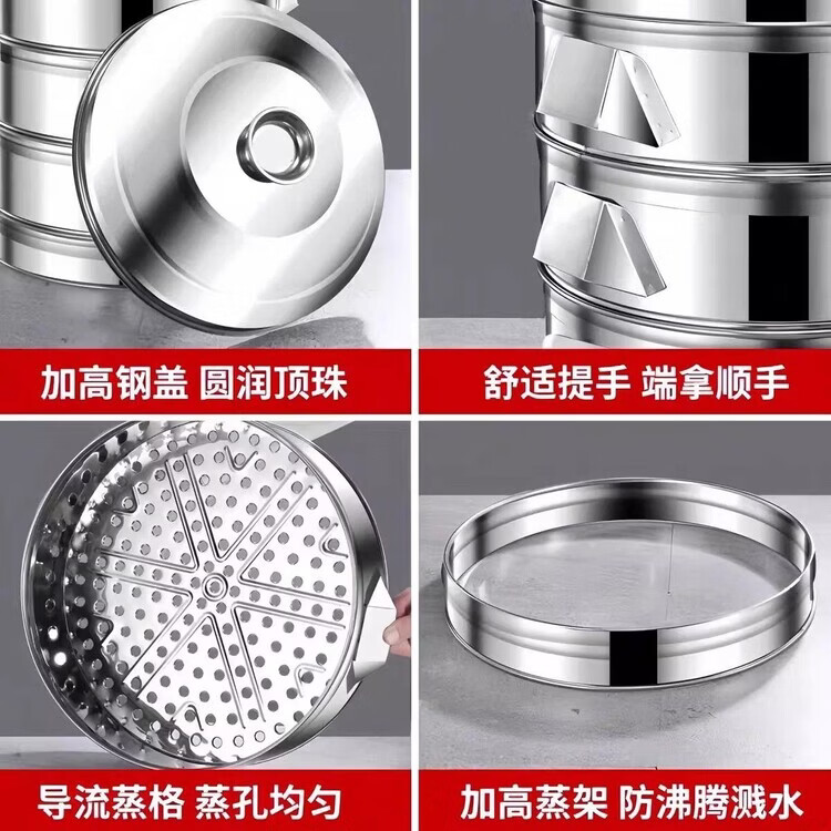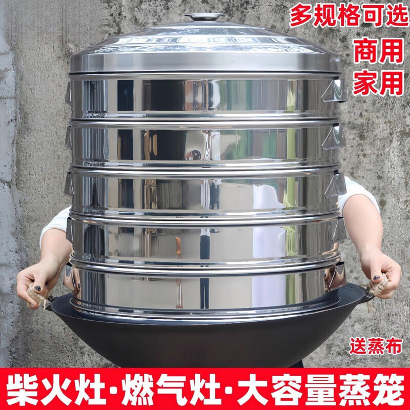 咏夏蒸笼特厚不锈钢商用蒸格蒸锅笼屉农村柴火灶多层超大容量蒸包子 【40CM】4层蒸笼+底圈+盖子【送蒸布】