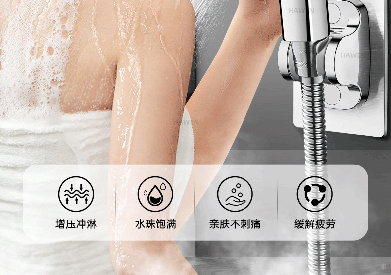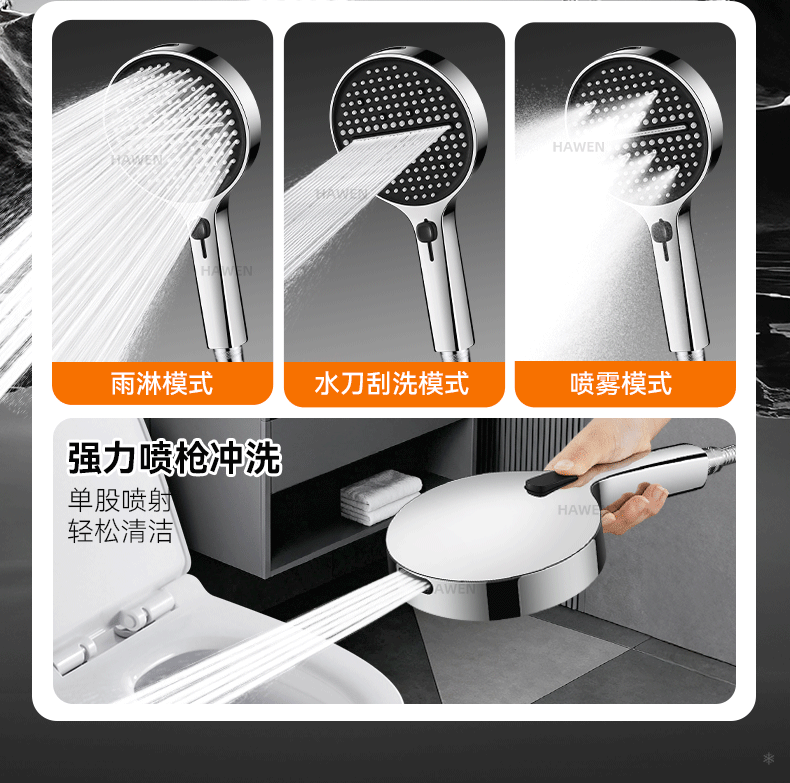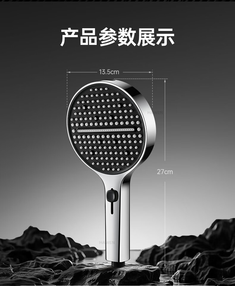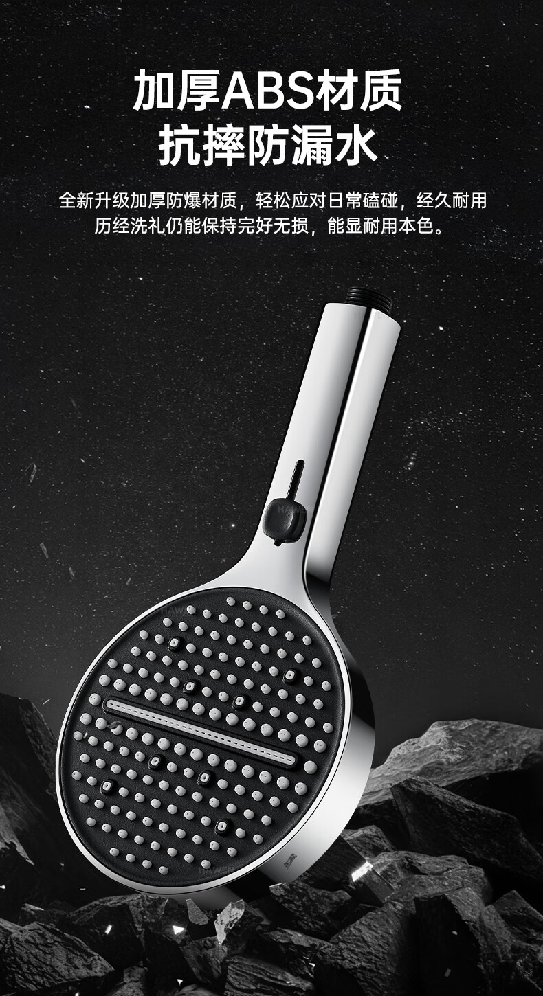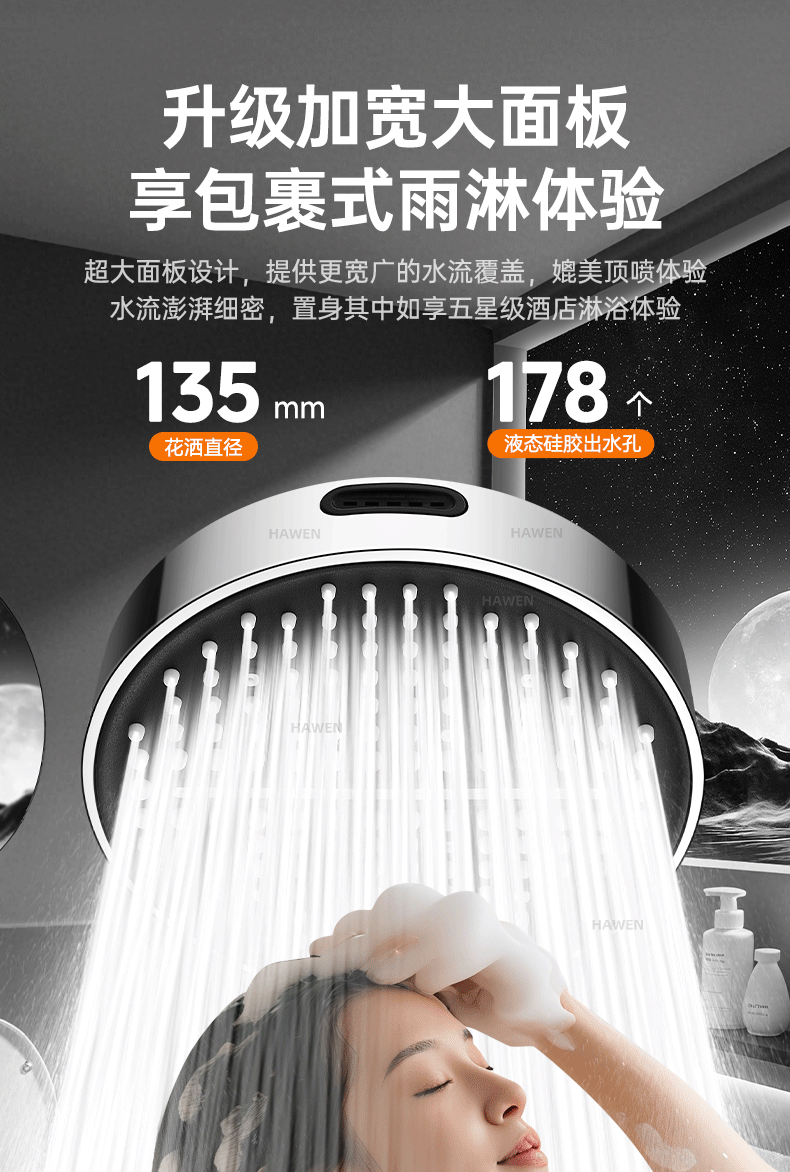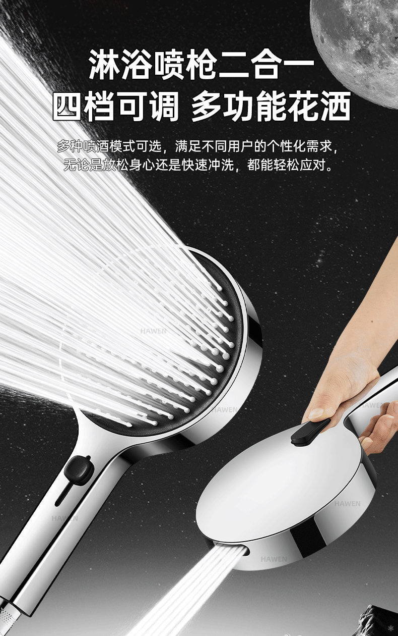 hawen【德国】增压花洒淋浴喷头家用浴室多功能加压手持莲蓬头无极花洒 【银黑】花洒+软管丨无极按键调节 四档切换丨硅胶大面板丨AIR空气超强增压