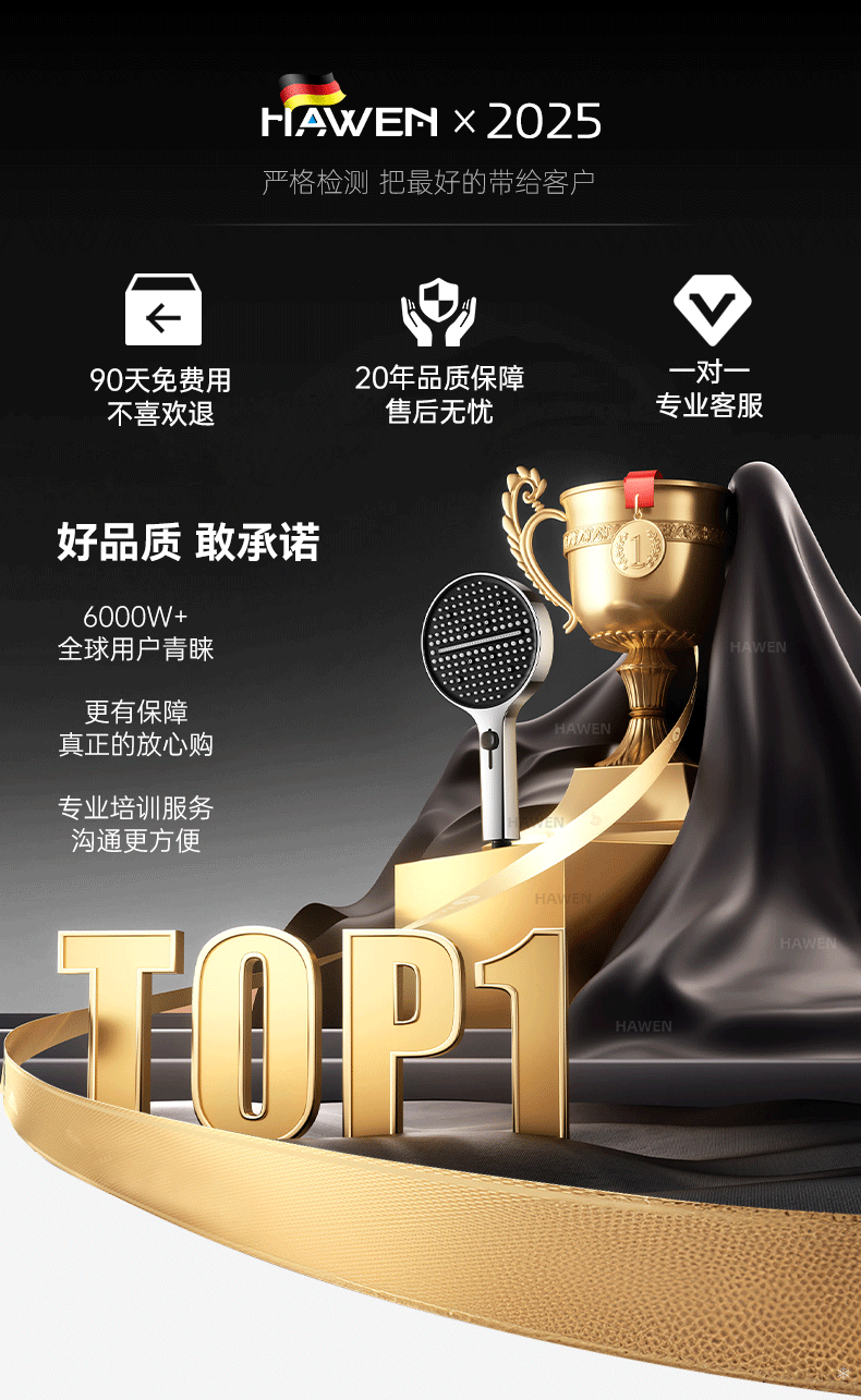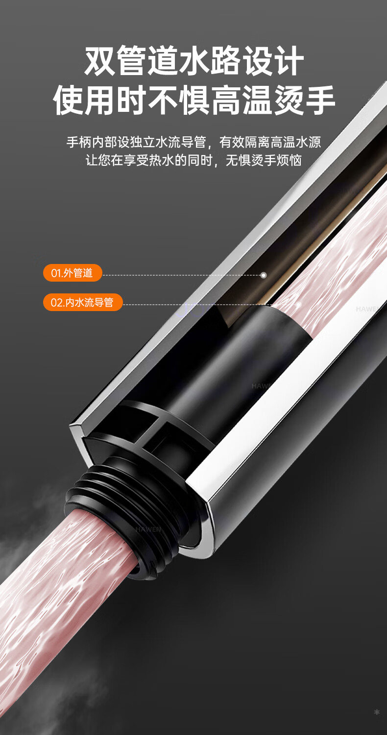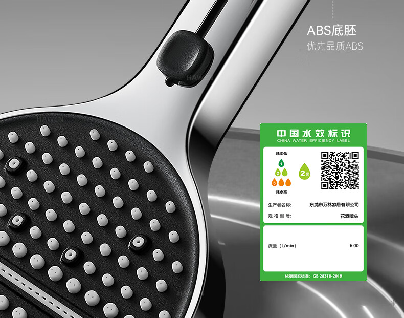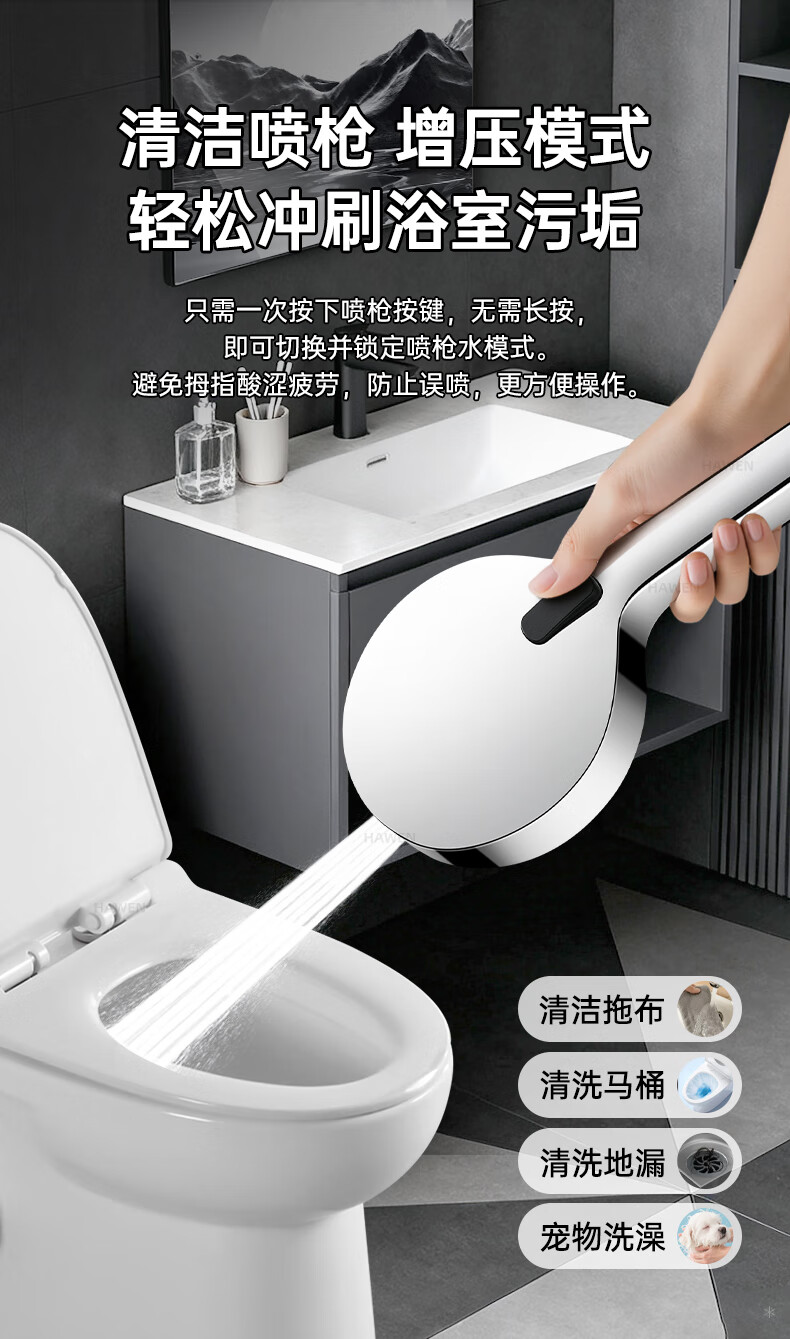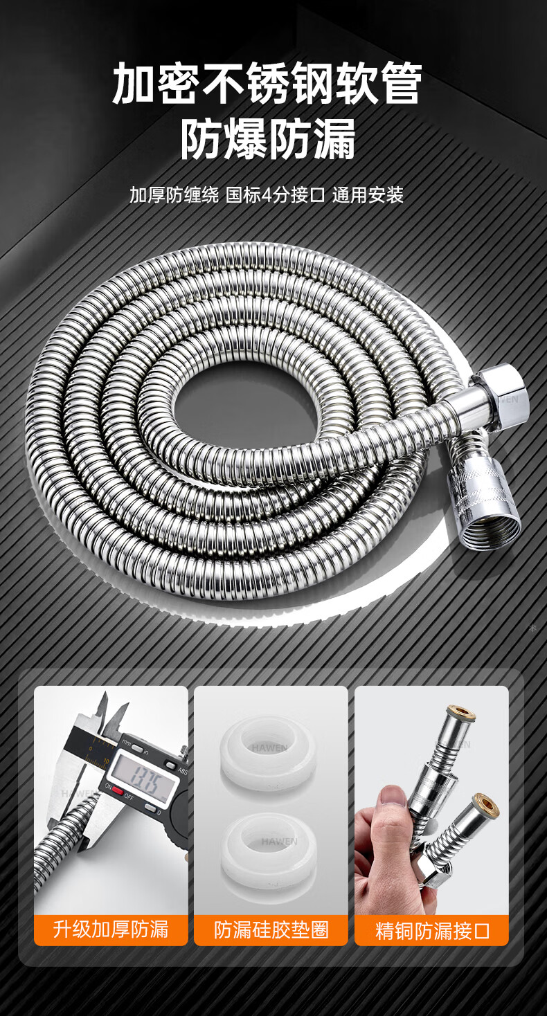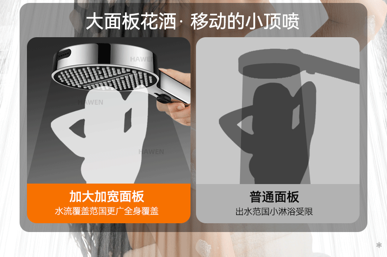 hawen【德国】增压花洒淋浴喷头家用浴室多功能加压手持莲蓬头无极花洒 【银黑】花洒+软管丨无极按键调节 四档切换丨硅胶大面板丨AIR空气超强增压
