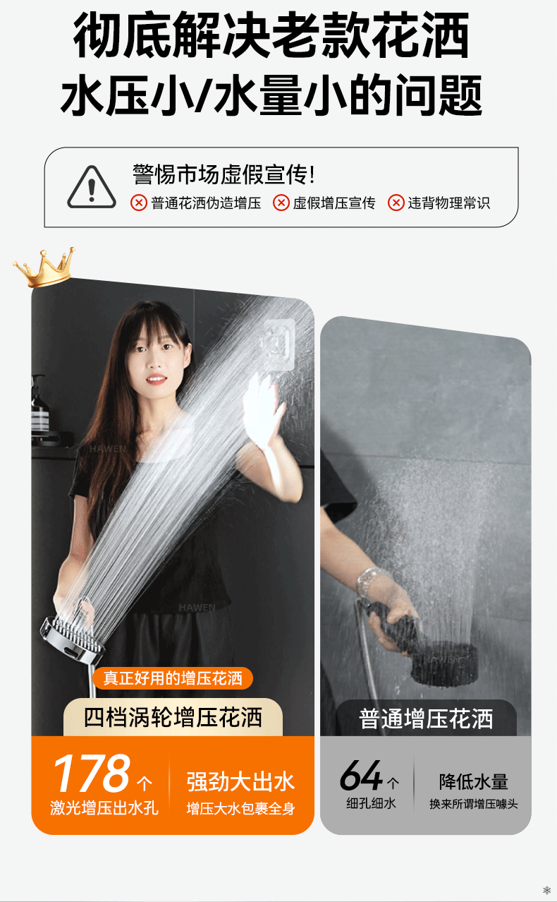 【甄选百货】通用淋浴花洒喷头增压大出水淋雨套装家用洗澡手持花 增压花洒【十年质保】 无规格