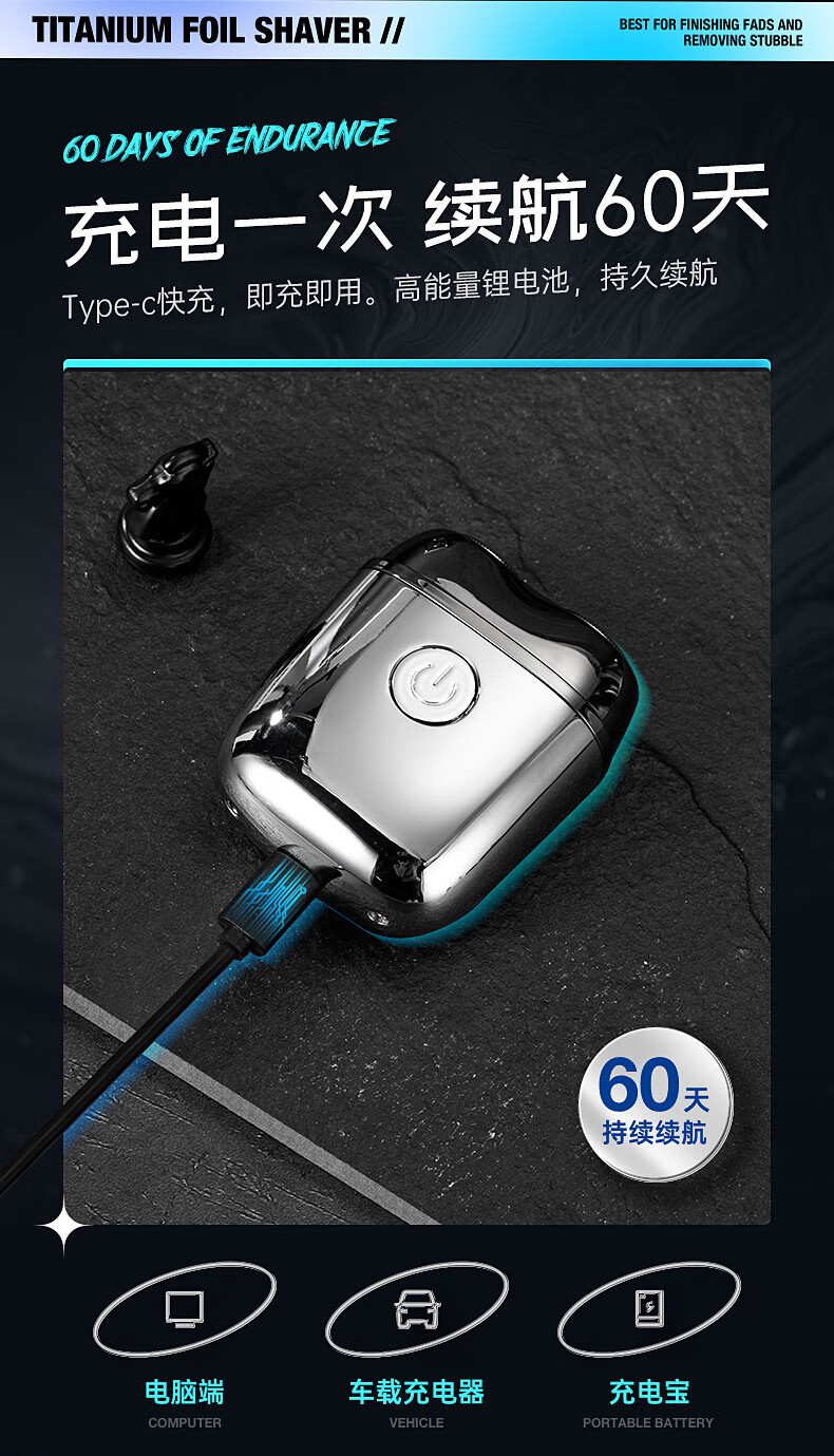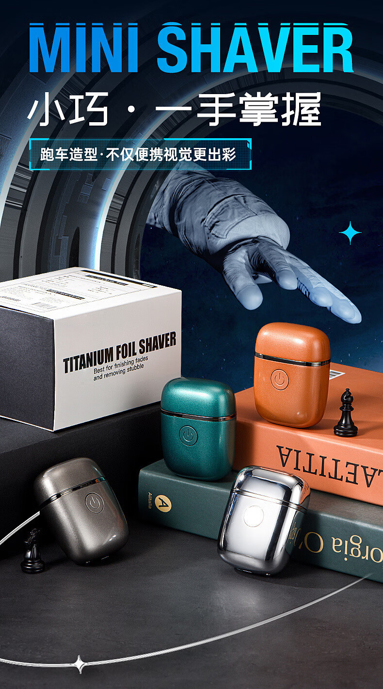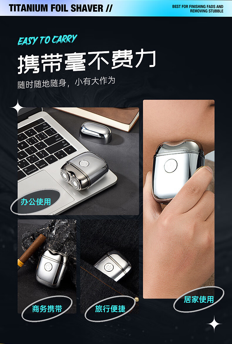 RABACIO德国品牌剃须刀电动男士2025新款高端迷你旅行便携刮胡刀胡须子不留黑点情人节礼物送男友父亲爸爸 流光银+礼盒装(当/次日达) 剃须刀热卖第一 剃须刀哪个品牌好