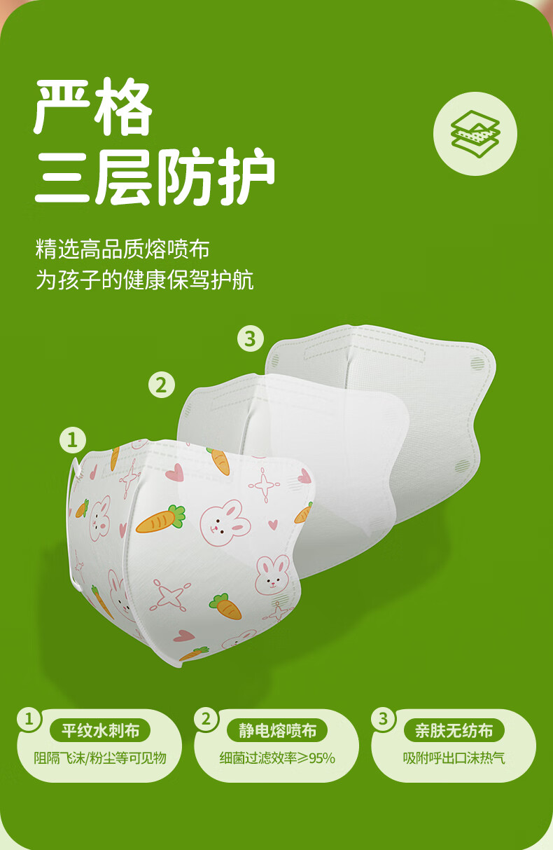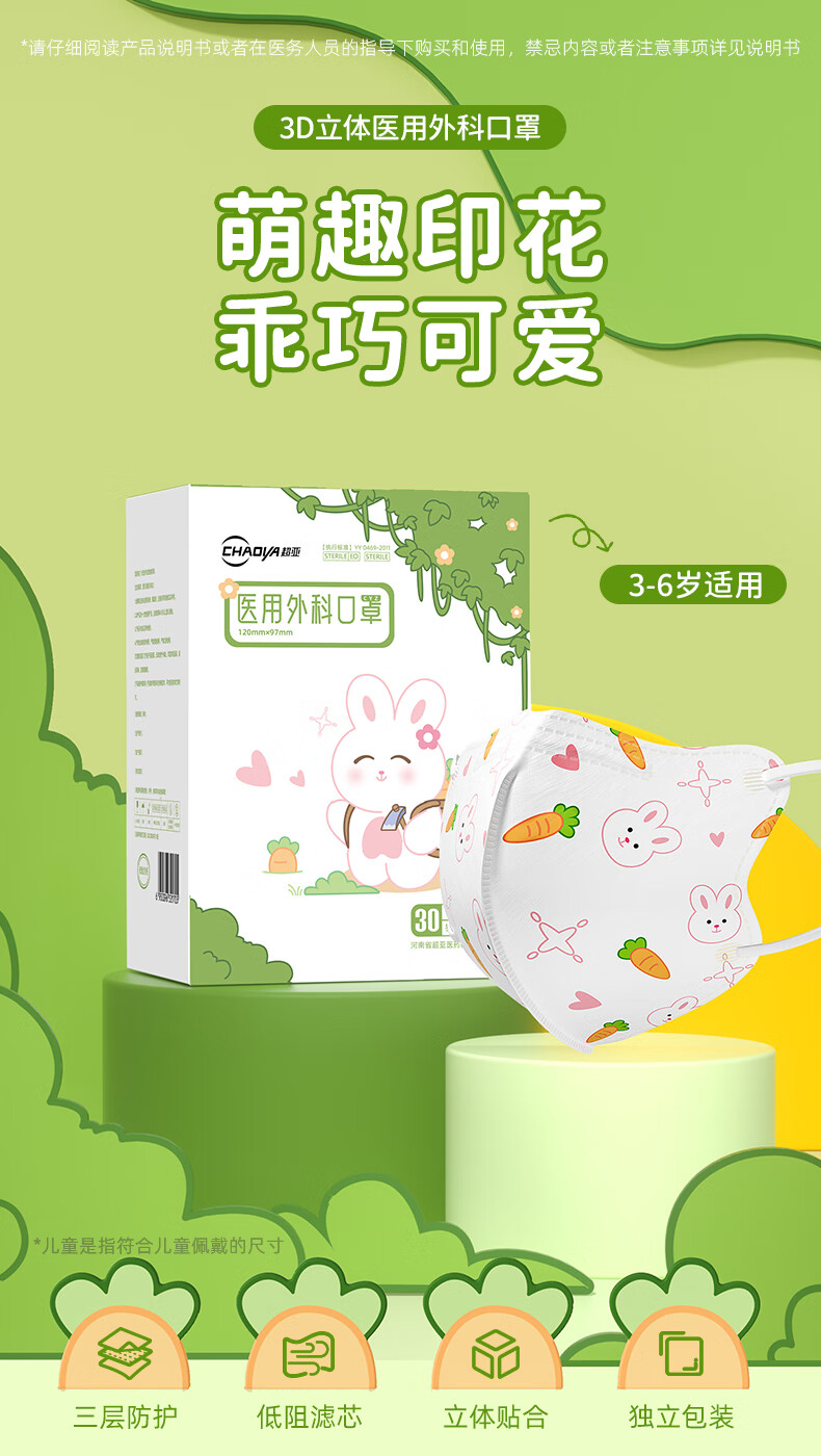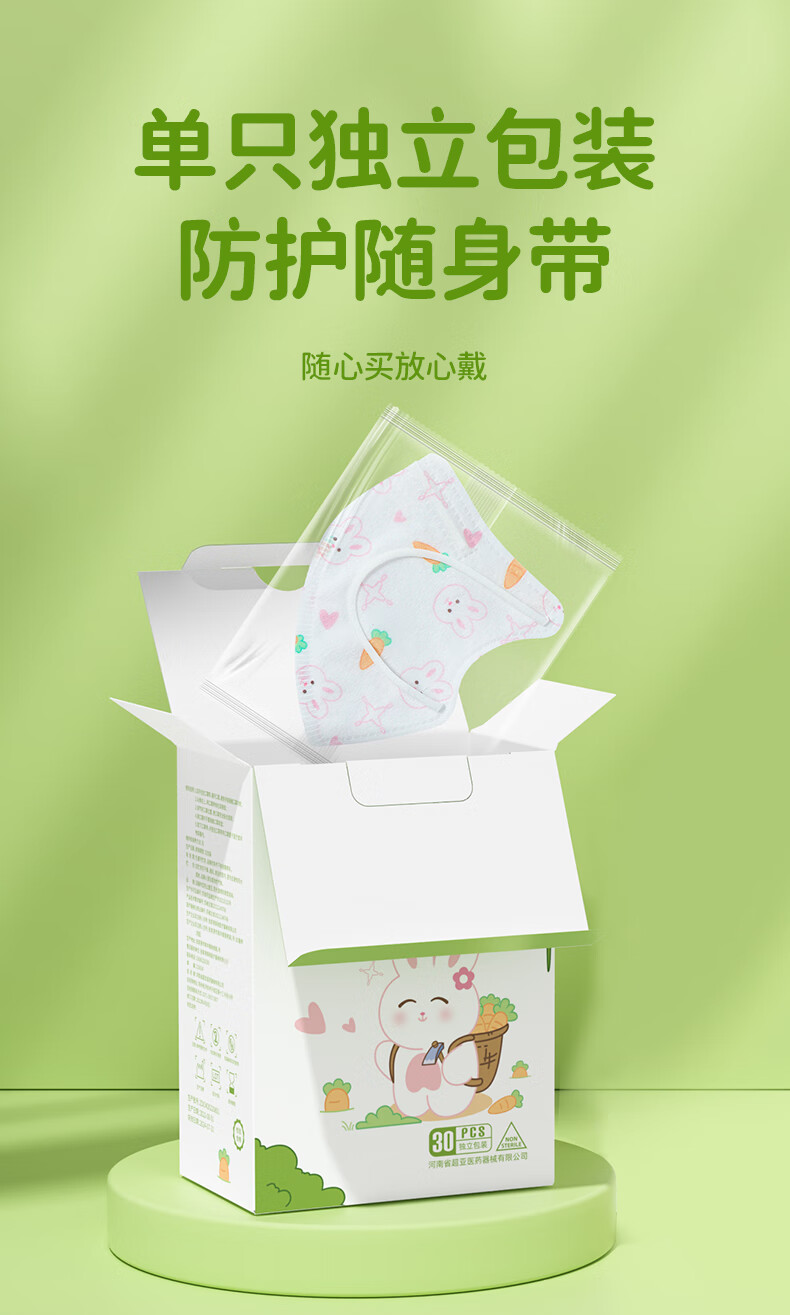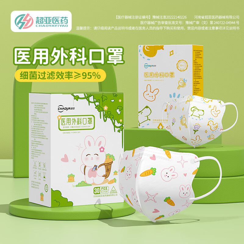 超亚 儿童3d立体口罩医用外科儿童口罩3-6岁防过敏小孩独立装30只/盒
