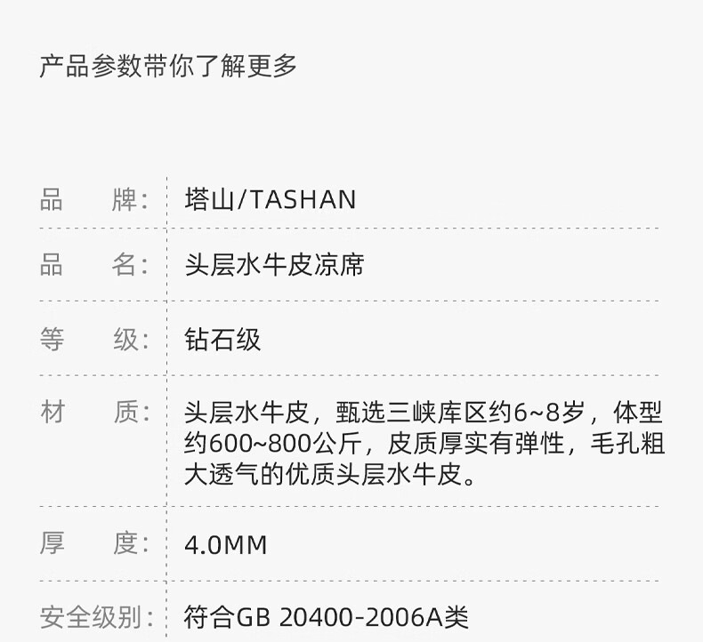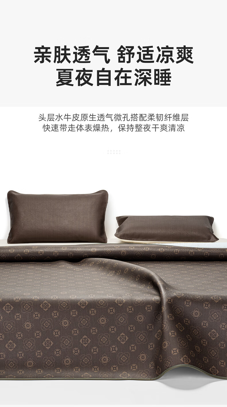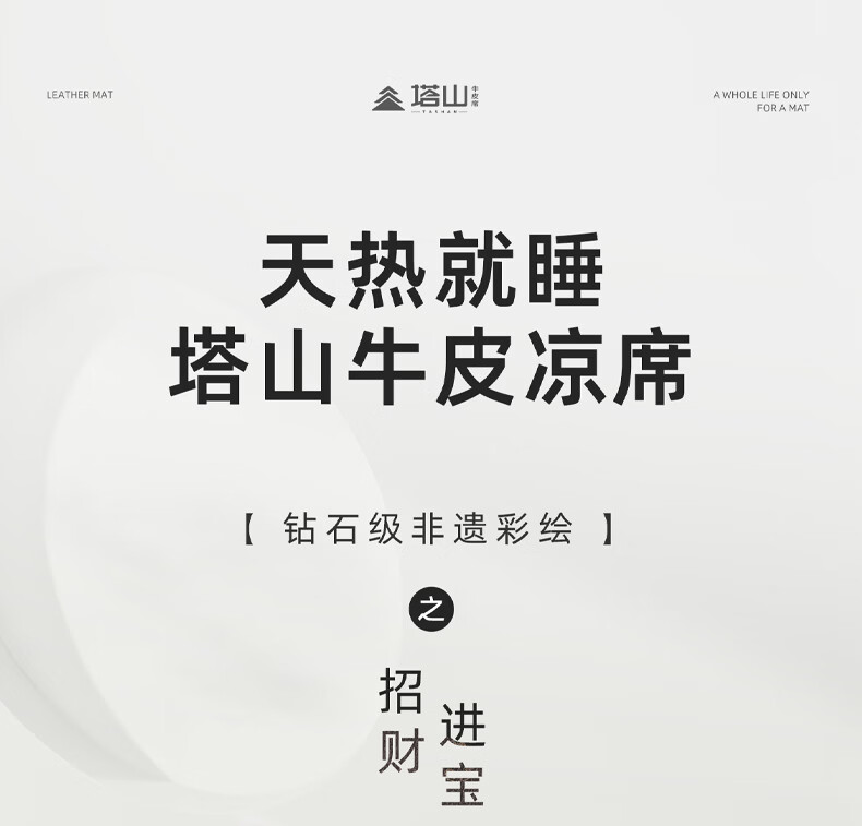 塔山(TASHAN)牛皮凉席头层水牛皮席真皮彩绘高端软席加厚夏季A类母婴三件套 招财进宝 钻石4mm 三件套 150cm*200cm