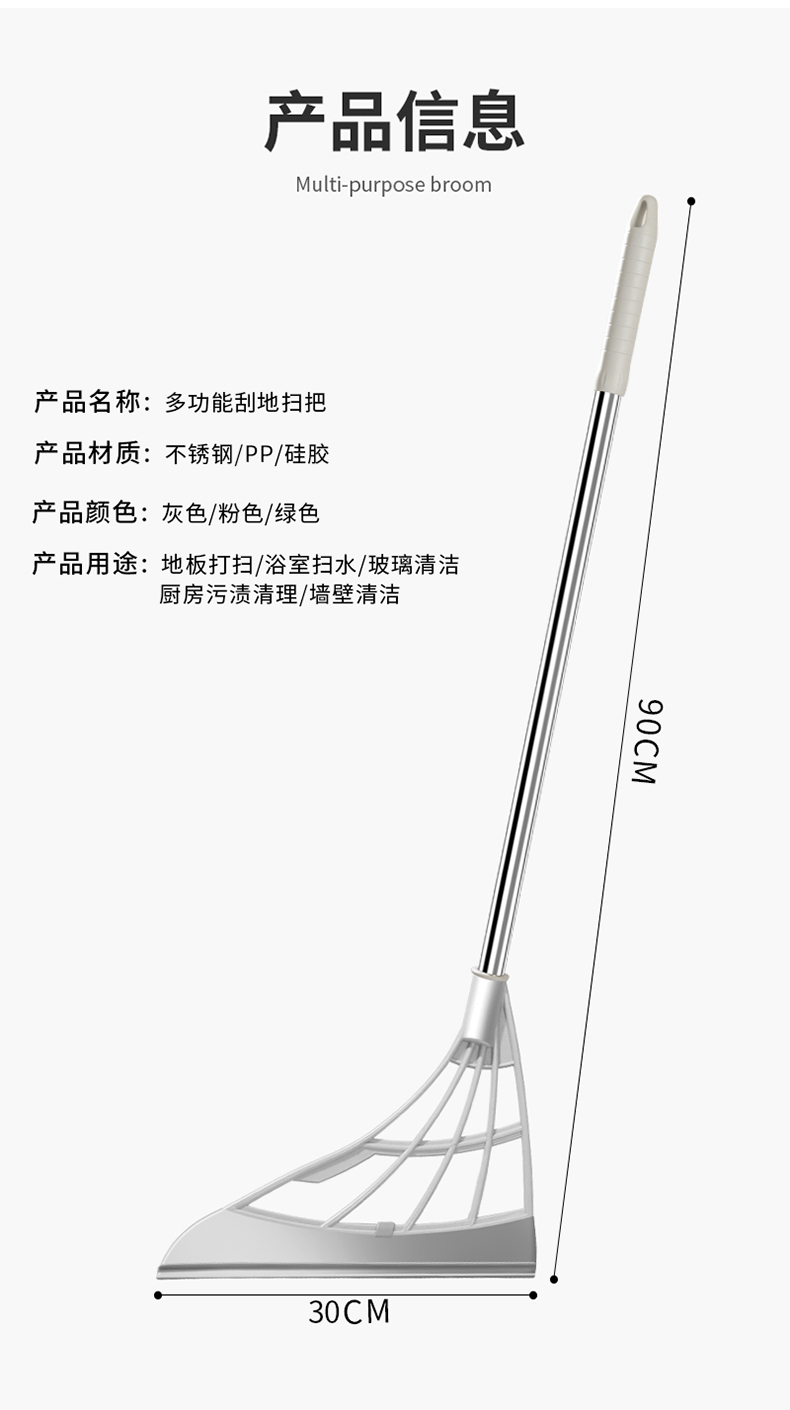 欧蓝月扫把魔术扫把家用硅胶扫把地板玻璃刮水扫地两用扫地神器灰色