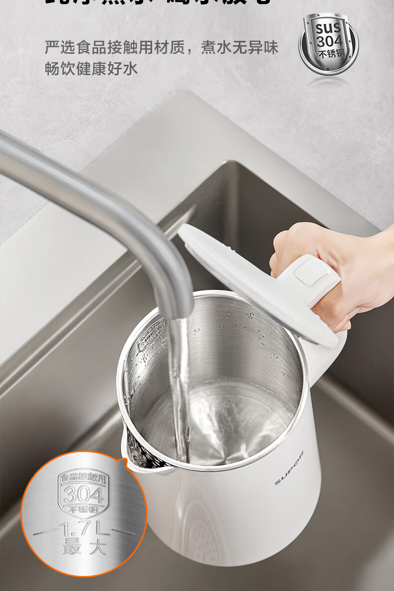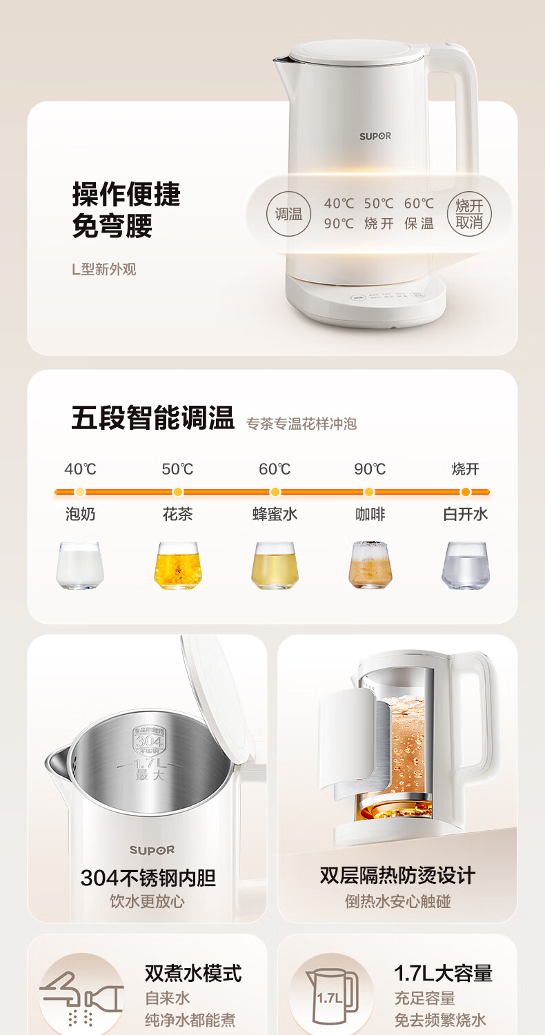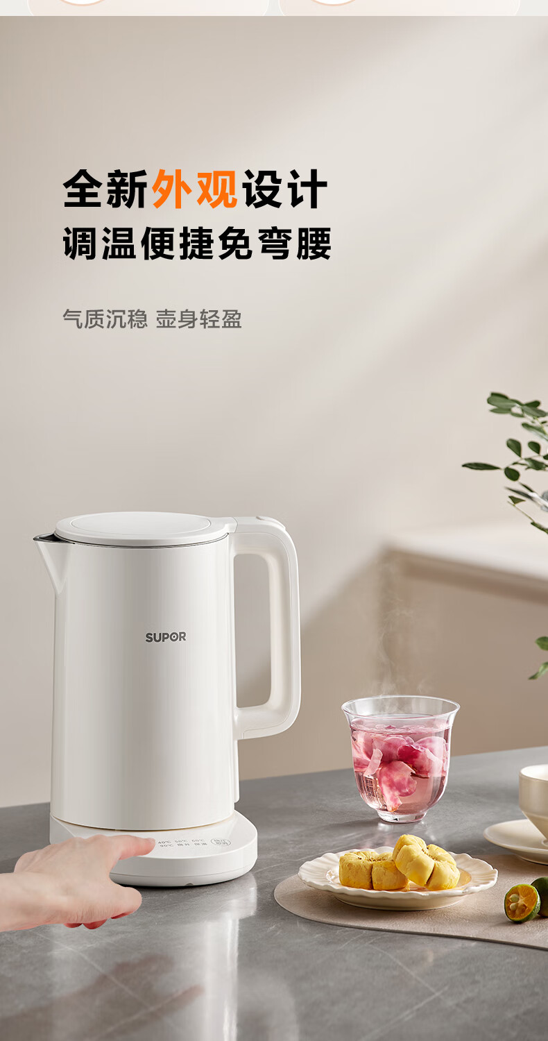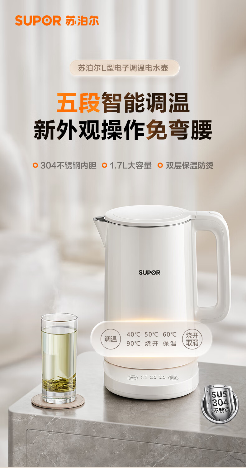 苏泊尔(SUPOR)电水壶家用大容量电热水壶 烧水壶 多段调温 恒温水壶 304不锈钢精控健康电水壶SW-17J76A