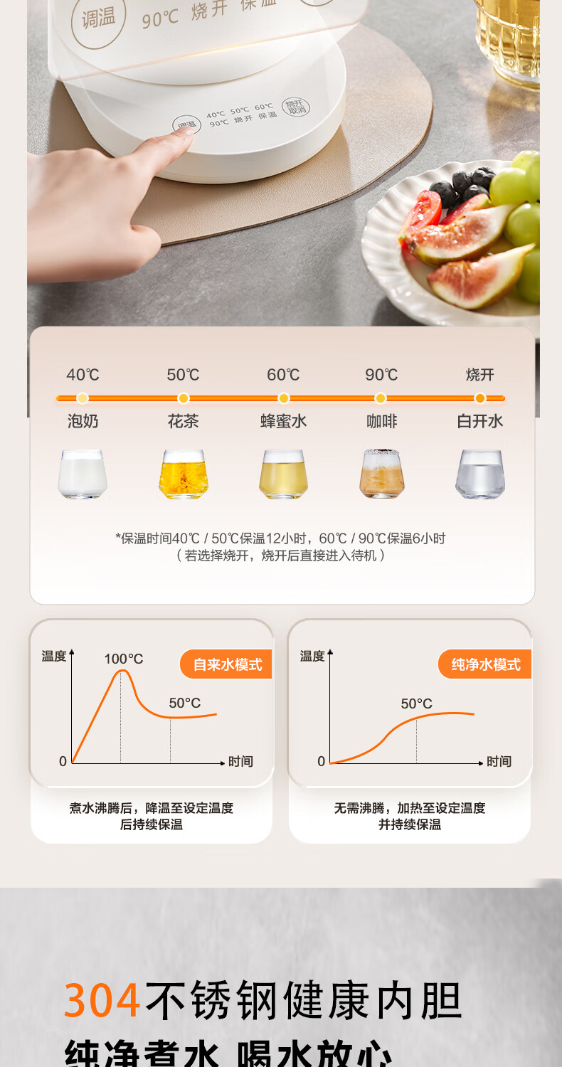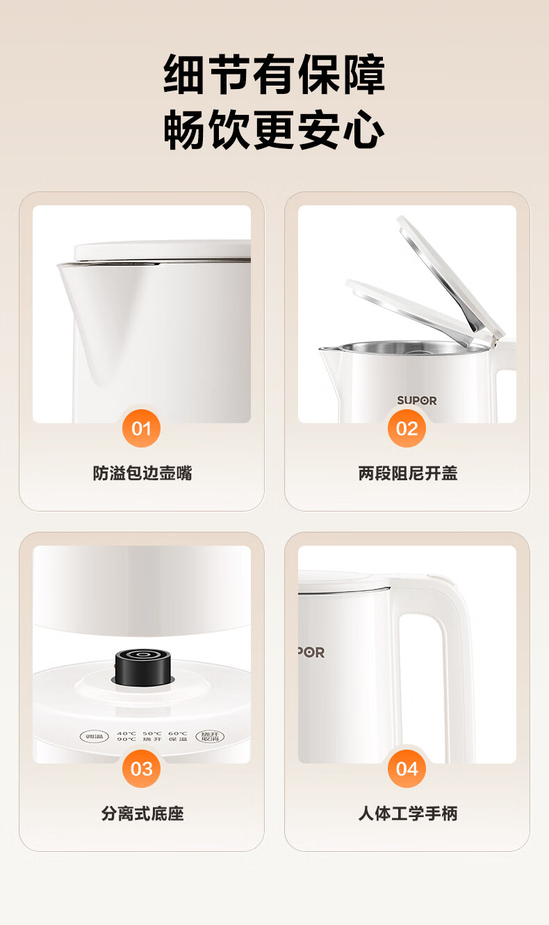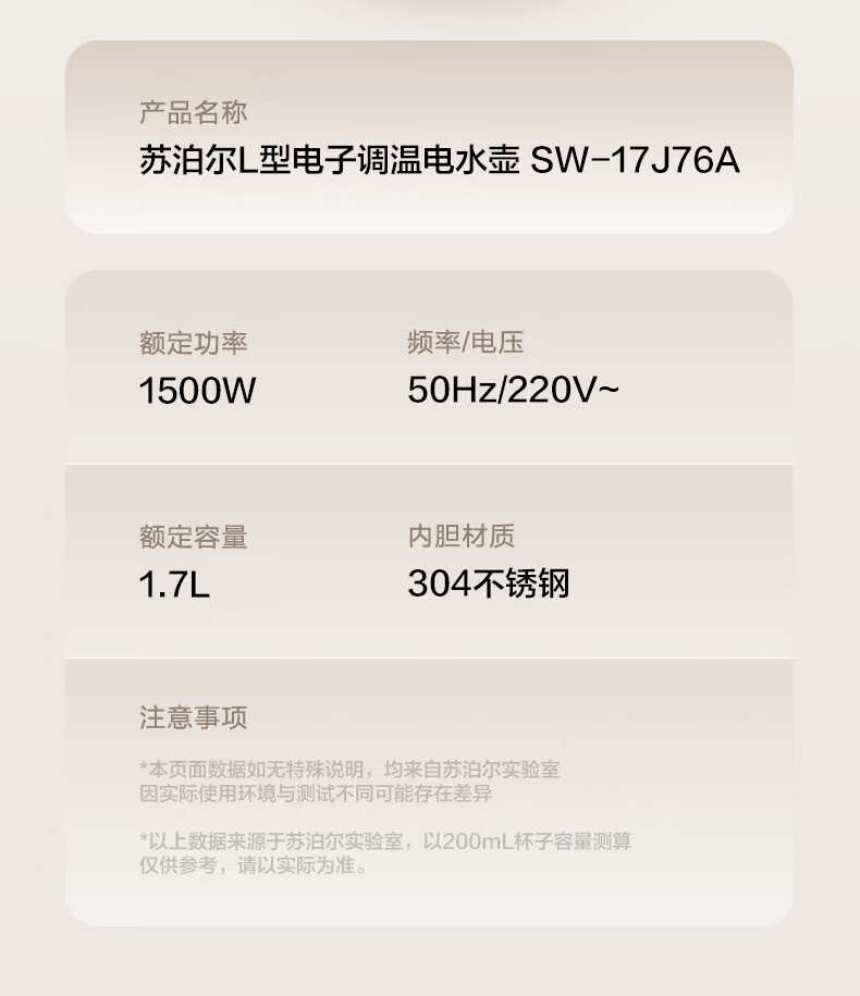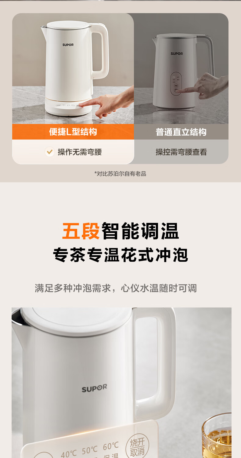 苏泊尔(SUPOR)电水壶家用大容量电热水壶 烧水壶 多段调温 恒温水壶 304不锈钢精控健康电水壶SW-17J76A