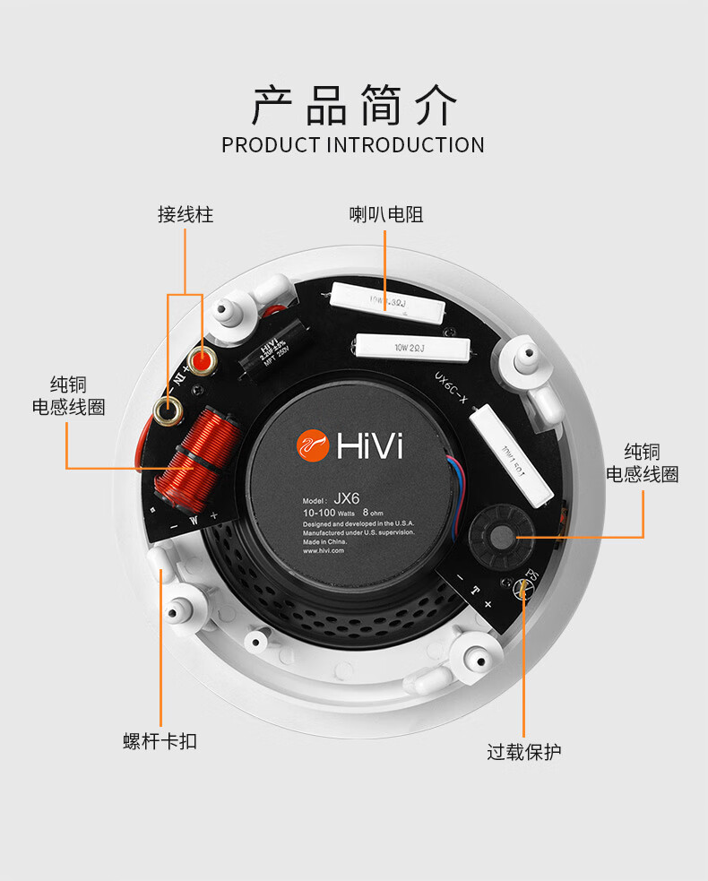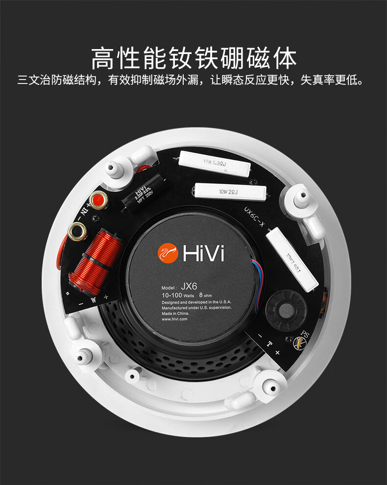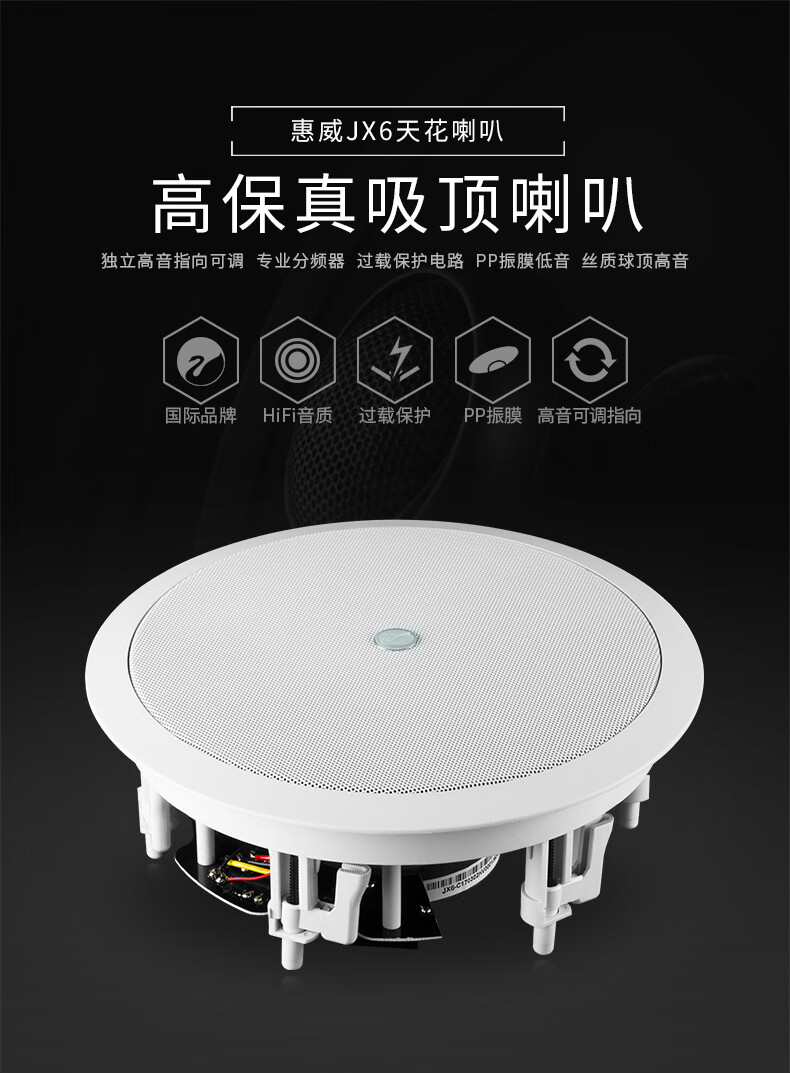 惠威(HiVi)JX6定阻吸顶音响 天花喇叭6英寸吊顶校园公共广播会议室商场咖啡厅客厅背景音乐音箱(一对)