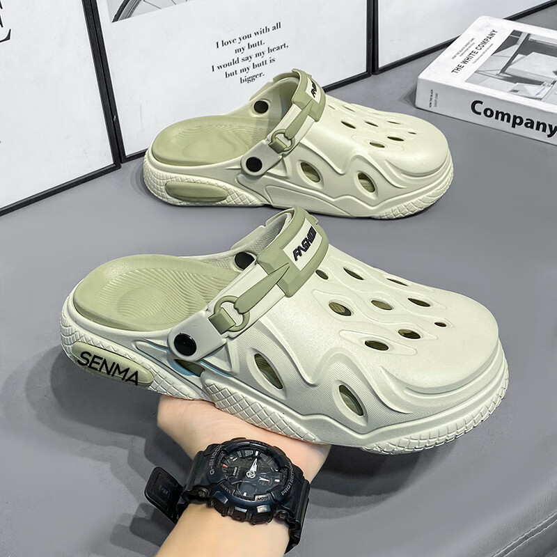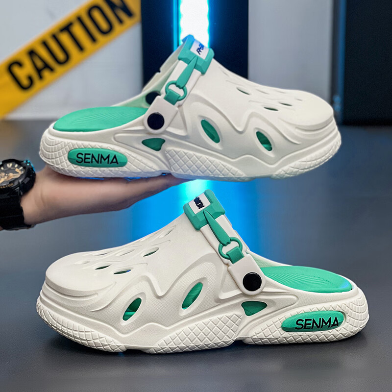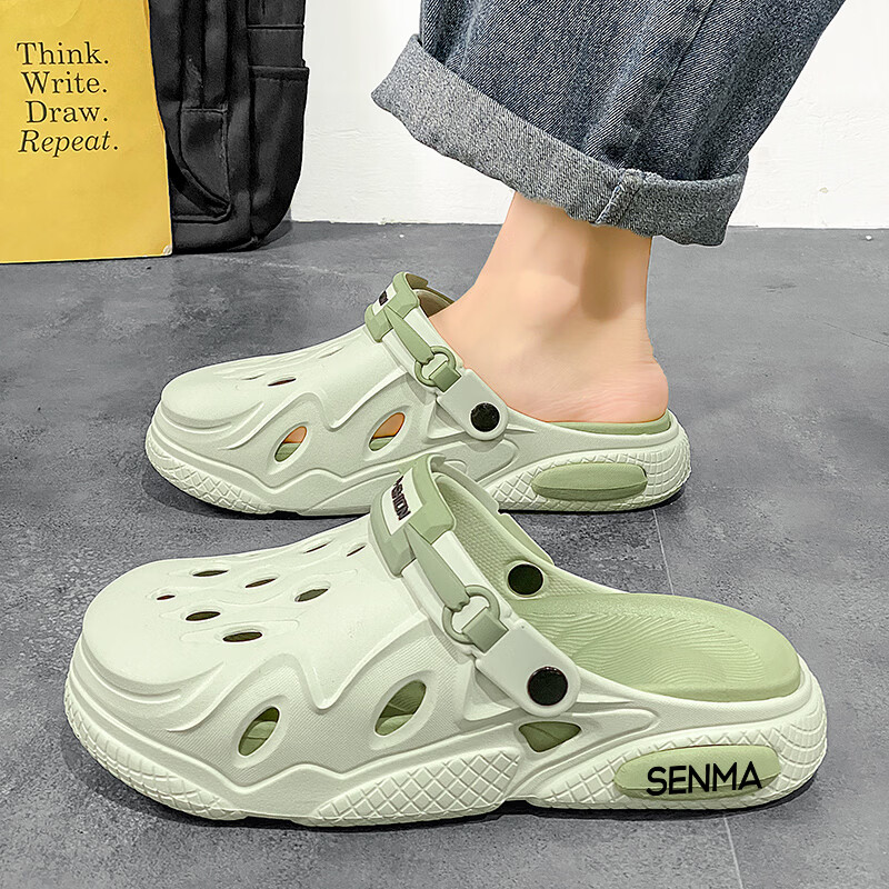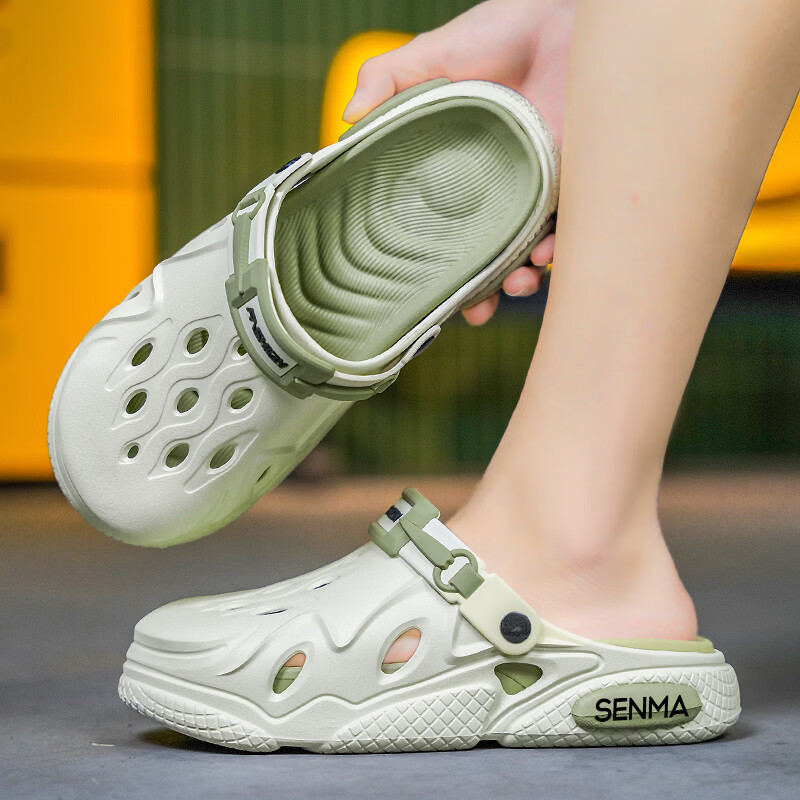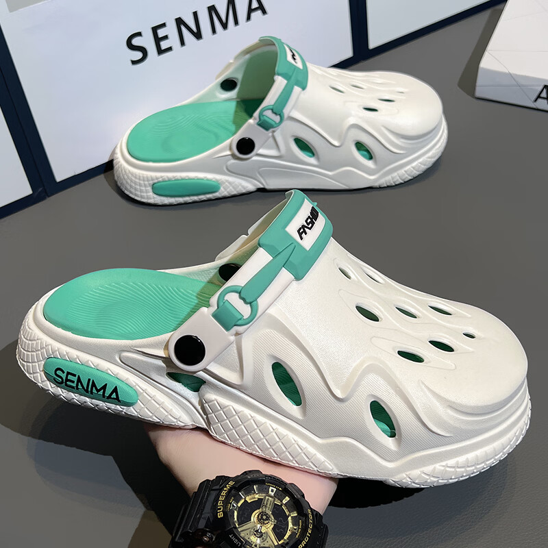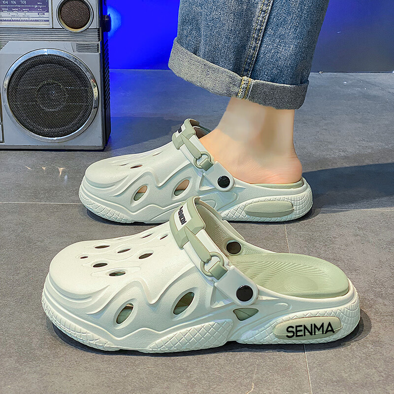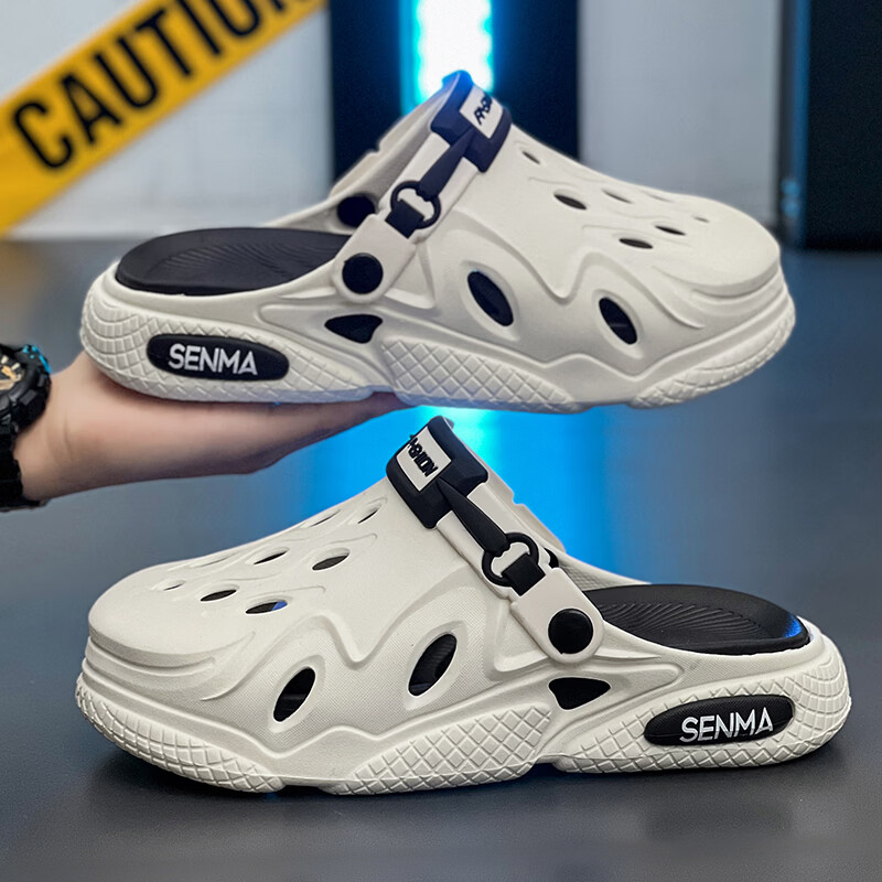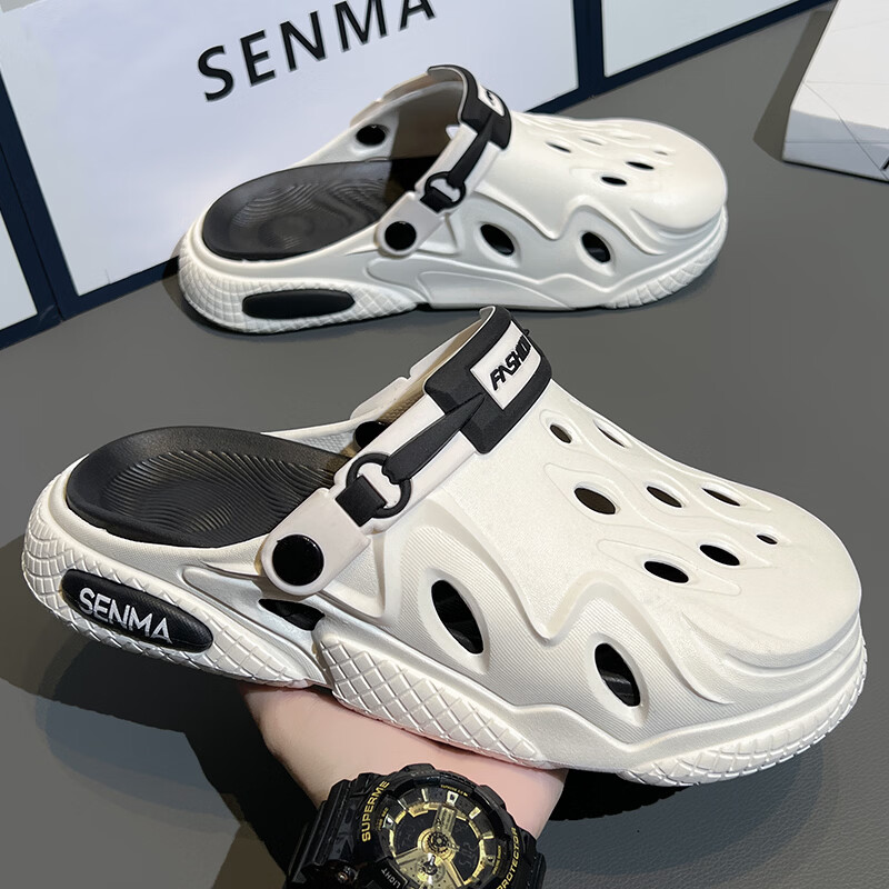 森馬洞洞鞋男2026夏季外穿运动软底踩屎感拖鞋男士厚底防滑耐磨沙滩鞋 白黑【基础款】 38-39 现货秒发