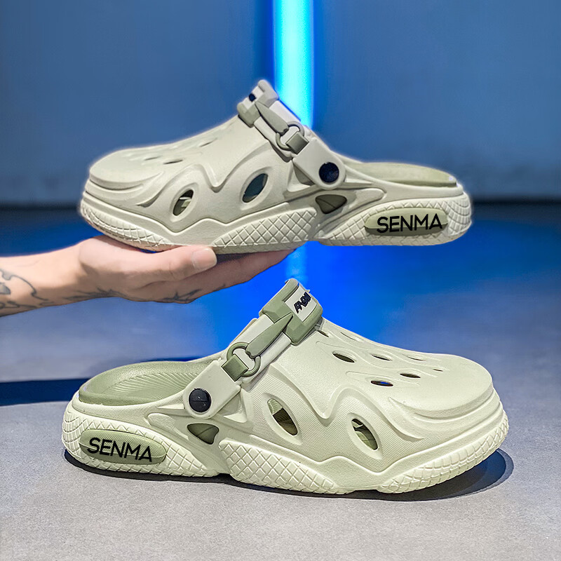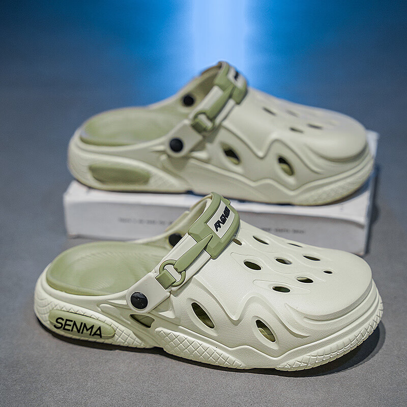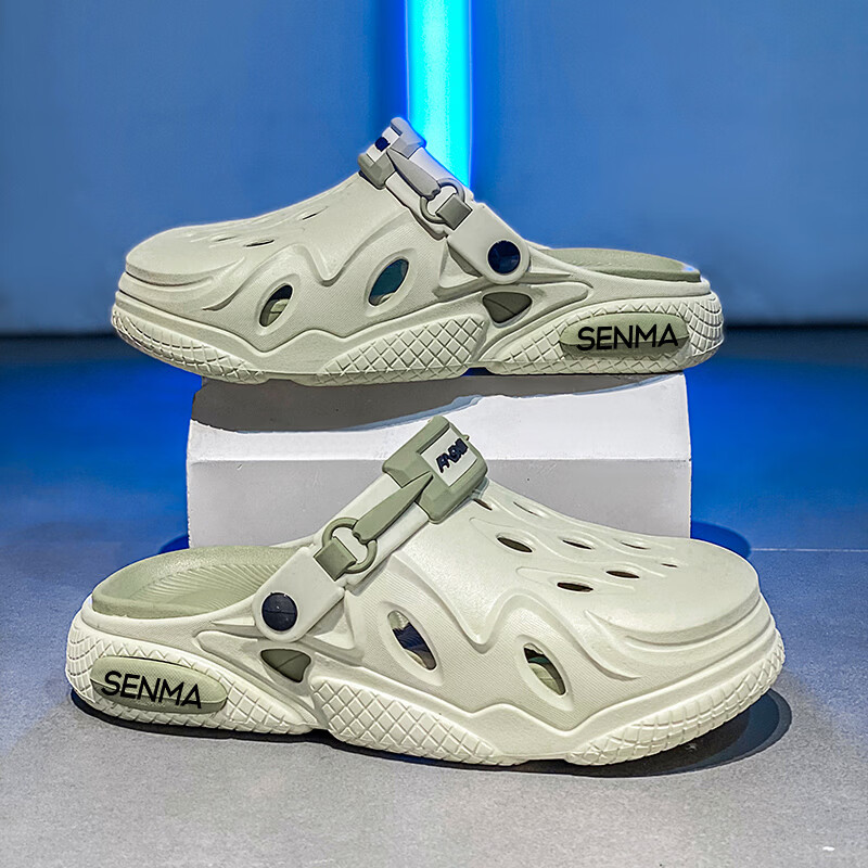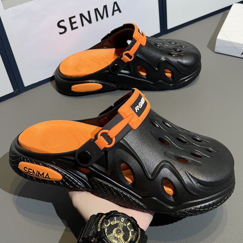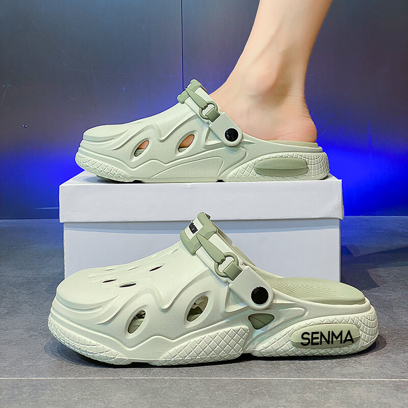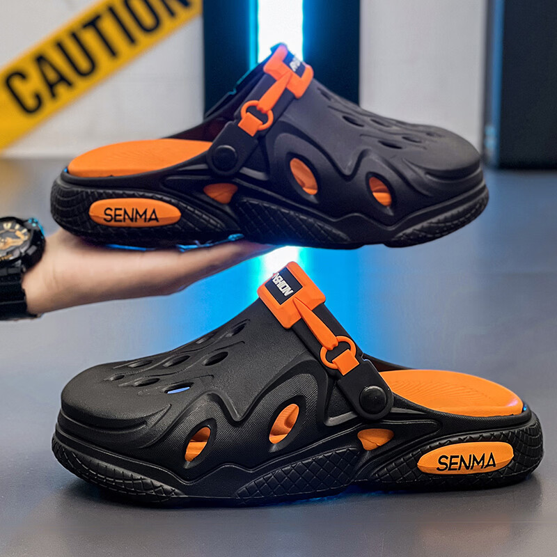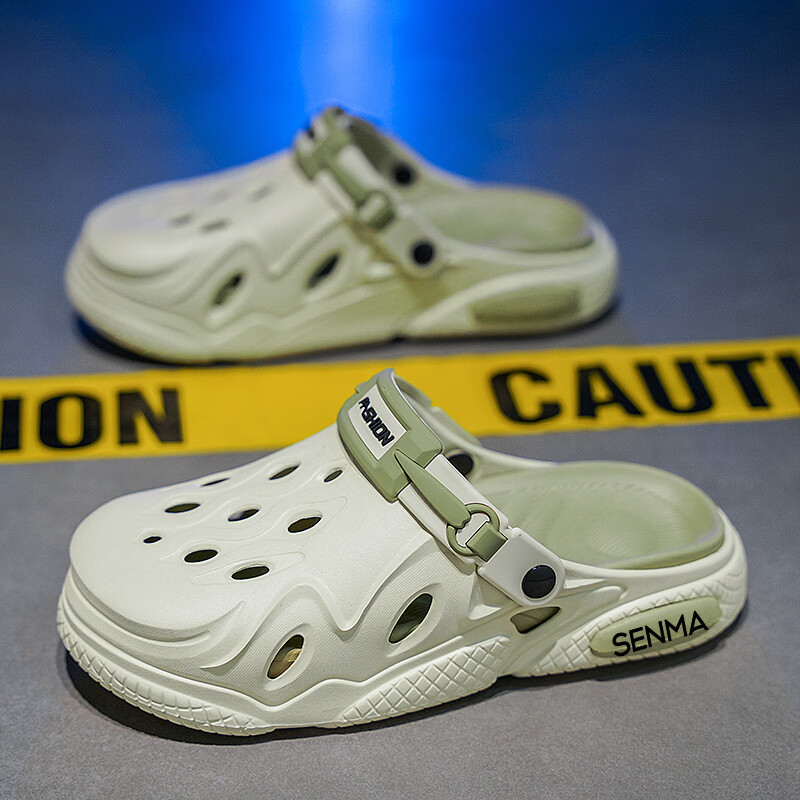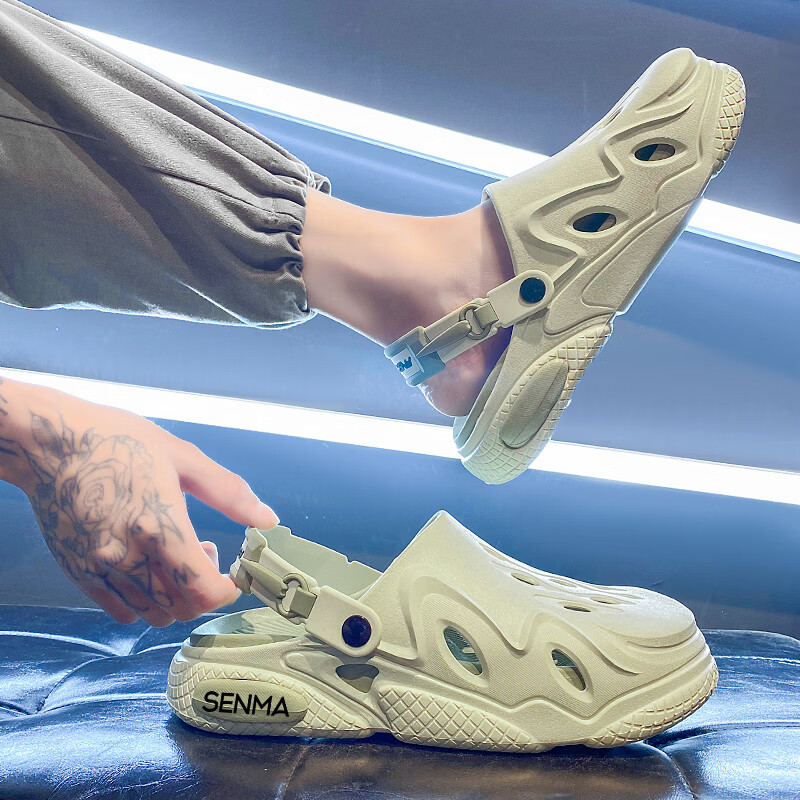 森馬洞洞鞋男2026夏季外穿运动软底踩屎感拖鞋男士厚底防滑耐磨沙滩鞋 白黑【基础款】 38-39 现货秒发