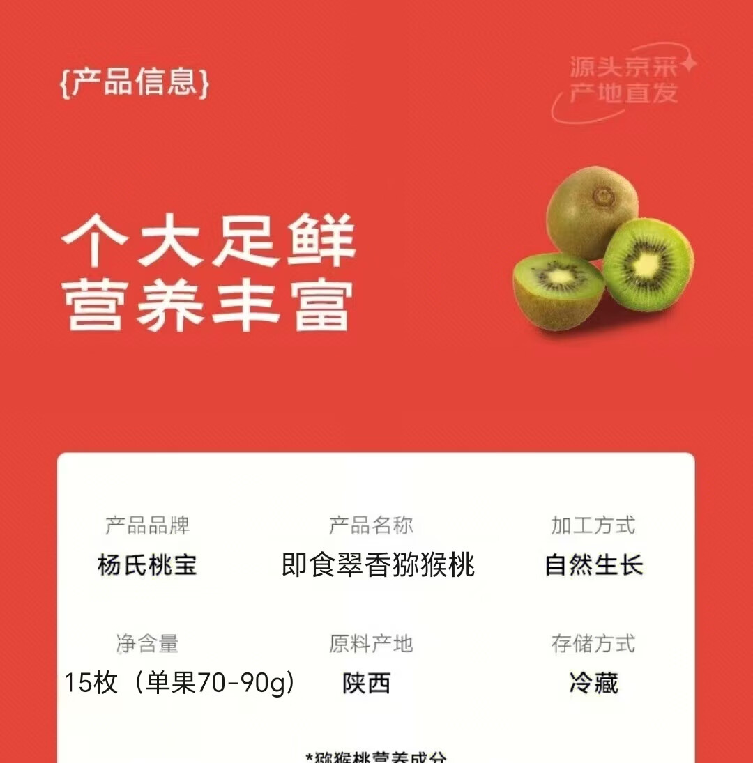 京鲜生 陕西即食翠香猕猴桃15粒礼盒 单果70-90g 生鲜水果 源头直发