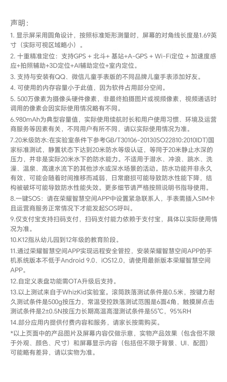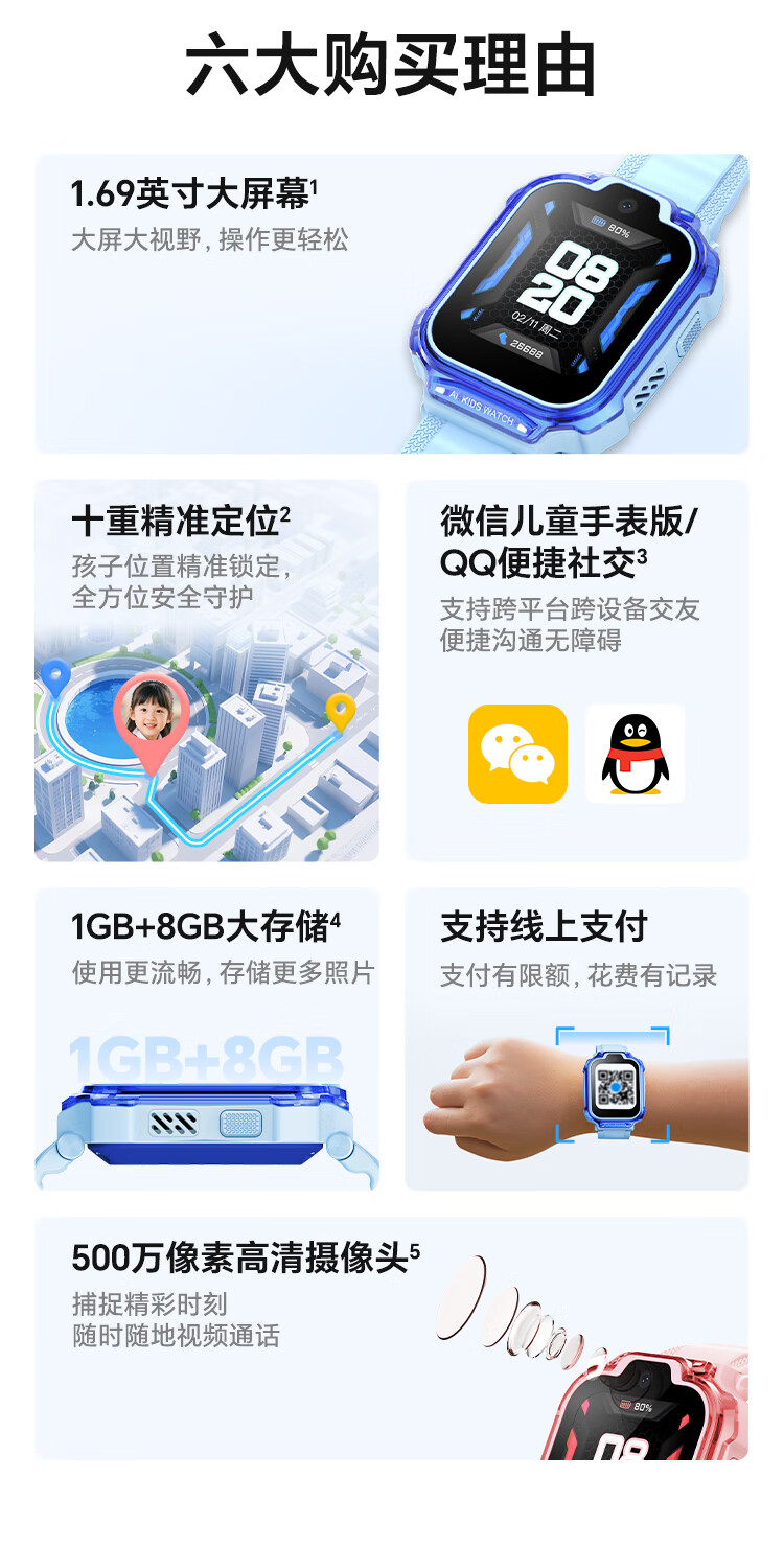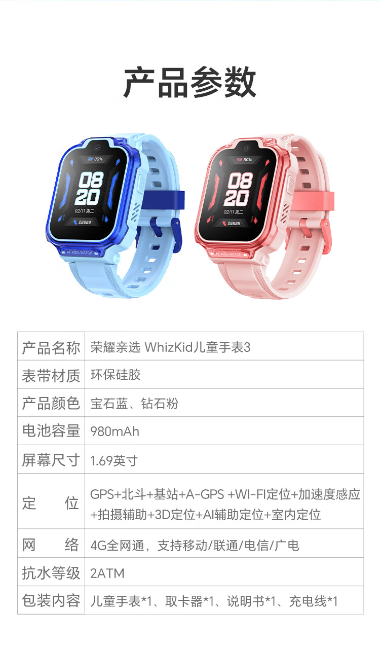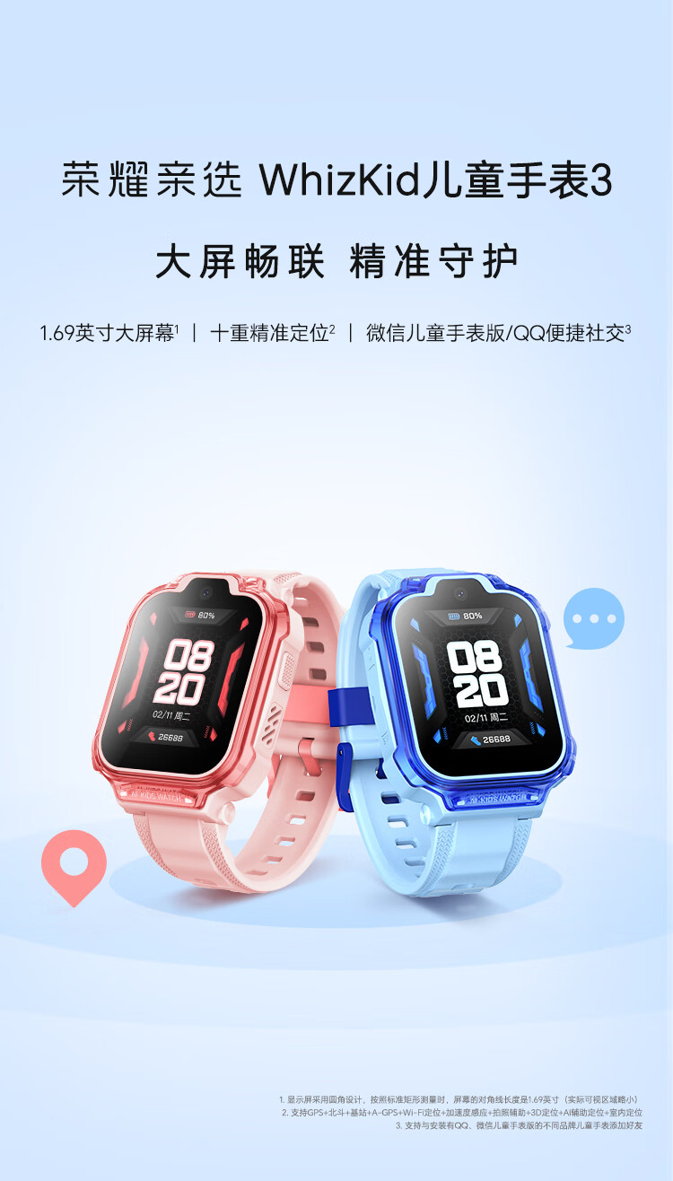 荣耀亲选WhizKid儿童手表3儿童智能手表 4G全网通 十重精准定位 微信儿童手表版 电话手表 宝石蓝