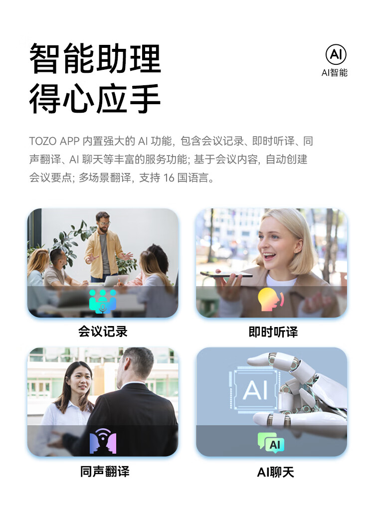 TOZO NC9蓝牙耳机真无线主动降噪入耳式超长续航高保真音质AI智能翻译IPX8防水运动适用苹果华为小米