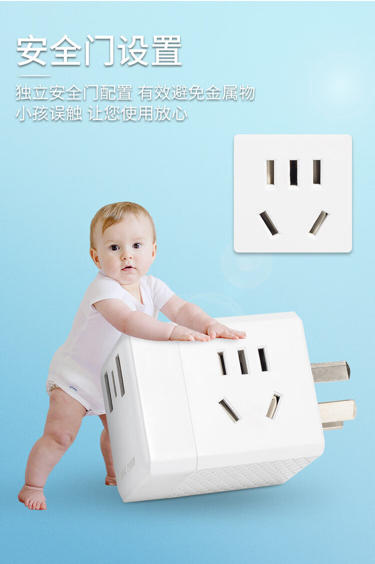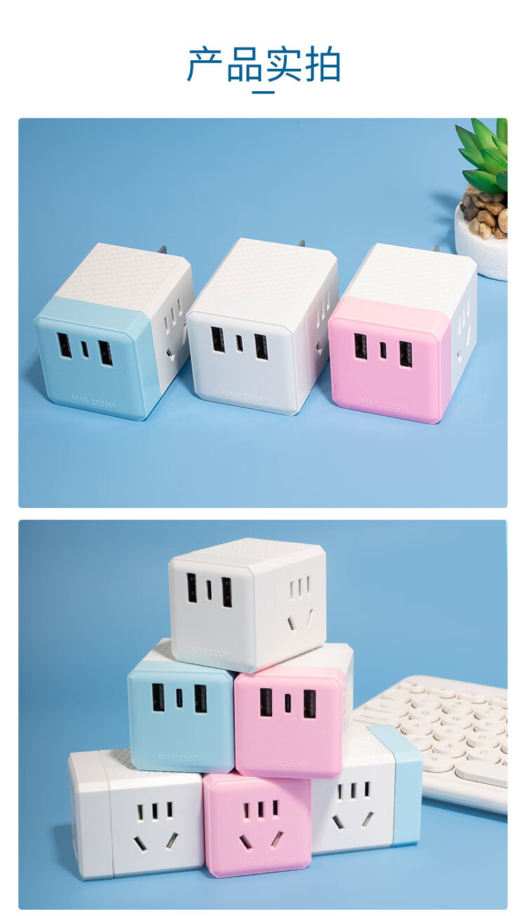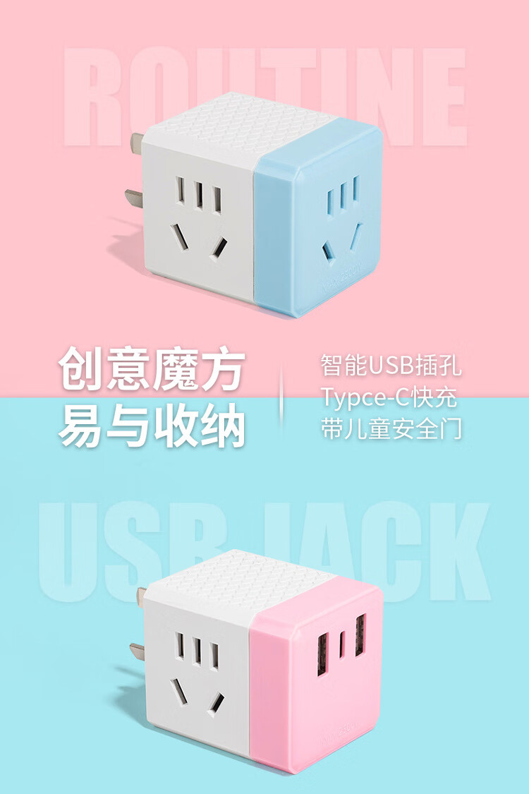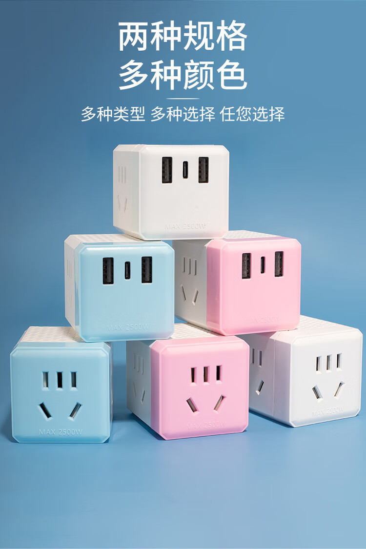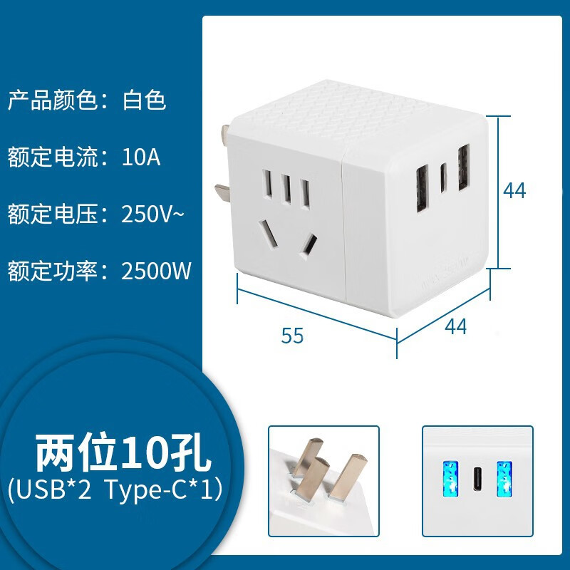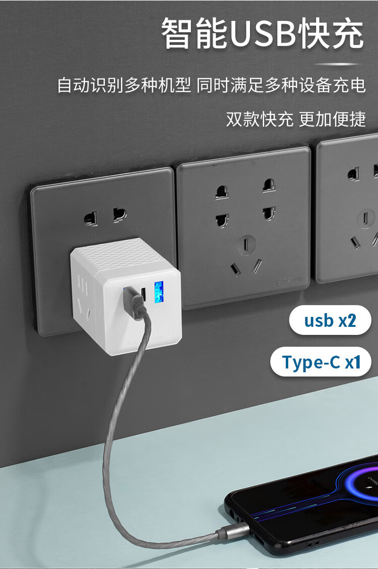 【优选】魔方插座转换器usb插头分插器多功能排插排插板面板多孔 魔方【白色】普通 无线
