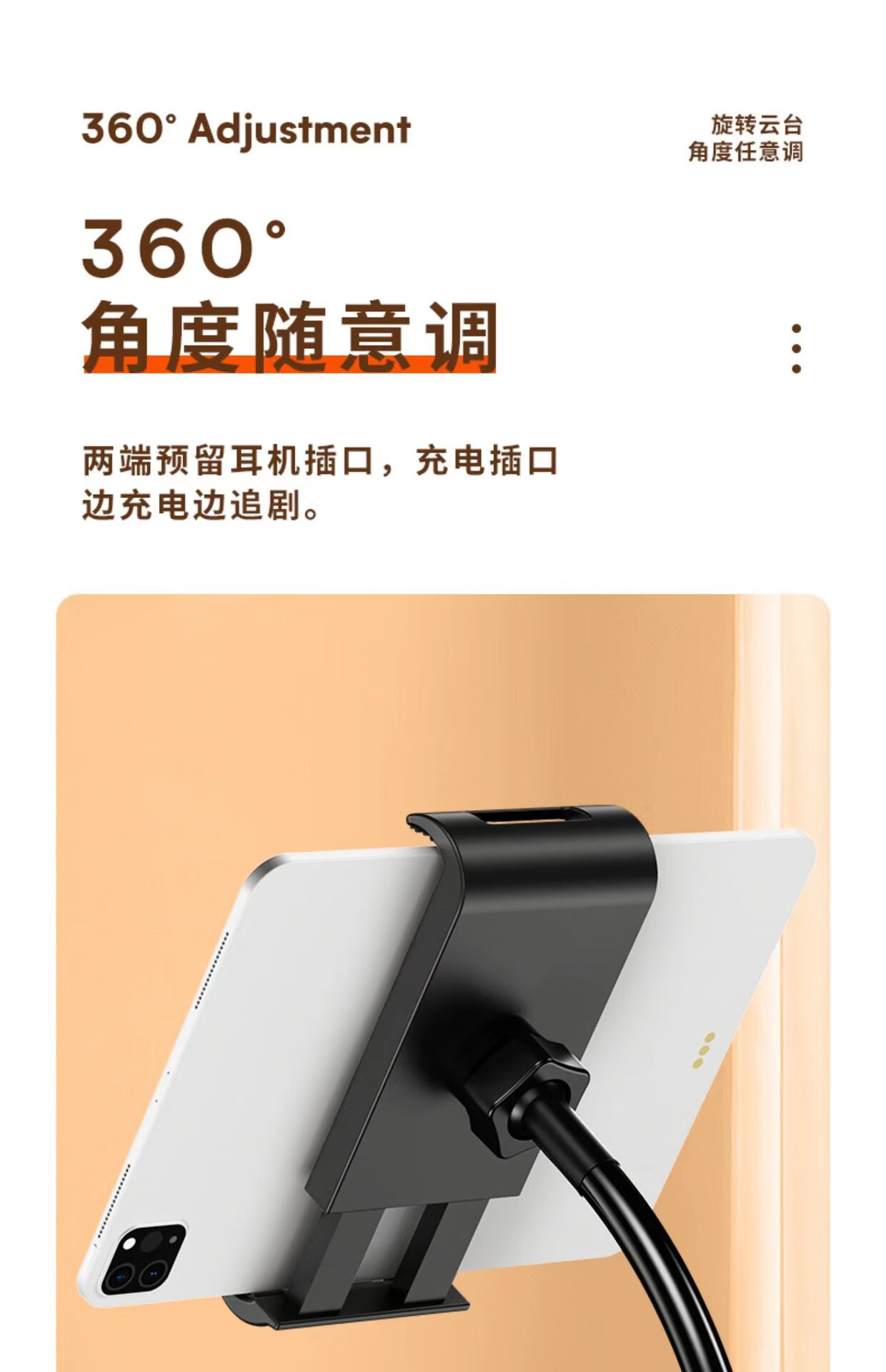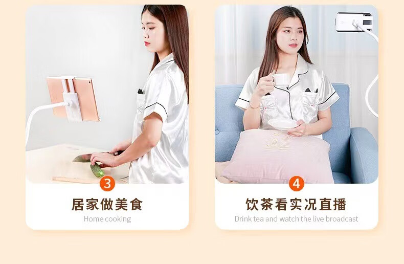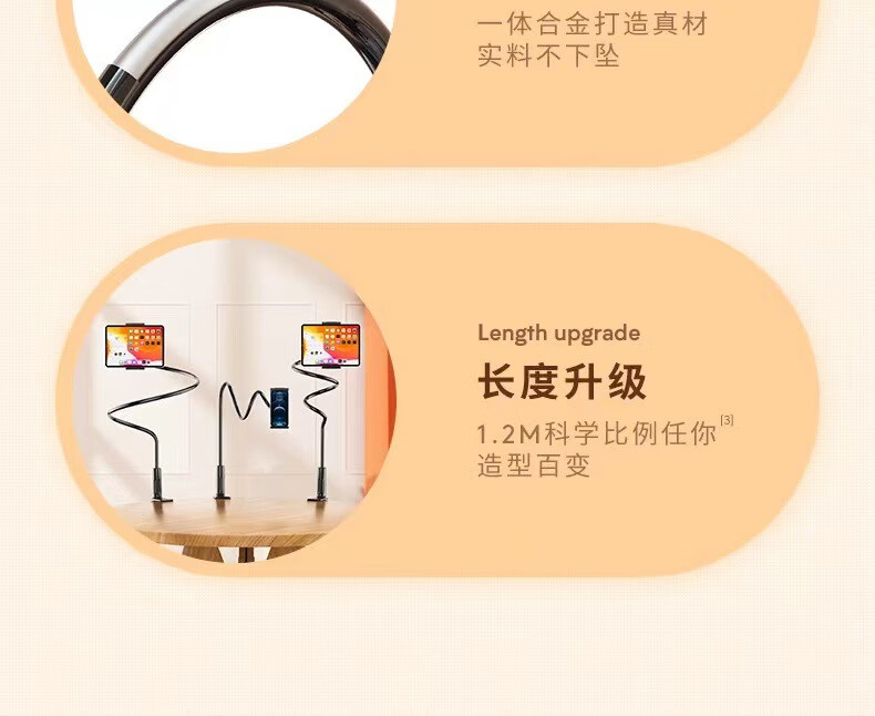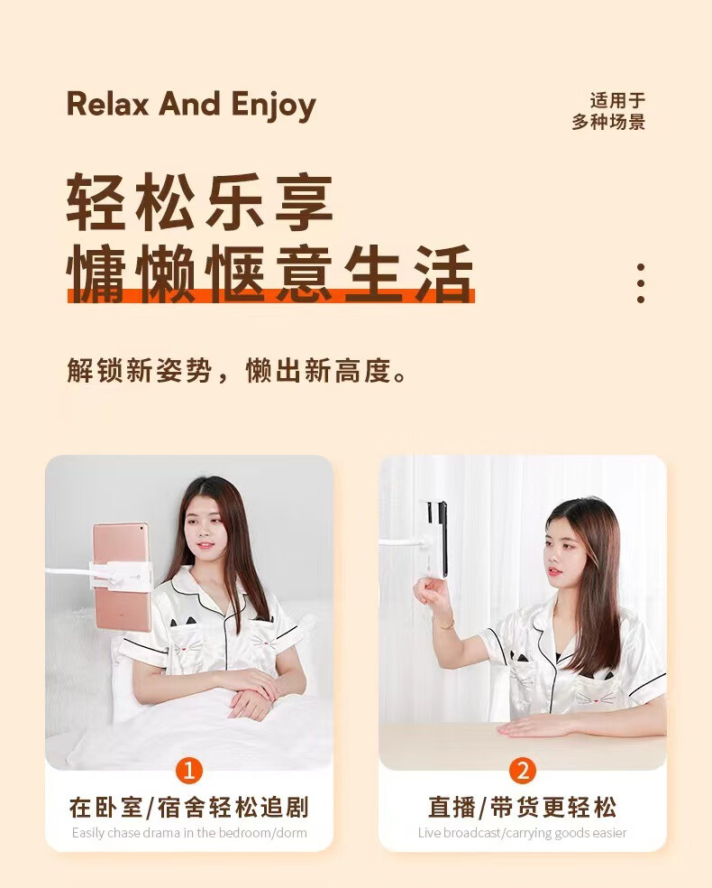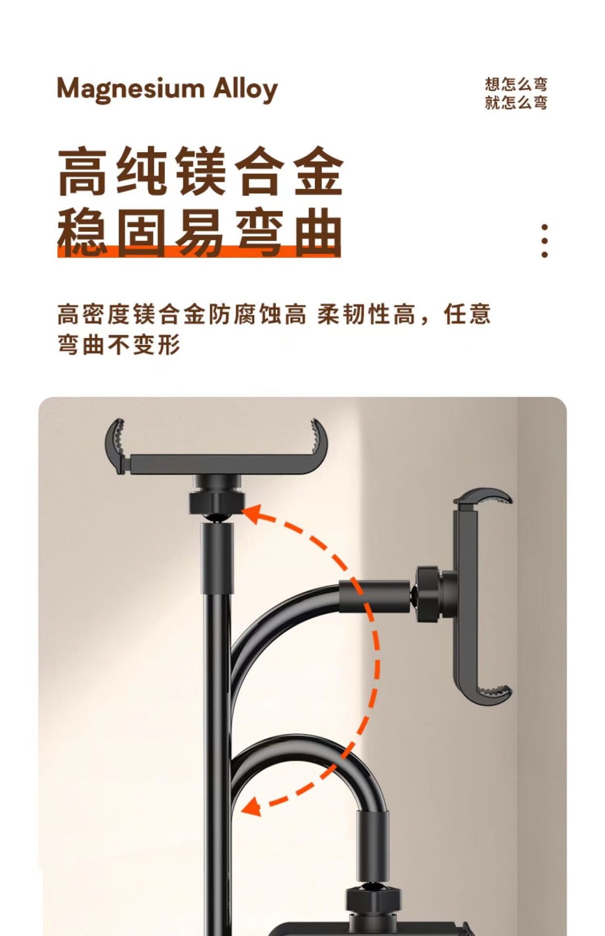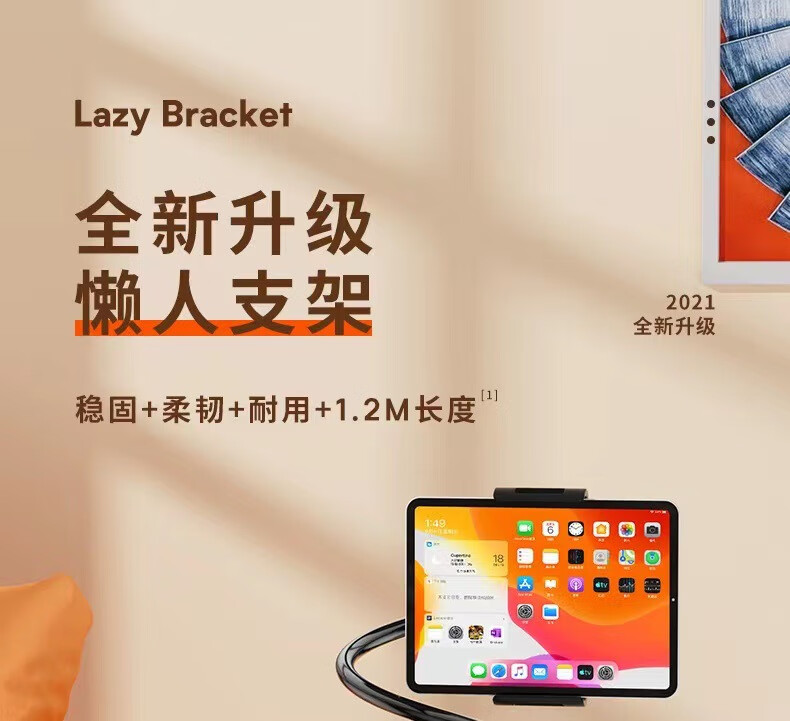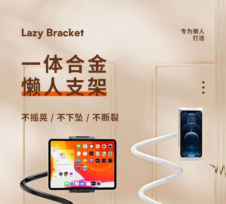 【直发】工厂现货平板支架床头支架懒人支架手机平板通用支架桌面 75CM双夹手机款 白色
