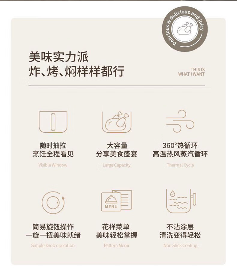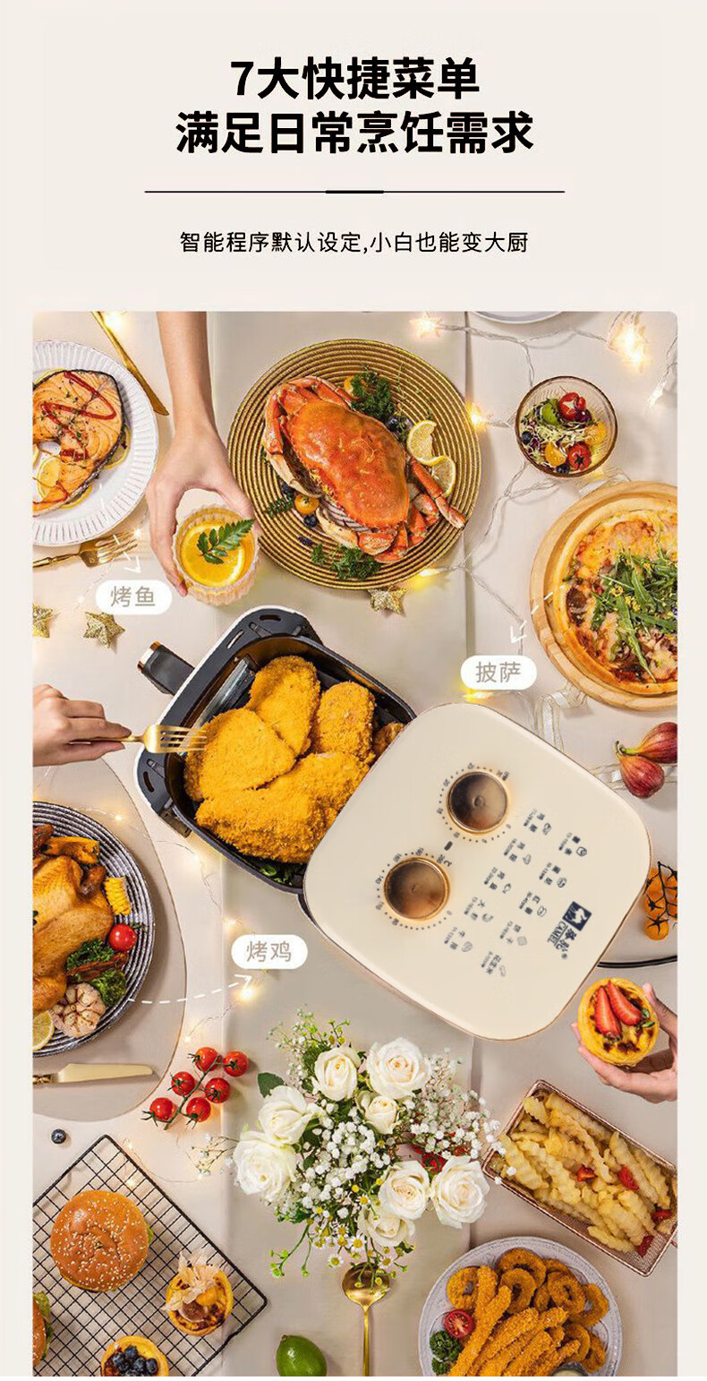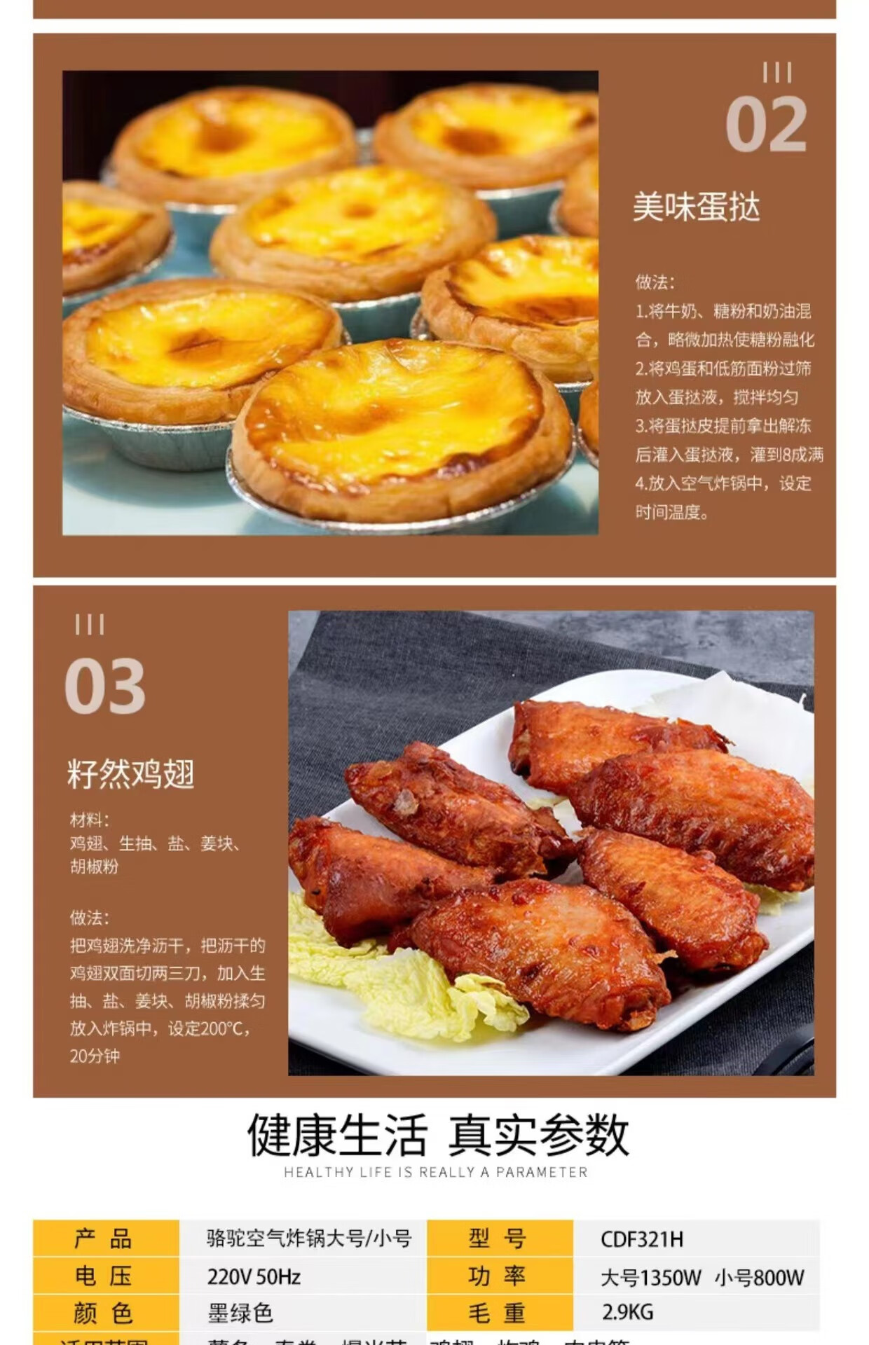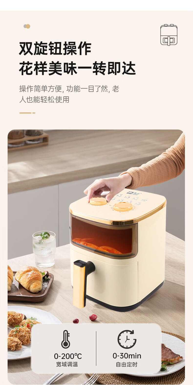 【严选】新款骆驼空气炸锅多功能家用大容量电烤箱全自动智能薯条 5L 志高双旋钮-5806