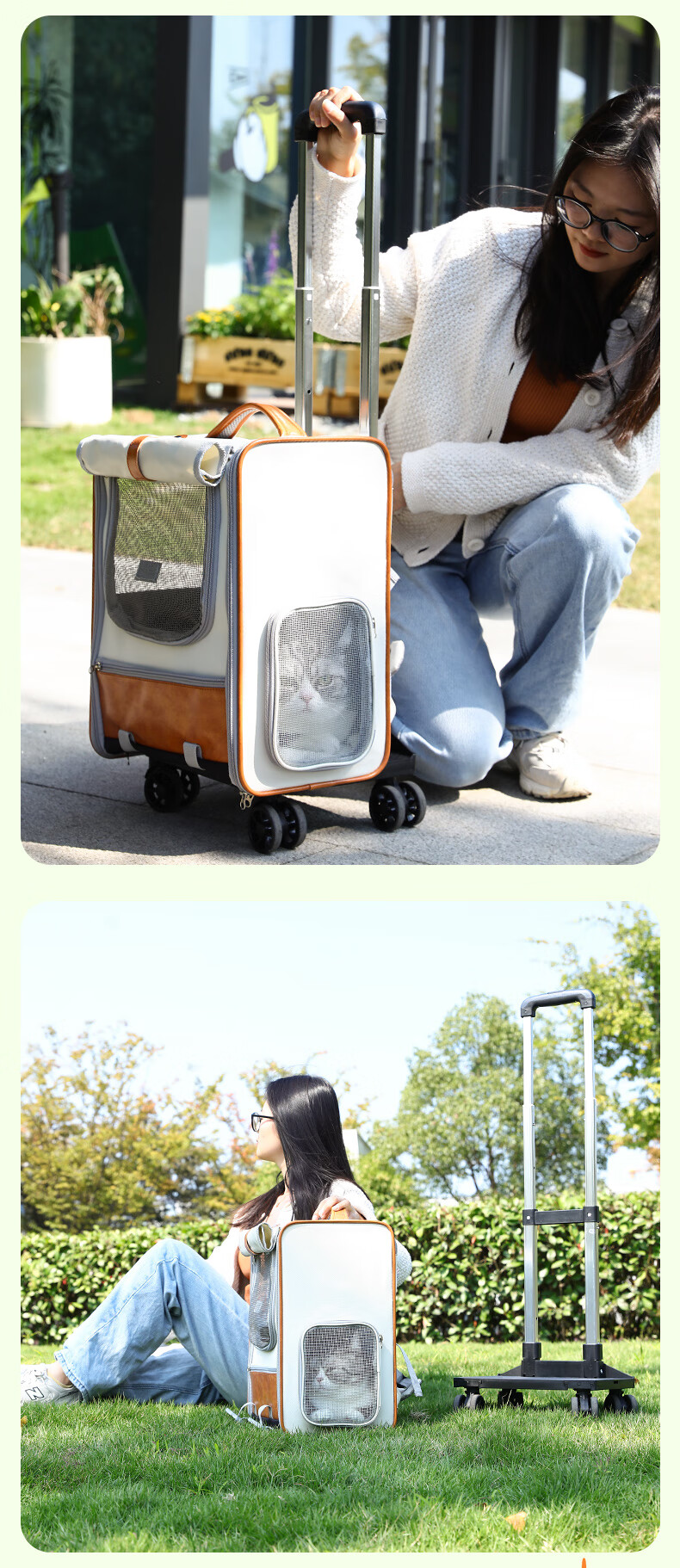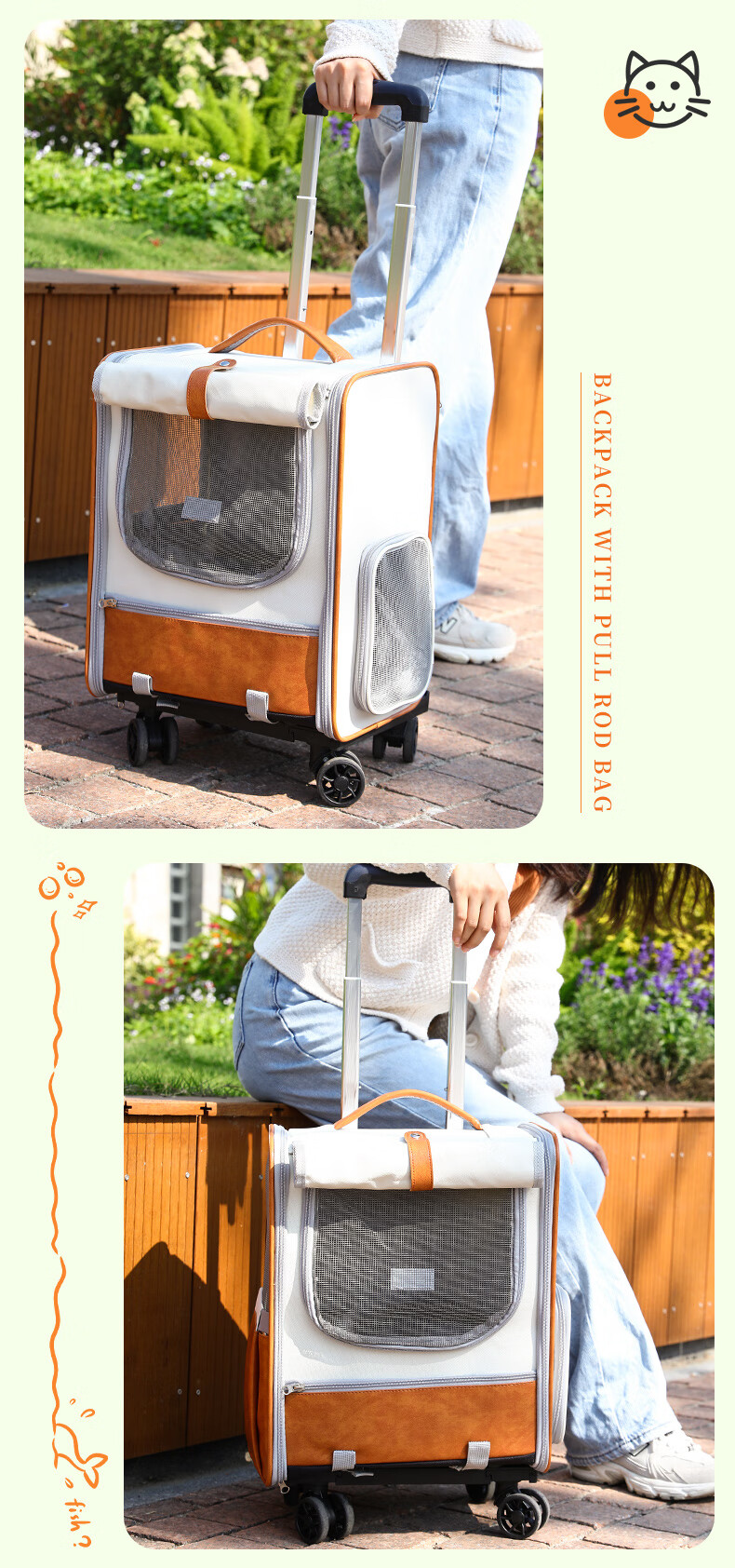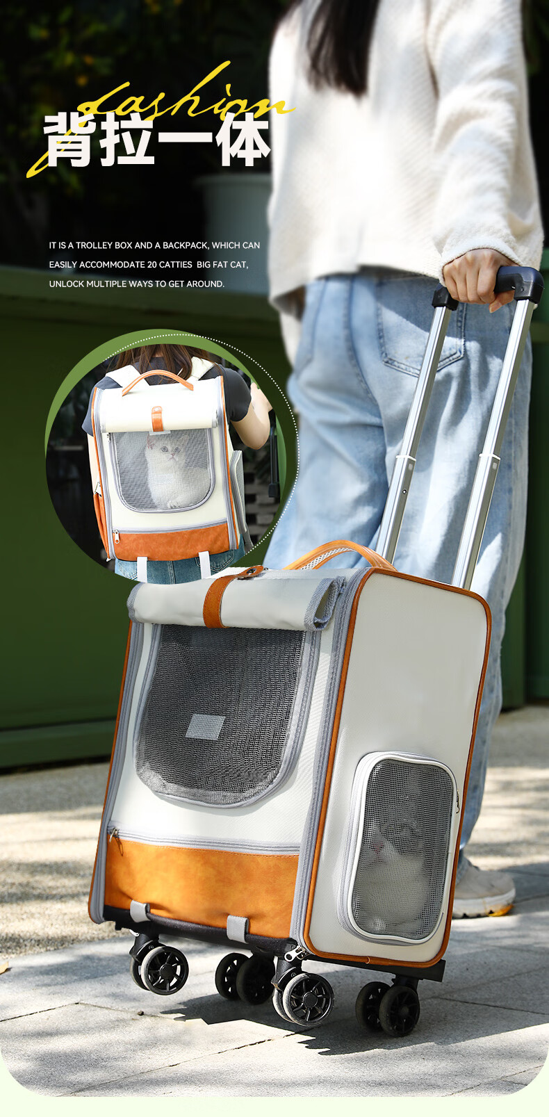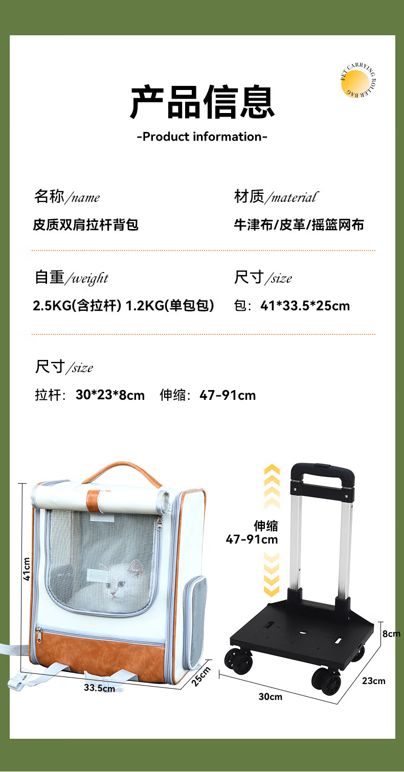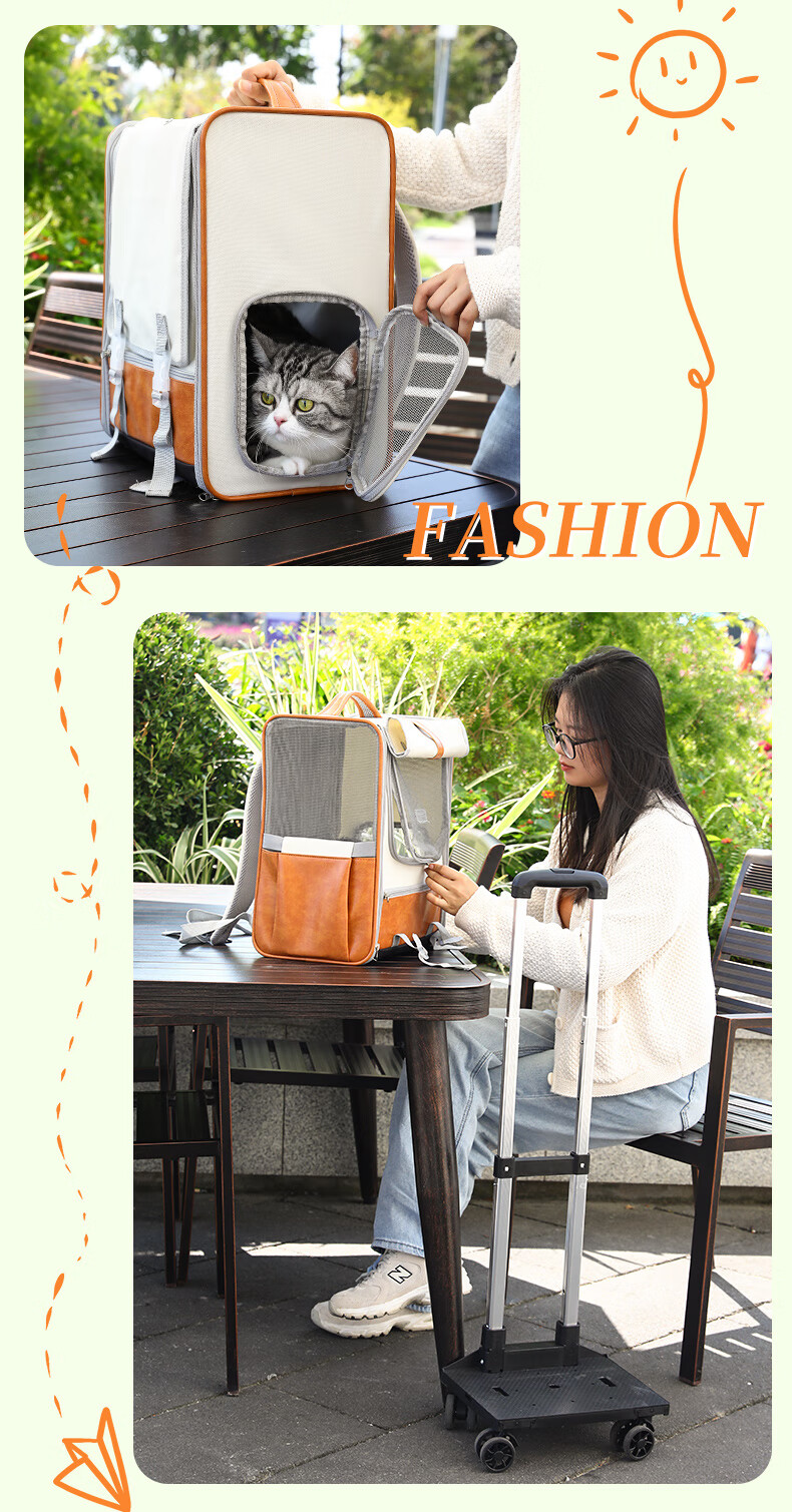 华元宠具拉杆猫包大容量宠物便捷外出透气双肩手提布偶狗背包幼犬外出包