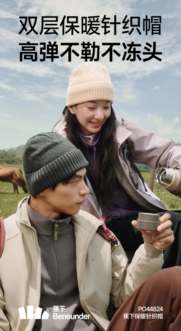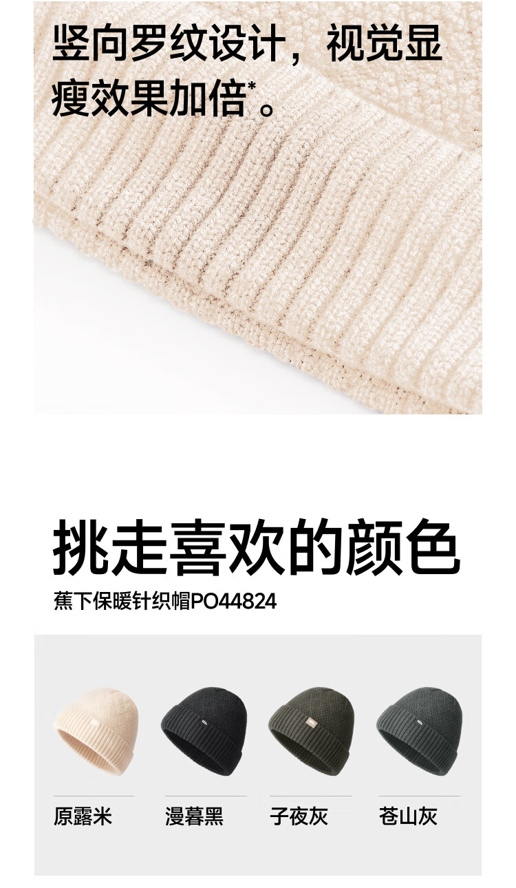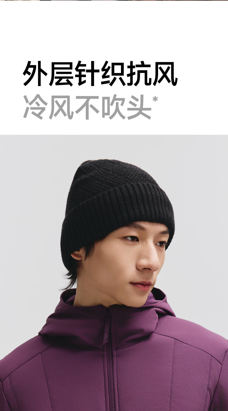 蕉下帽子冬季男士帽子女针织帽冷帽保暖防寒帽毛线帽显脸小圣诞礼物黑