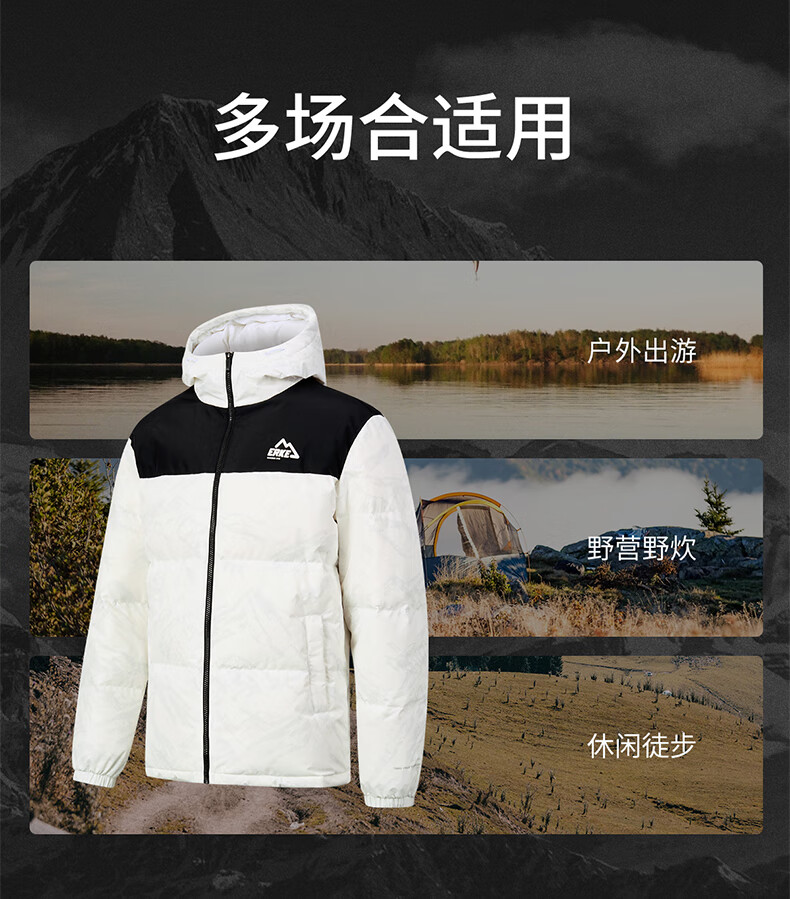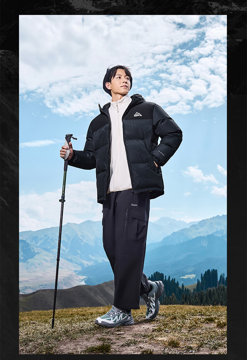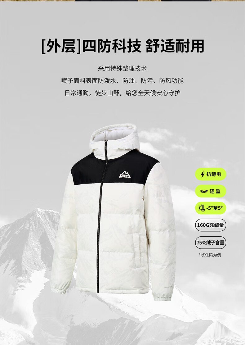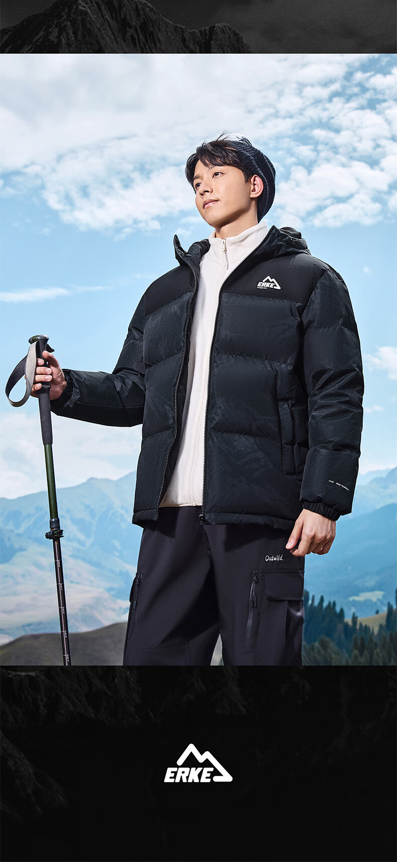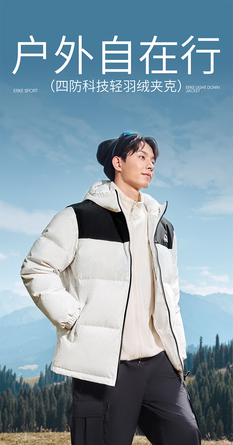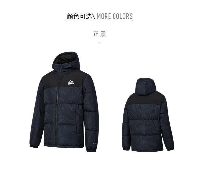 鸿星尔克四防|羽绒服男秋冬新款保暖防风防污防泼水户外休闲运动外套夹克 正黑 2XL