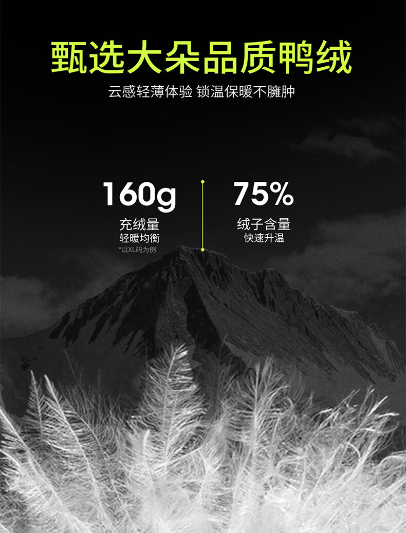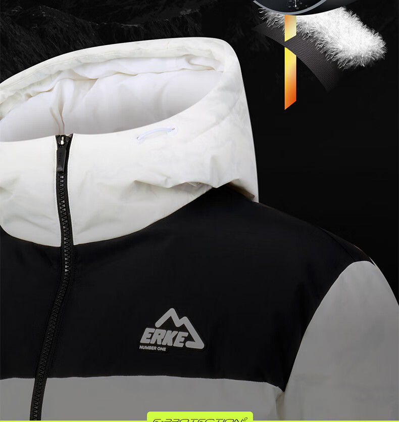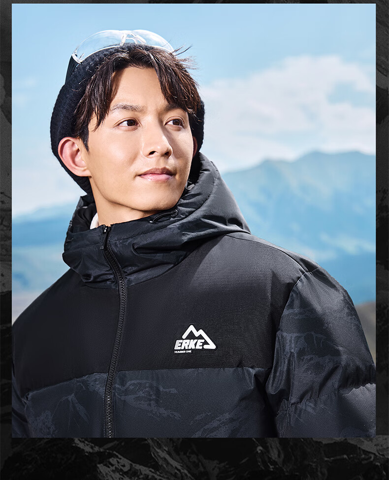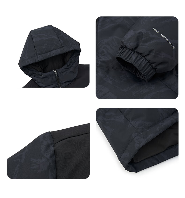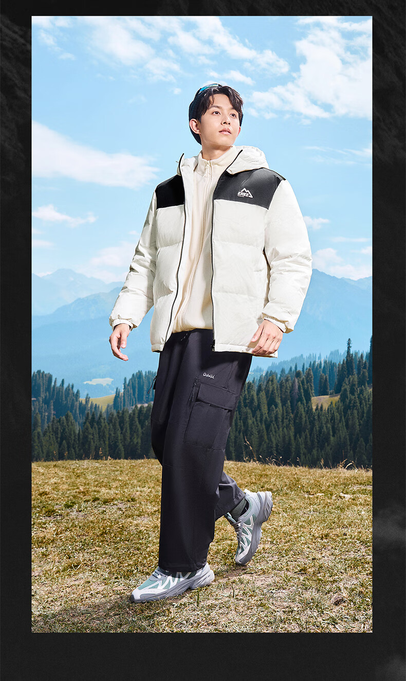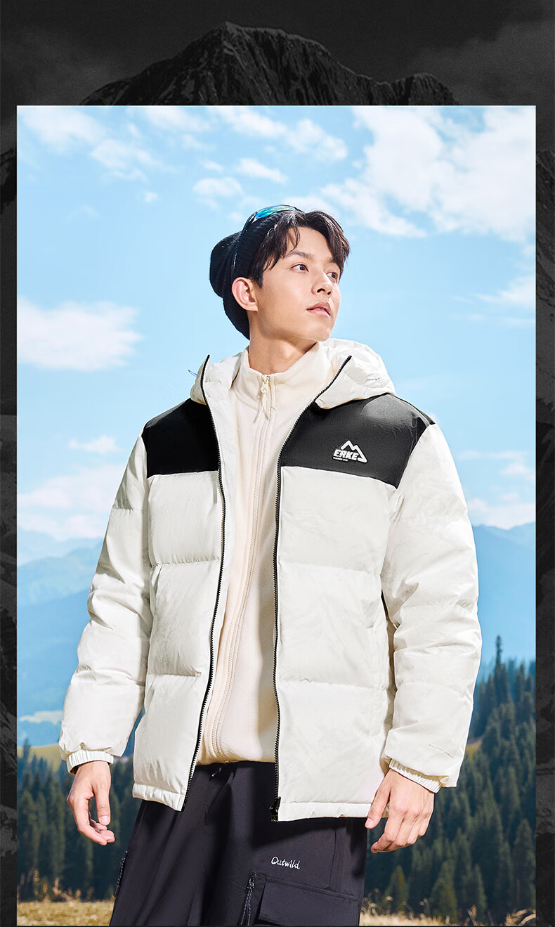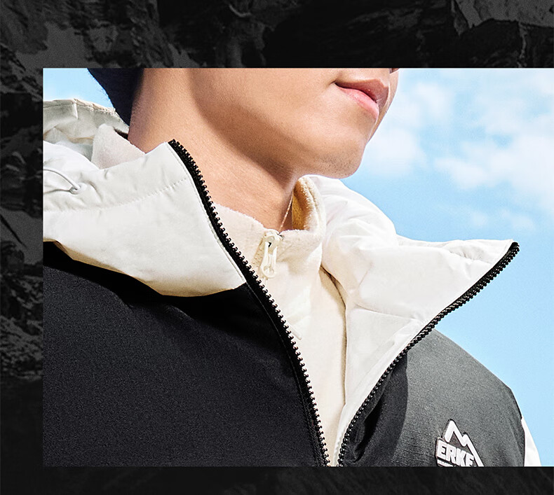 鸿星尔克四防|羽绒服男秋冬新款保暖防风防污防泼水户外休闲运动外套夹克 正黑 2XL