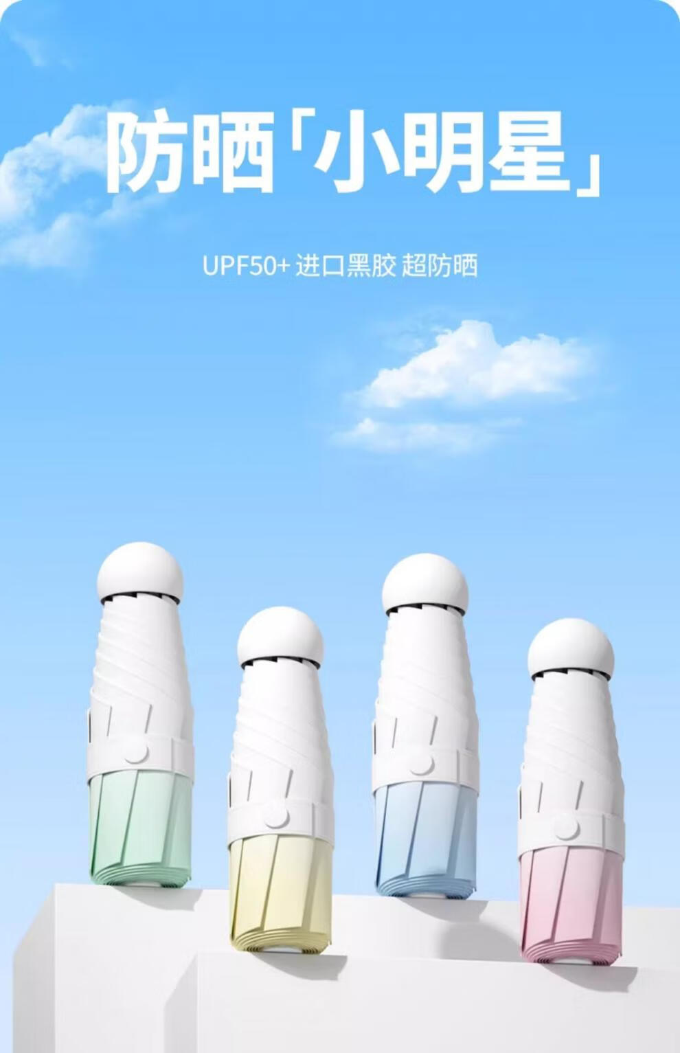 印象城便携胶囊伞女遮阳伞晴雨两用渐变可折叠小巧便携防晒mini口袋伞 -更小14cm渐变卡片伞-蓝浅 8骨 无盒