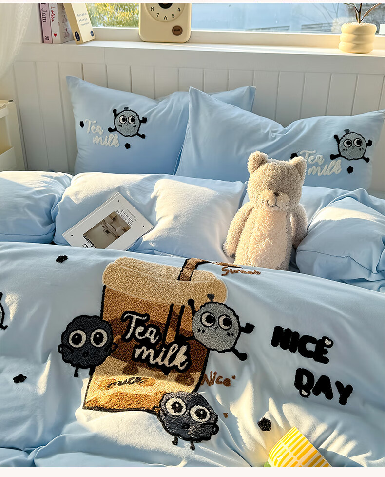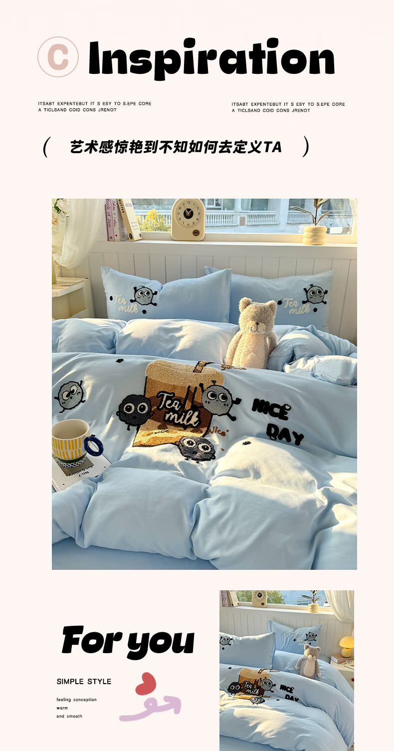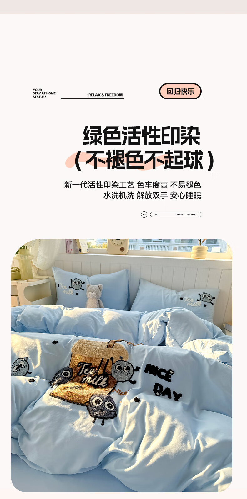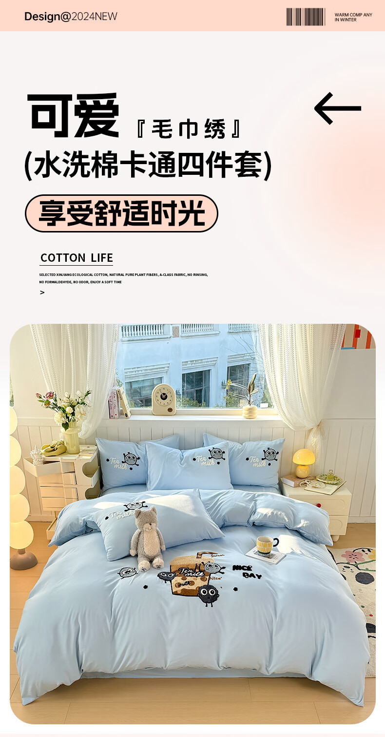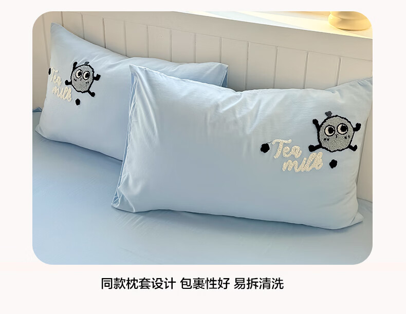VJE水洗棉床单四件套2025新款四季通用被罩被套卡通三件套床上用品4 奶茶-海盐冰蓝 【四件套】1.8m 床笠款 -被套200*230cm