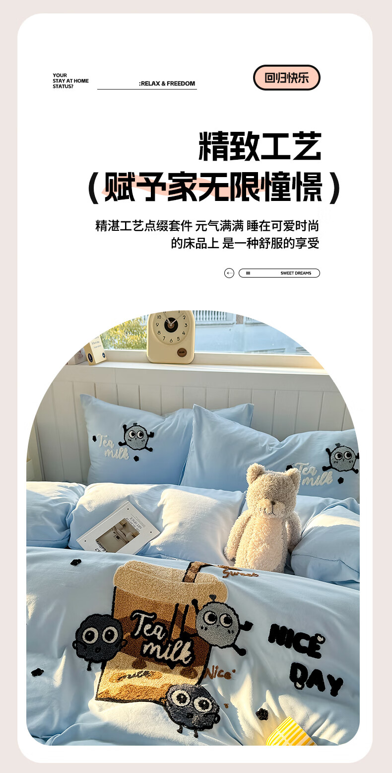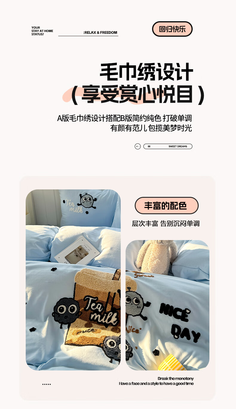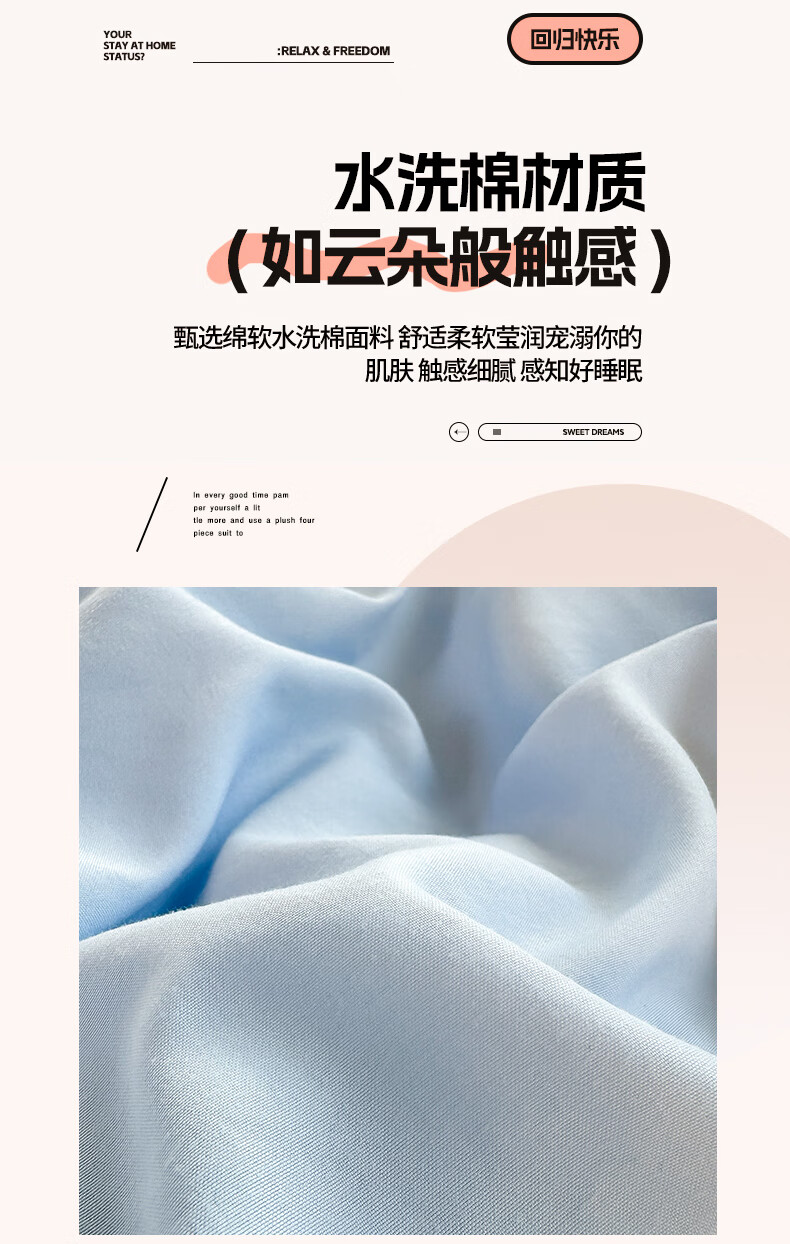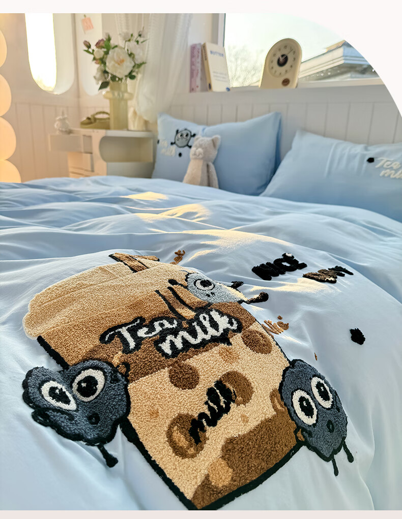 VJE水洗棉床单四件套2025新款四季通用被罩被套卡通三件套床上用品4 奶茶-海盐冰蓝 【四件套】1.8m 床笠款 -被套200*230cm