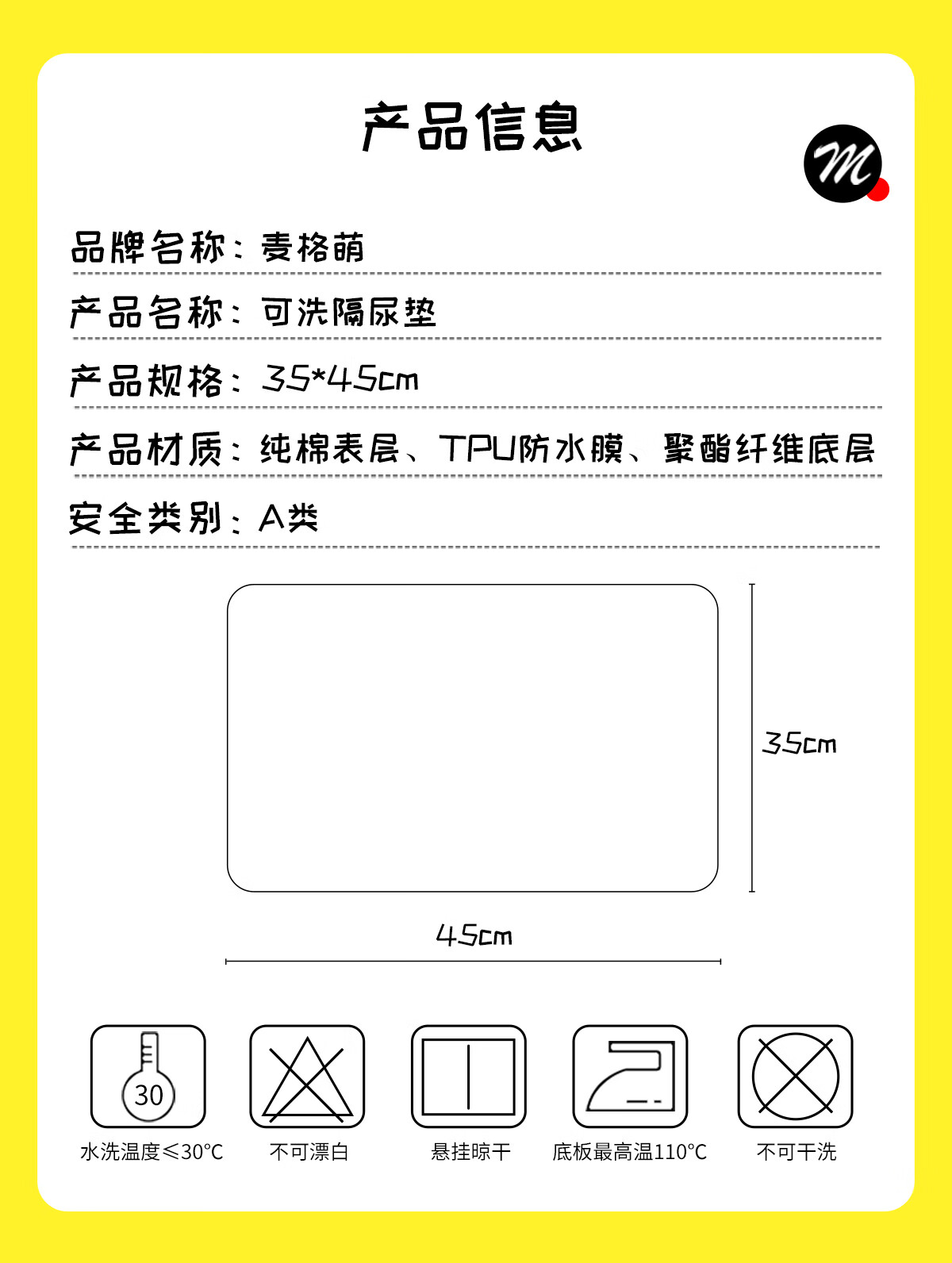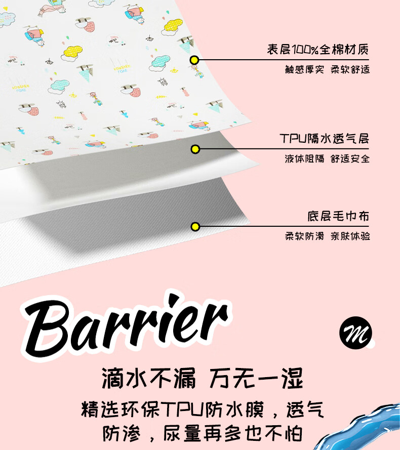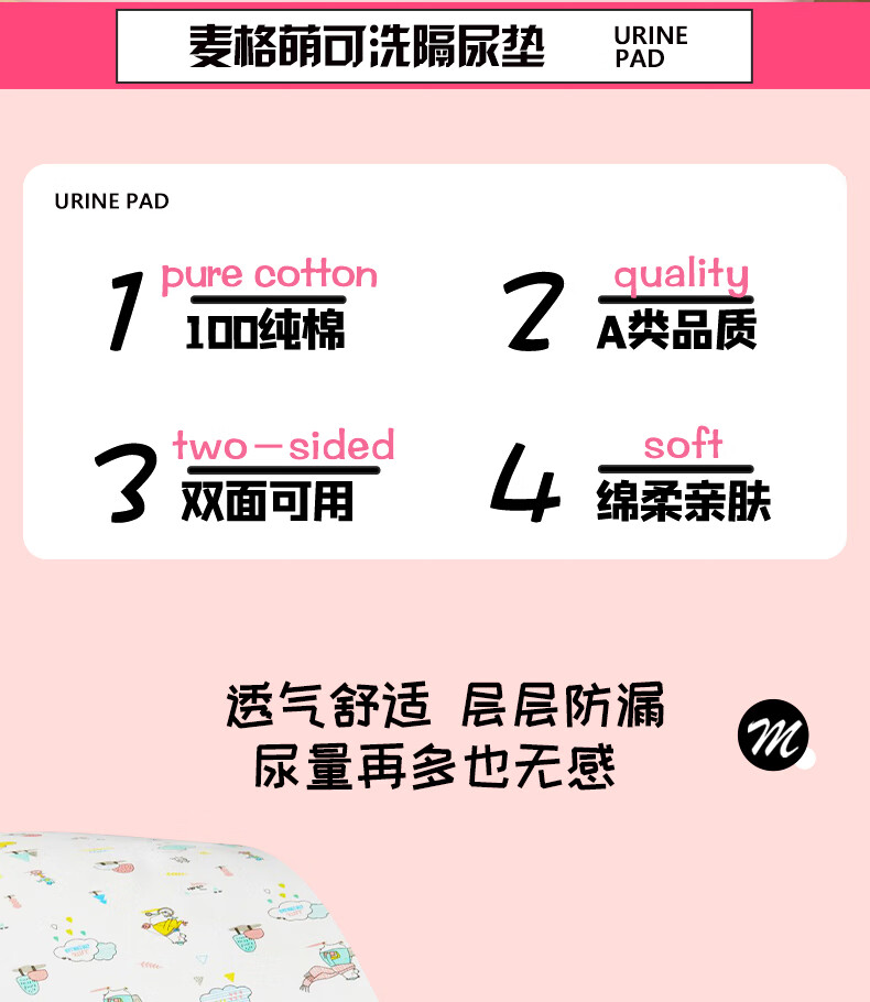 麦格萌婴儿隔尿垫可洗床垫护理垫月经垫防水隔尿大号床单35*45cm