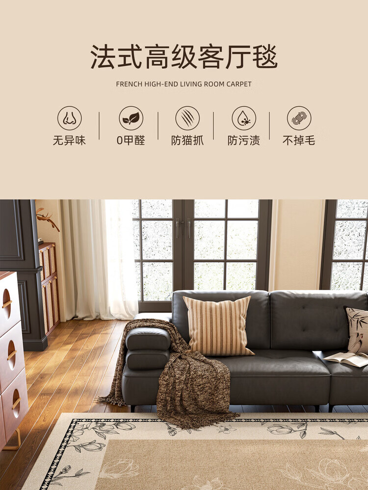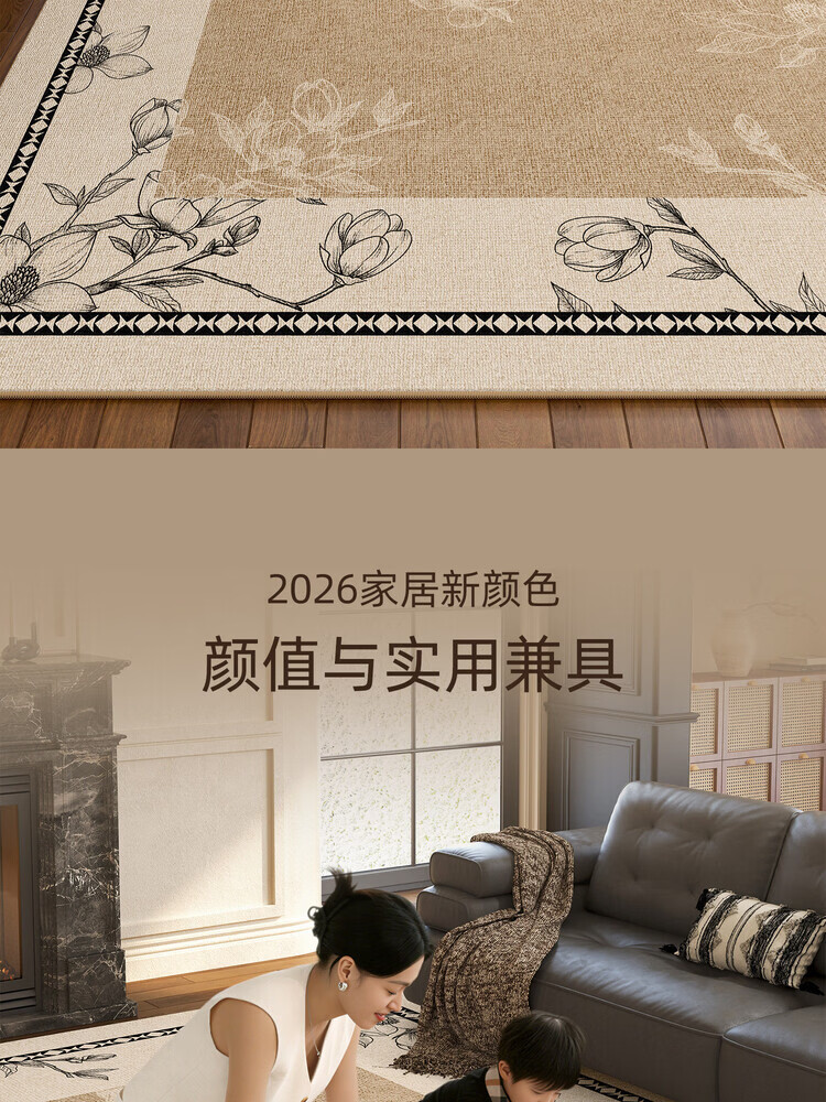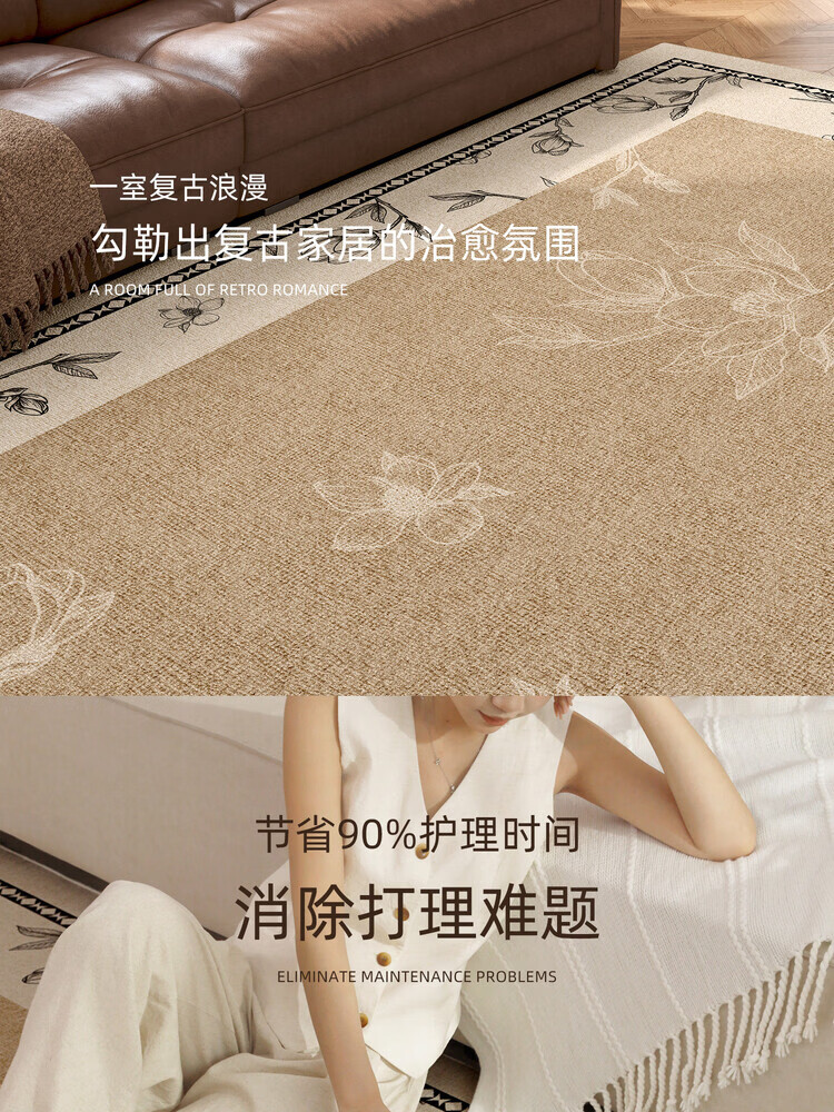 像素地毯客厅2026新款中古风沙发茶几地垫法式复古免洗可擦卧室床边毯 花吟-21558【80%客户的选择】 160cm*230cm【安全环保 家人放心】