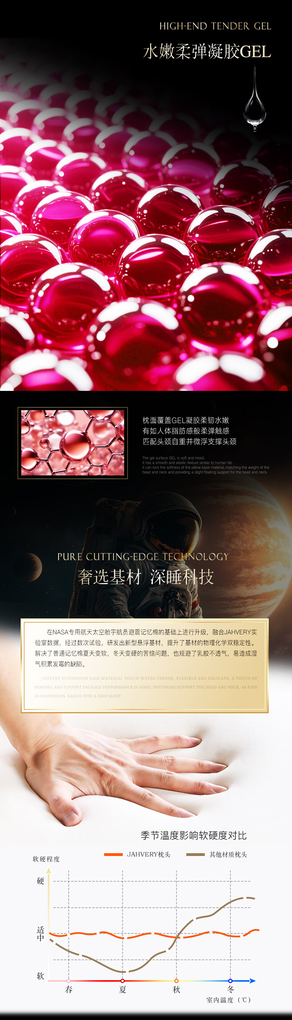 JAHVERY【轻奢定制】凝胶枕头颈椎枕护颈枕成人睡觉助睡眠专用记忆棉枕芯 云端凝胶-石榴红凝胶枕 68*40*10/12cm