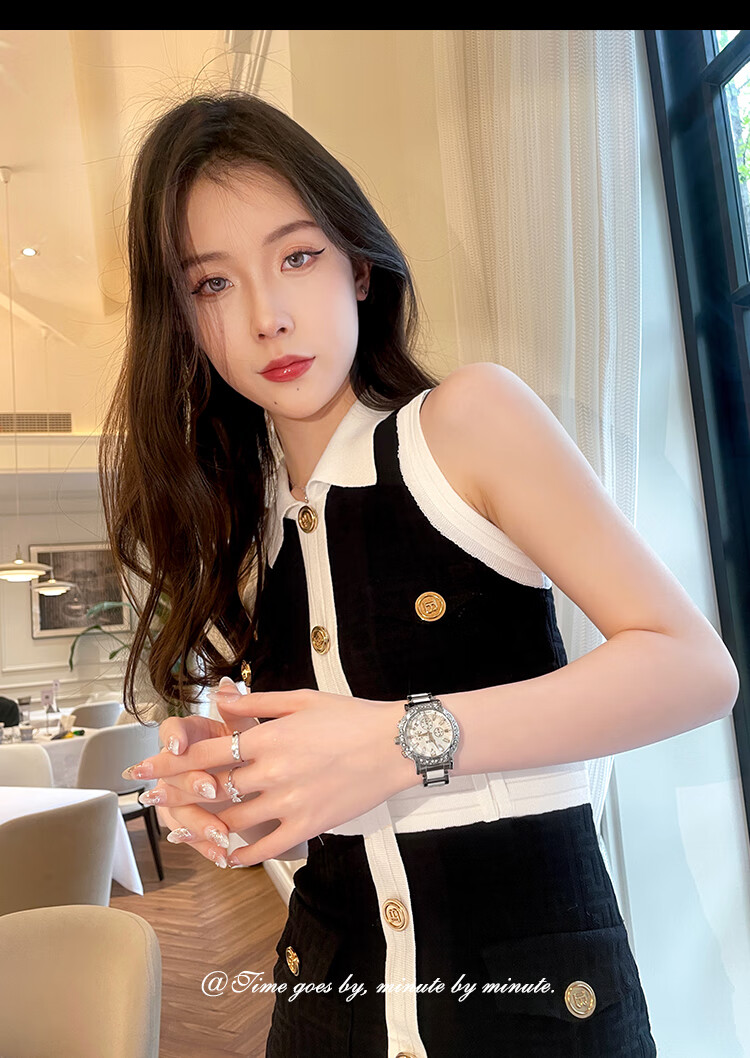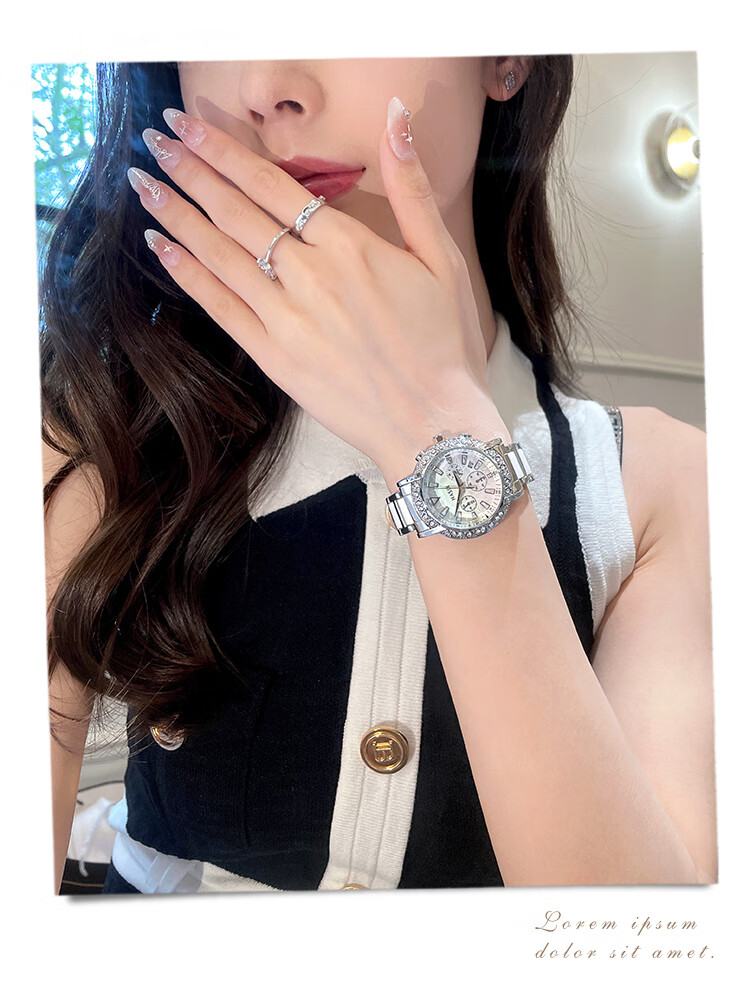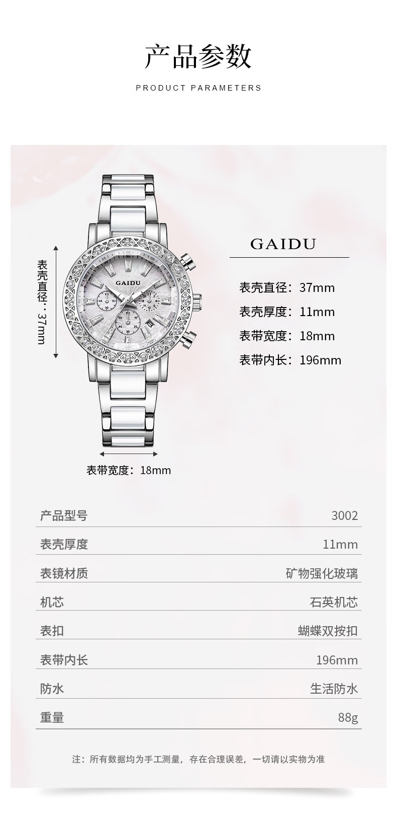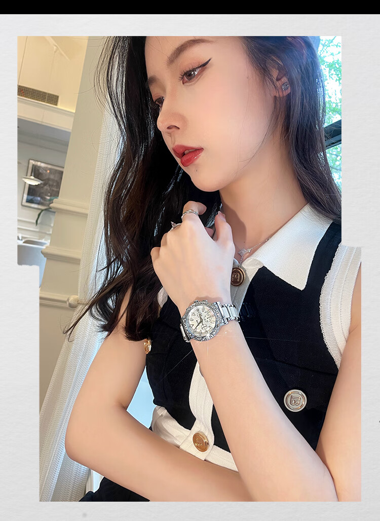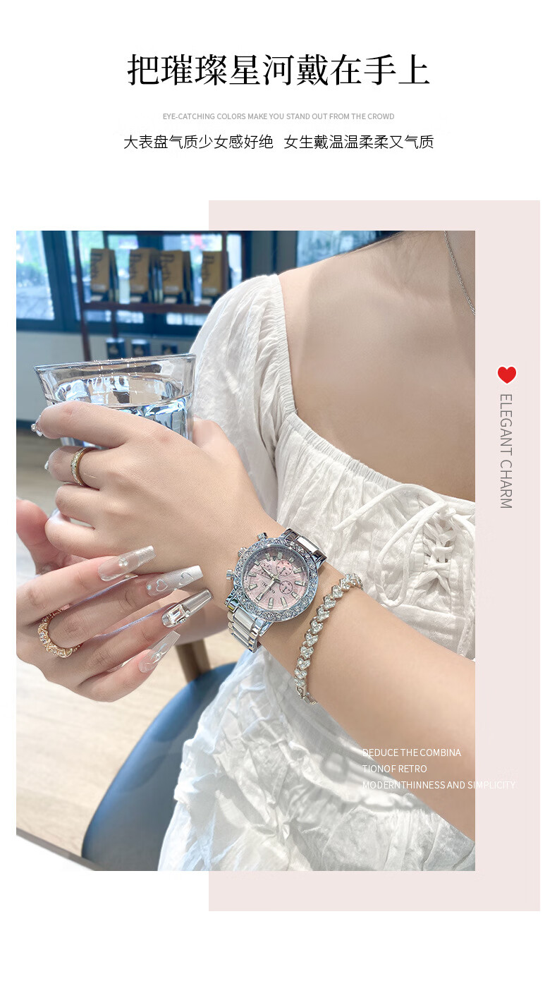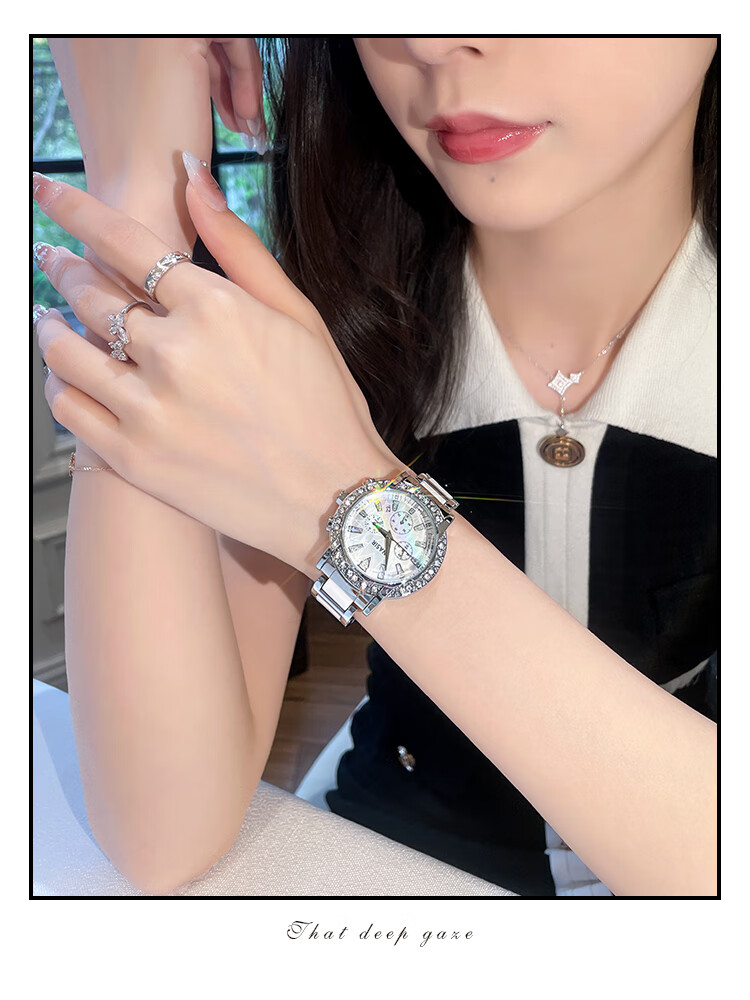 凯度(GAIDU)轻奢小众手表正品名牌时尚机械风镶钻陶瓷大表盘女士石英表礼物 陶瓷粉(送高档礼盒套装)