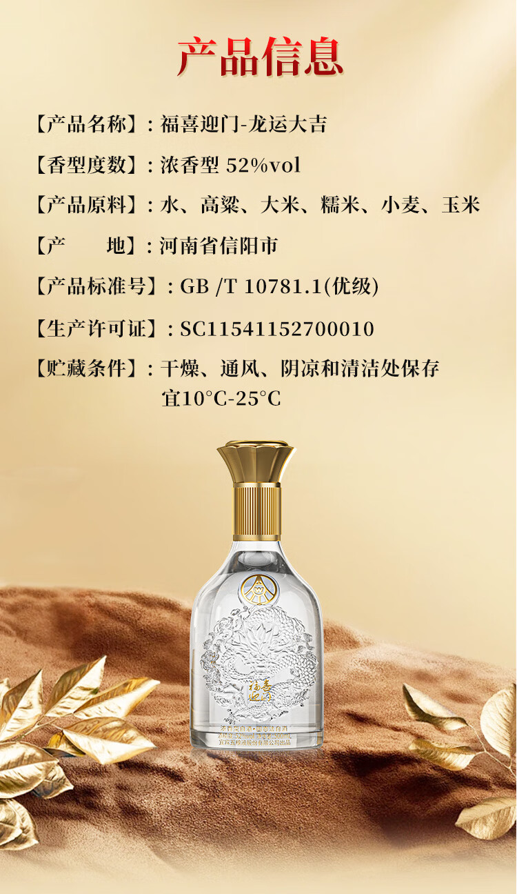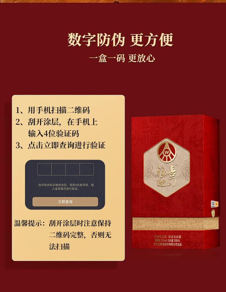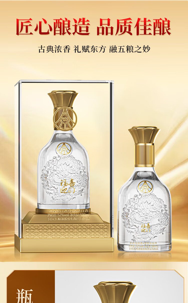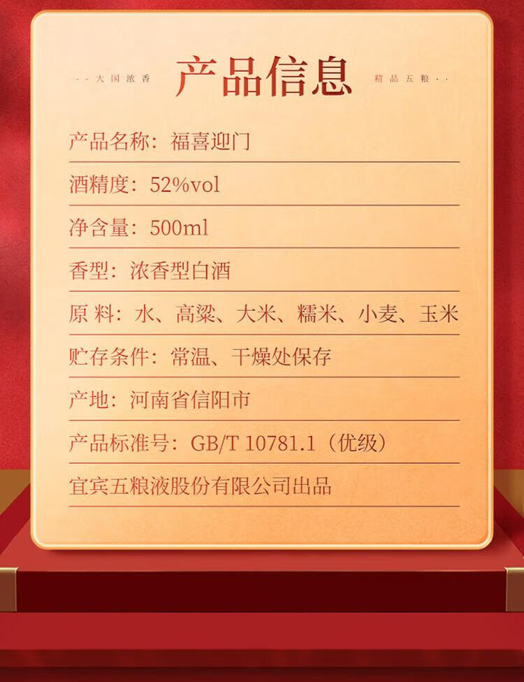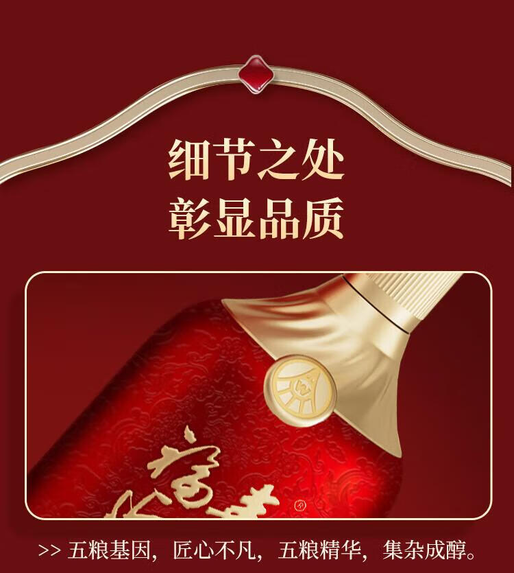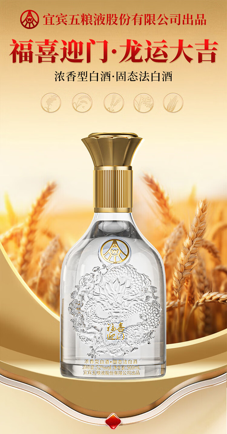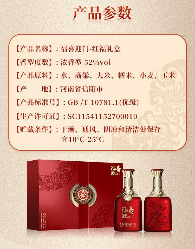 五粮浓香【五粮液出品】 福喜迎门 粮食酒浓香型白酒 送礼宴饮 52度 500mL 2瓶 臻选红双瓶