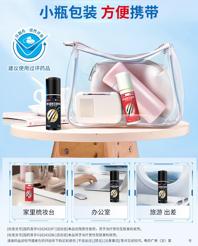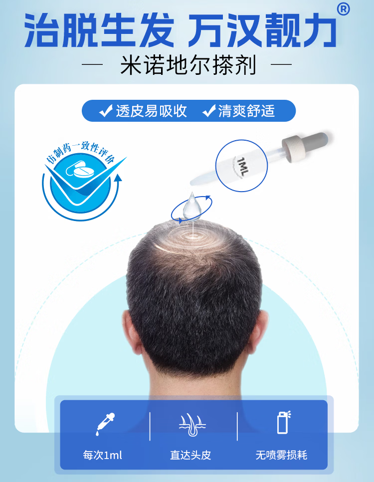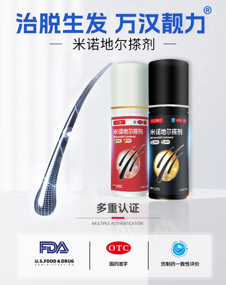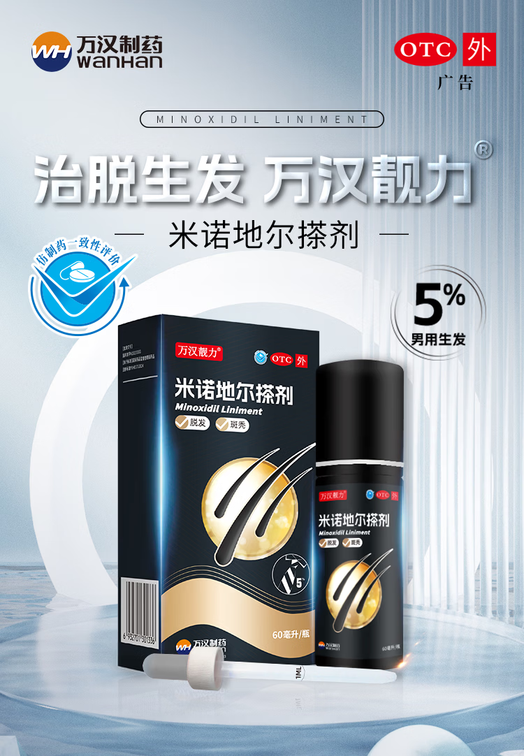 [万汉靓力]米诺地尔搽剂 5%*60ml 1盒装 5%60ml*1瓶用于治疗脱发严重男专用防脱生发育发际线增液洗发水脱发白 重度脱发体验款