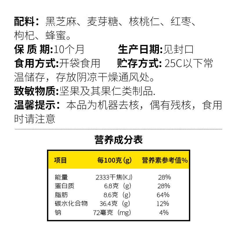 自然道4五珍红枣核桃枸杞黑芝麻丸桑葚零食 枸杞核桃黑芝麻丸250g*2袋