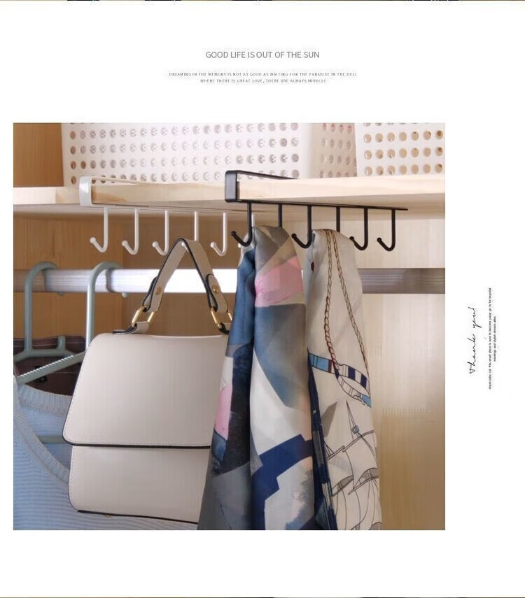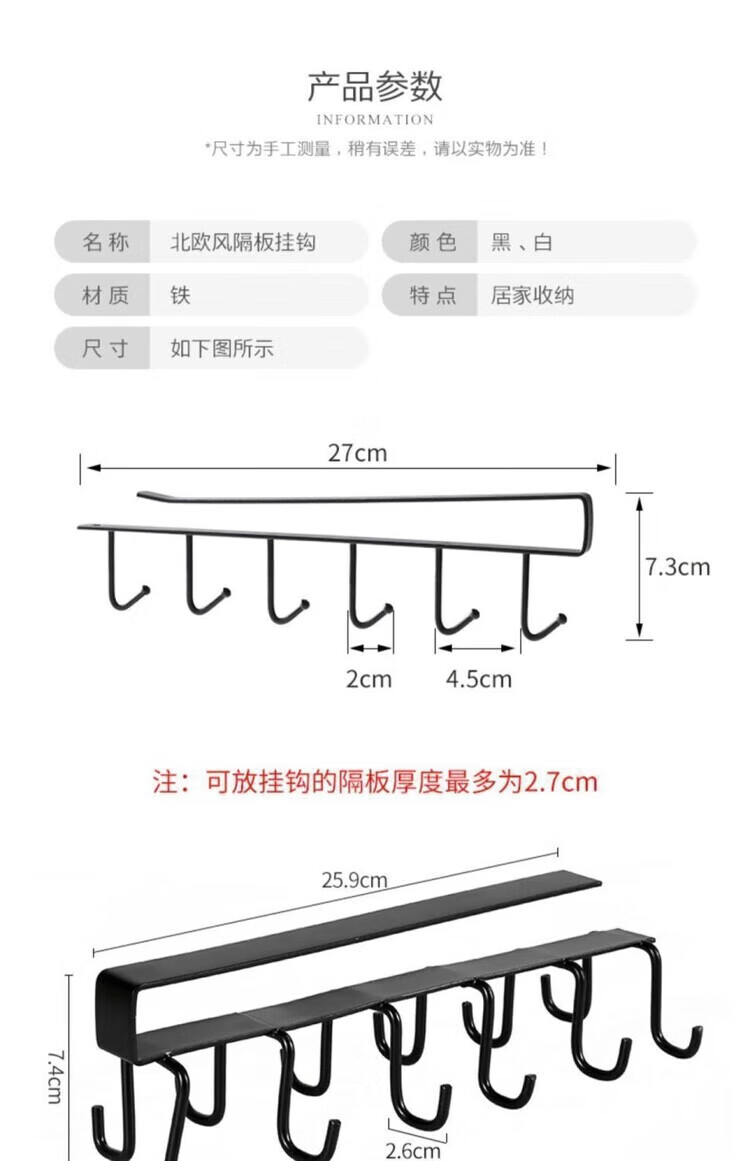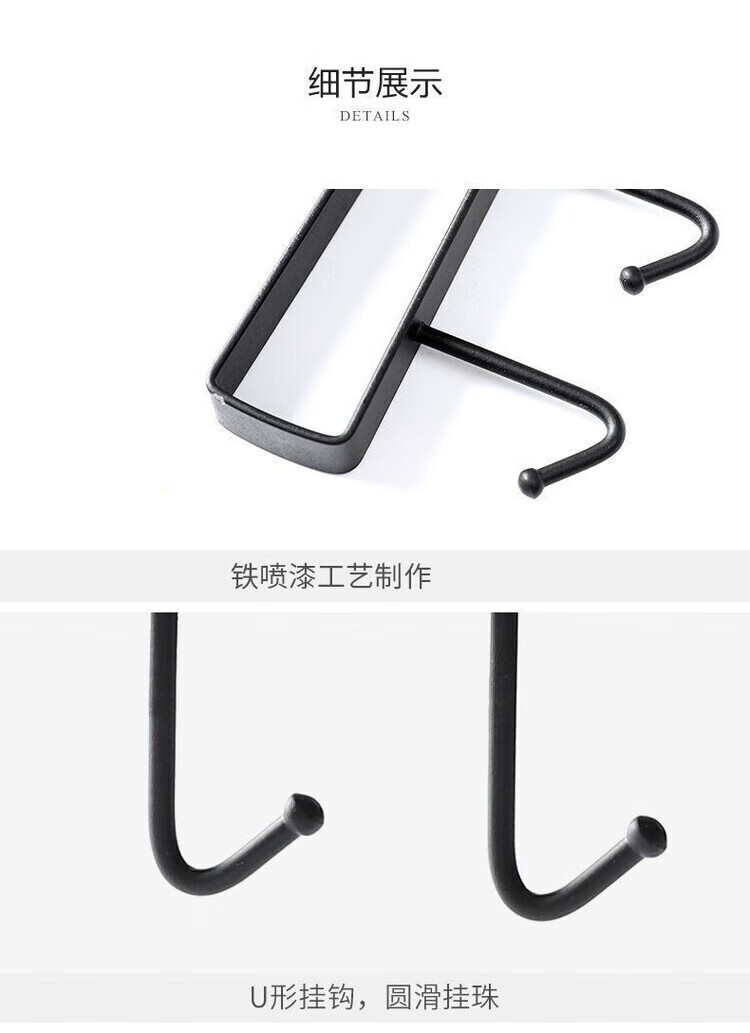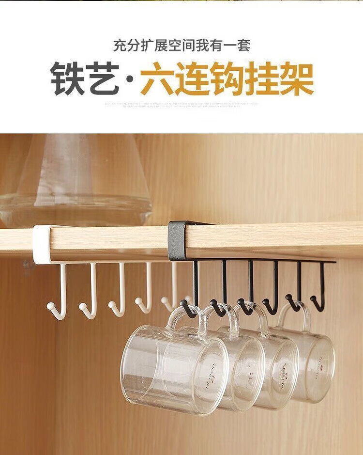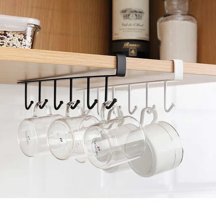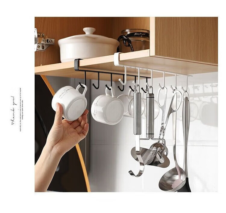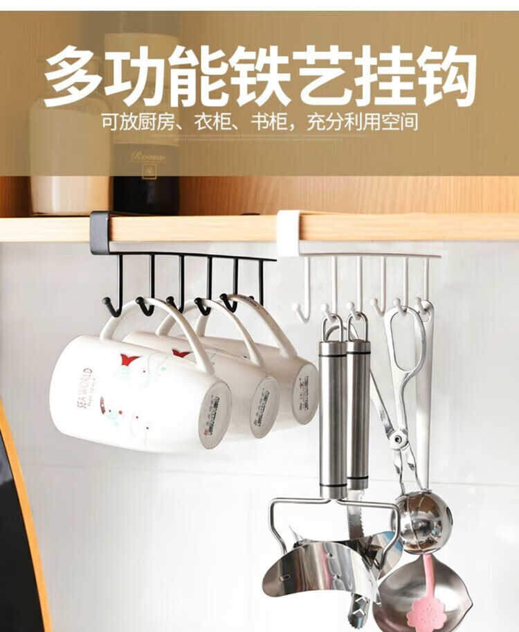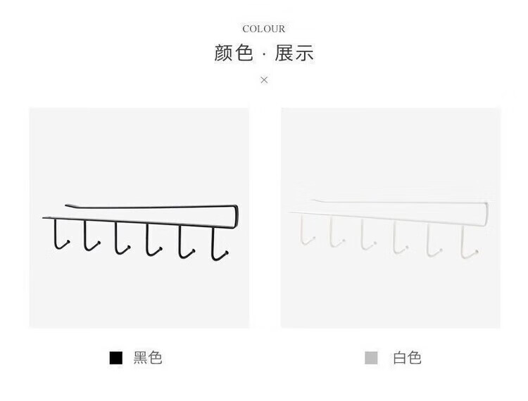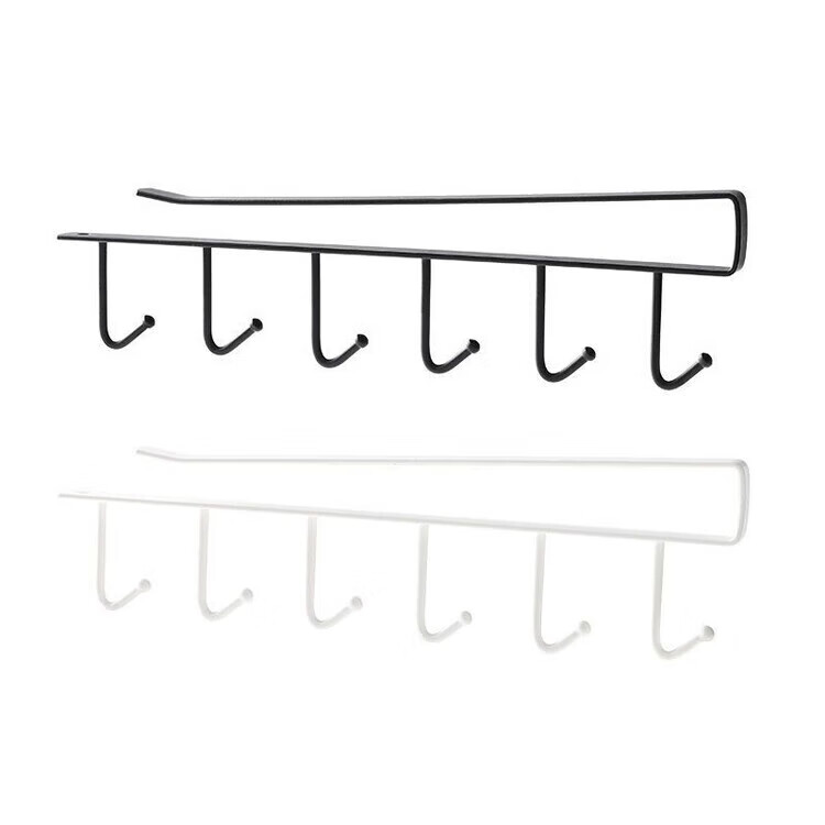 【甄选】厨房置物架无痕免打孔挂钩一排橱柜门挂架挂钩架悬挂式收 厨房衣柜下挂钩-黑色【1个装】