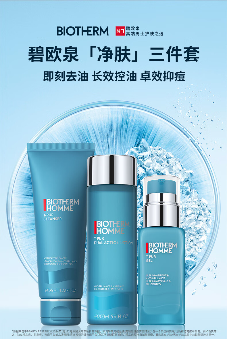 碧欧泉男士净肤细致套装(洗面奶+爽肤水+保湿乳)礼盒生日圣诞礼物送男友