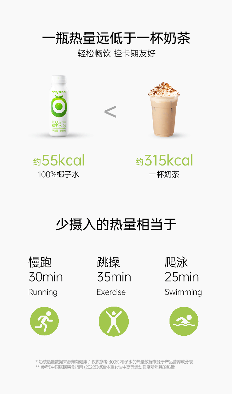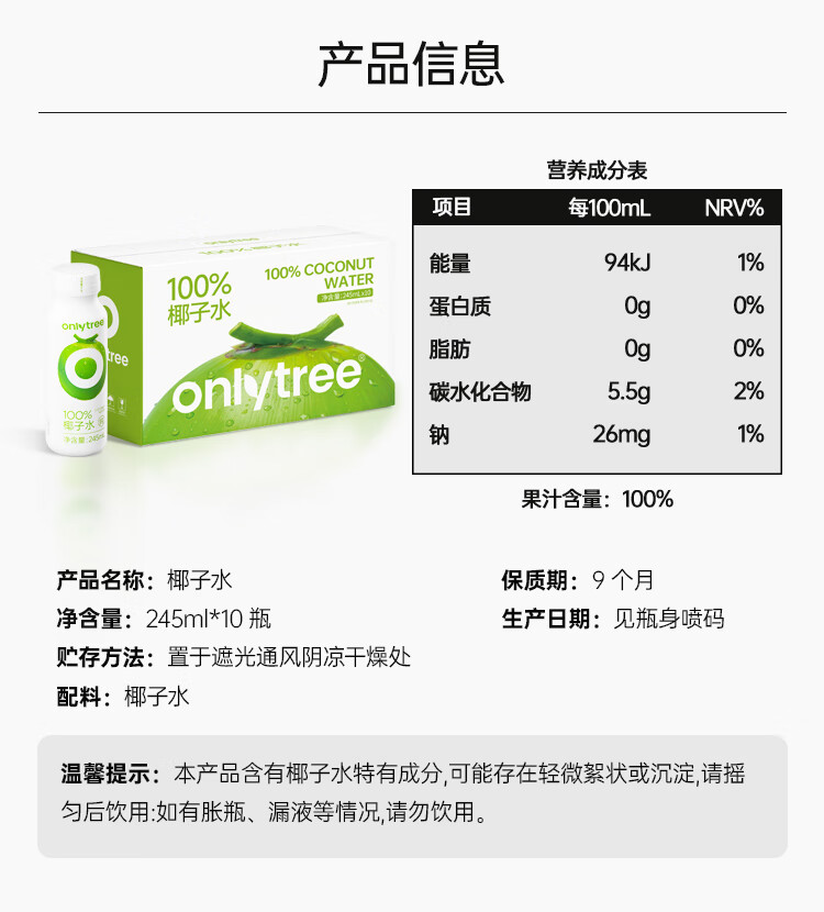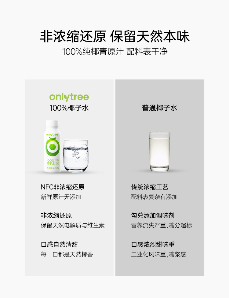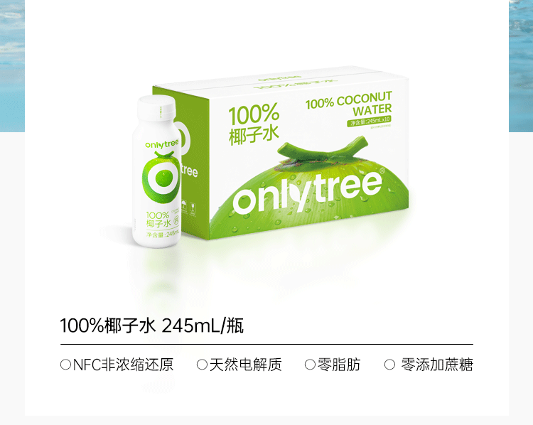 ONLYTREE100%纯椰子水椰汁饮料nfc果汁饮料0脂肪含天然电解质245ml*10瓶