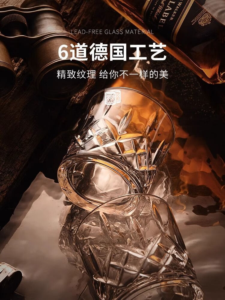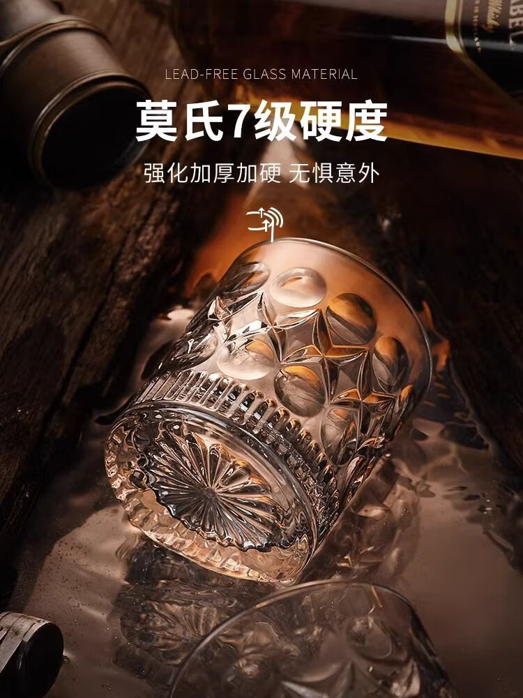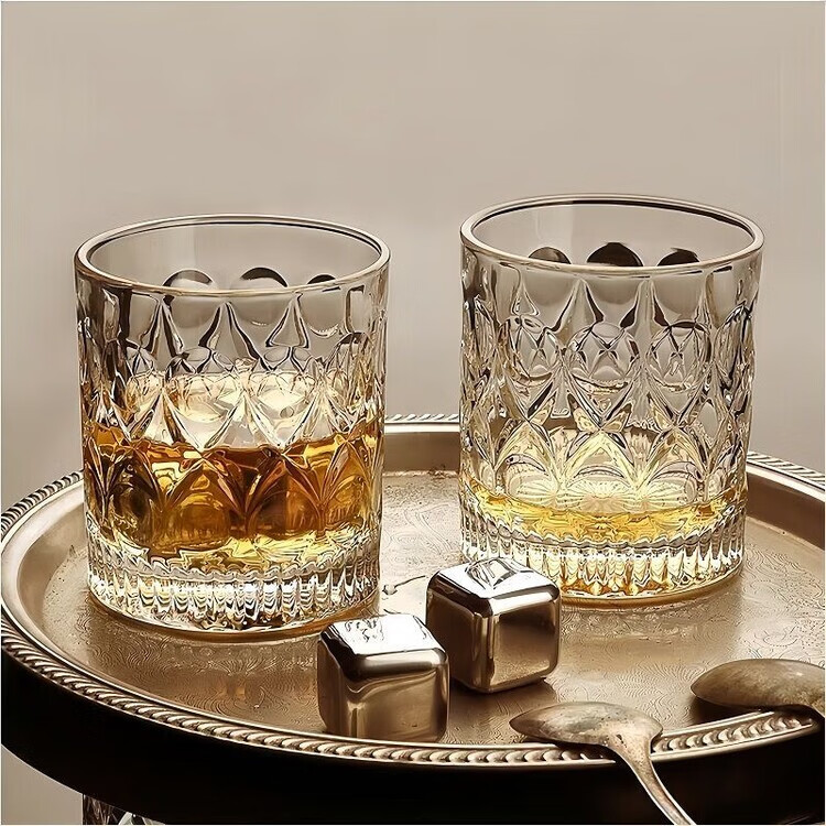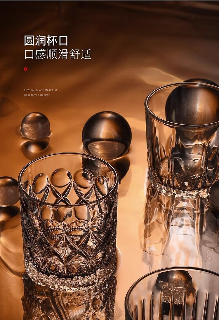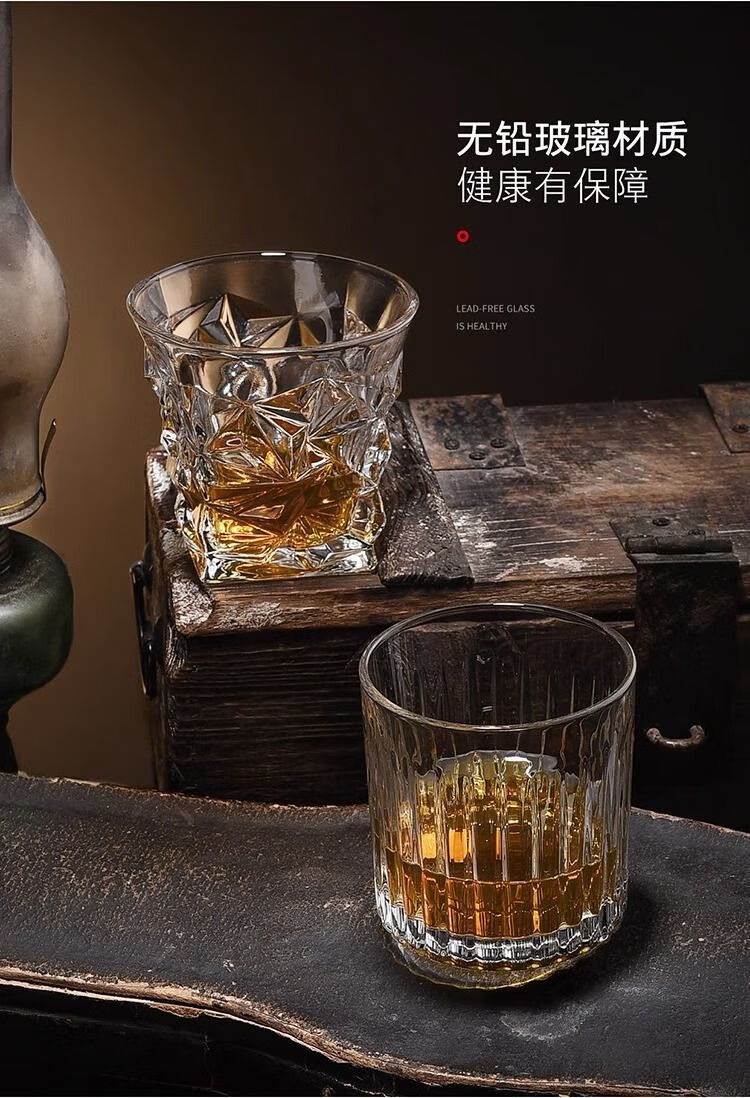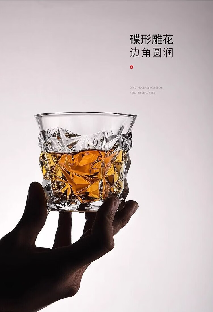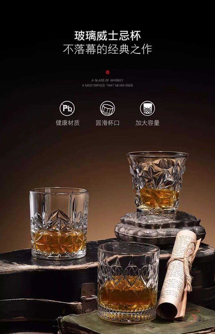 简漾威士忌酒杯家用复古水晶玻璃洋酒杯创意ins风八角啤酒杯酒吧套装 280ml卡伦花雕款