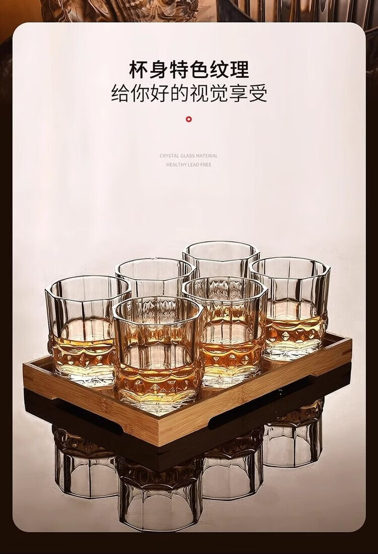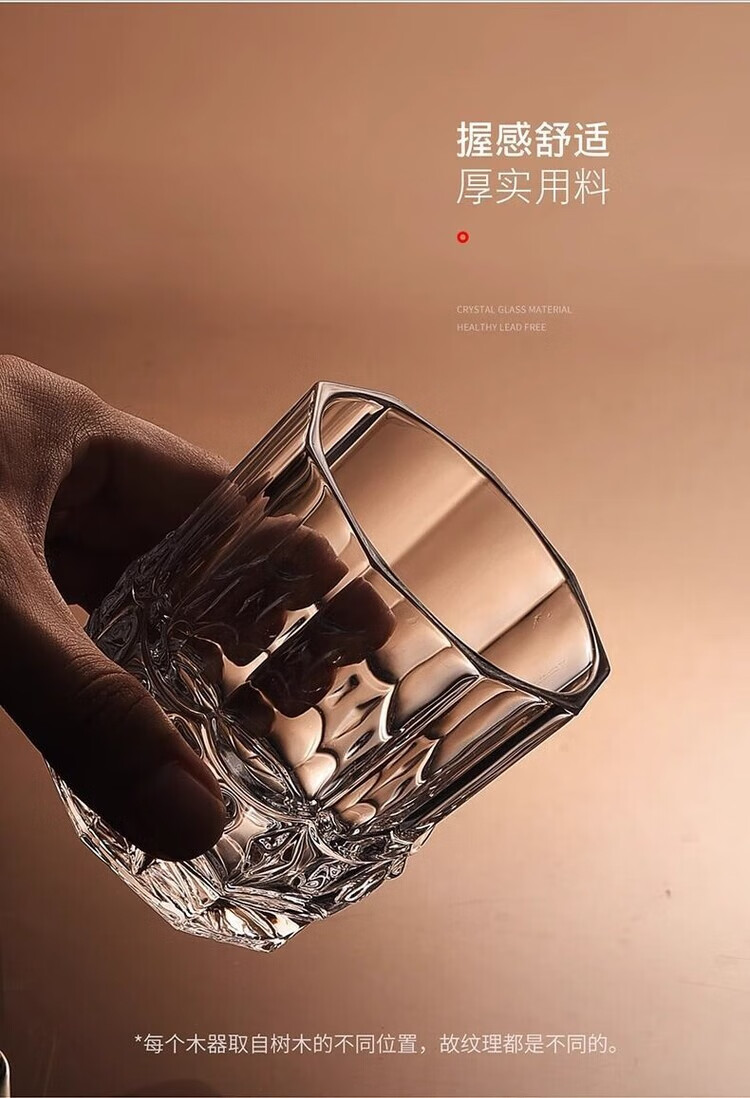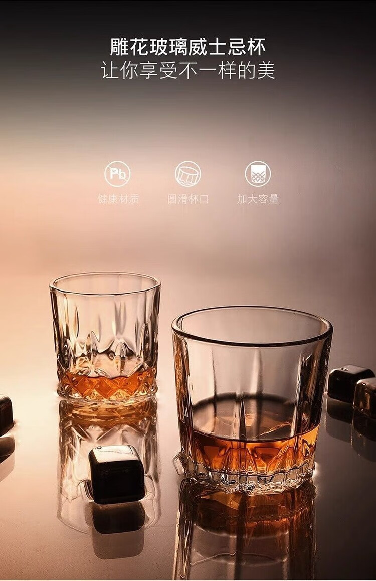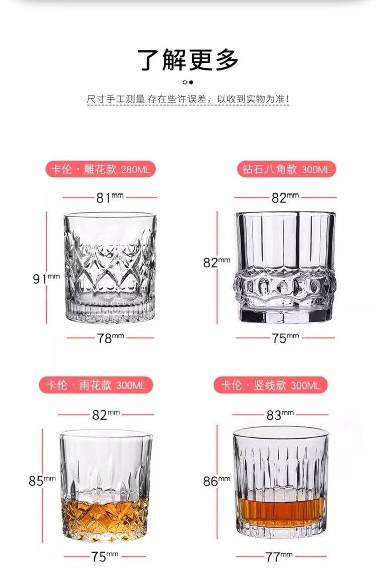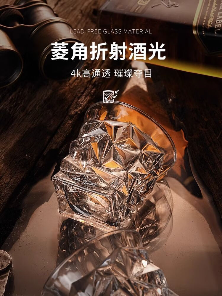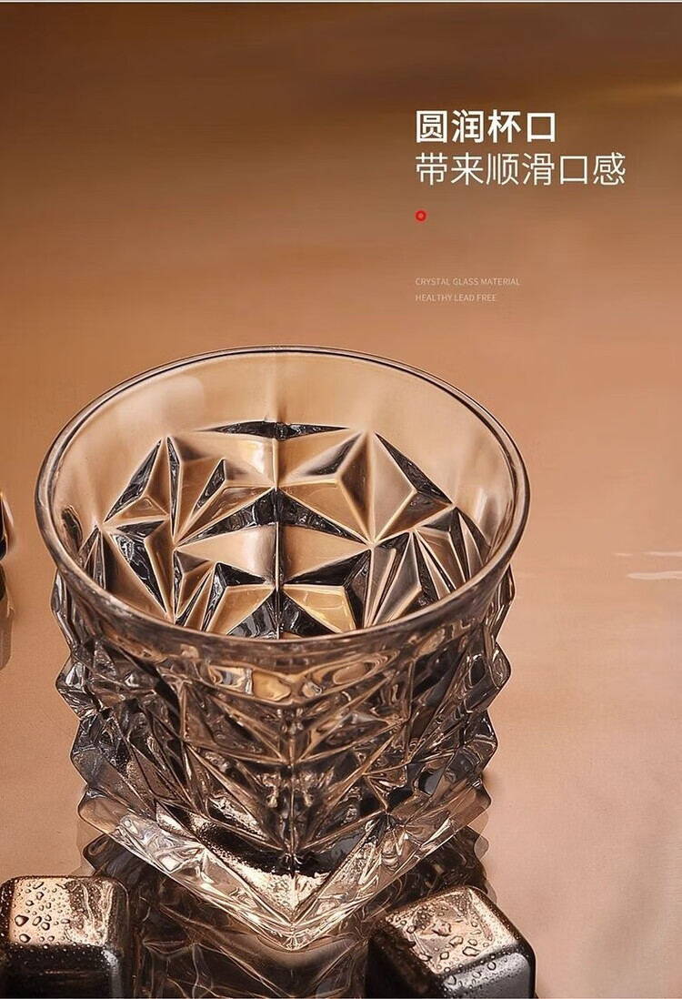 简漾威士忌酒杯家用复古水晶玻璃洋酒杯创意ins风八角啤酒杯酒吧套装 280ml卡伦花雕款