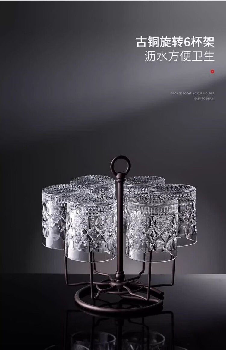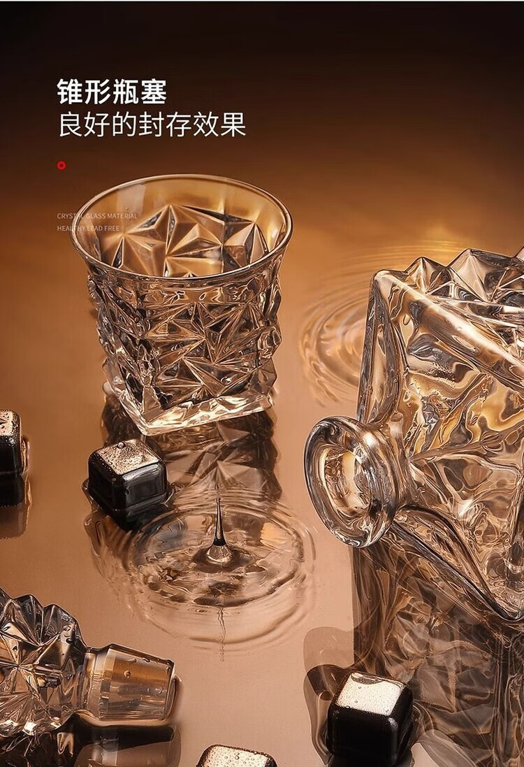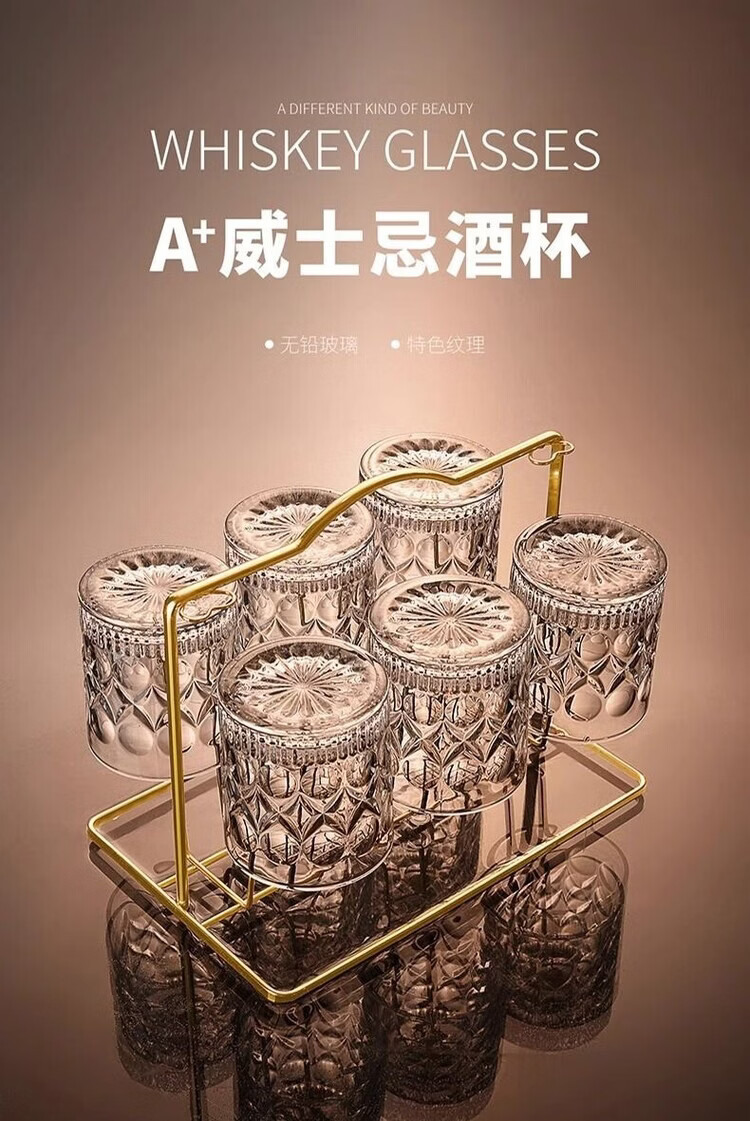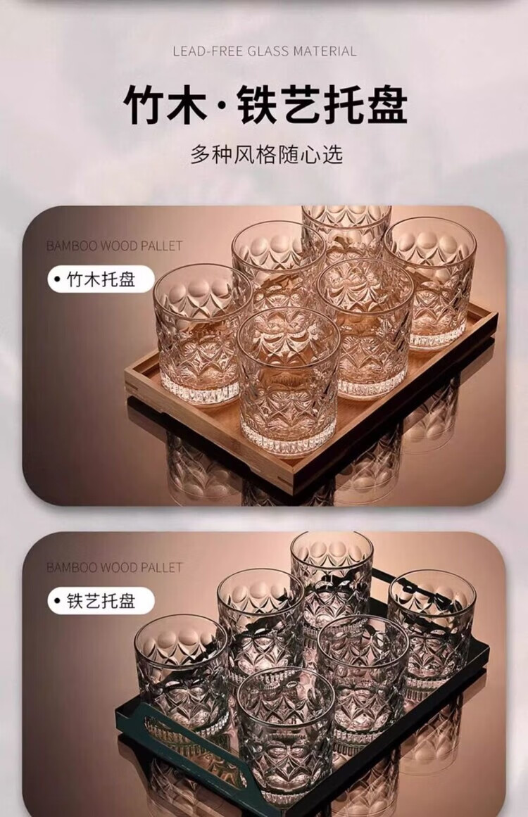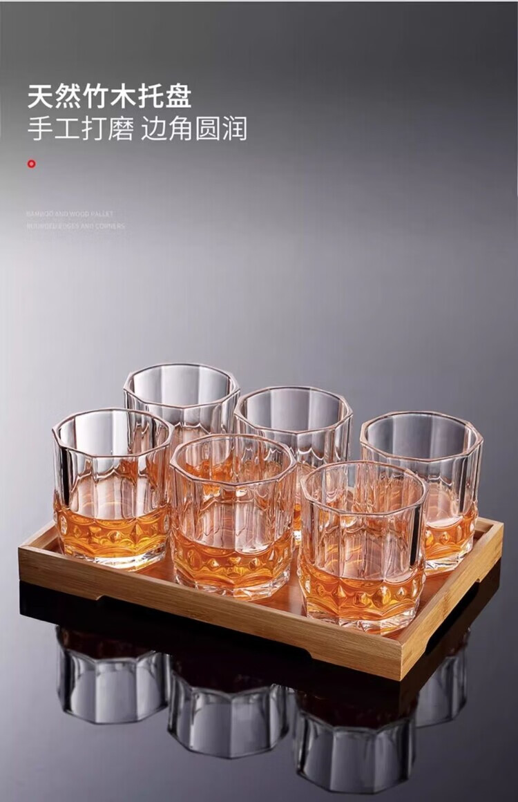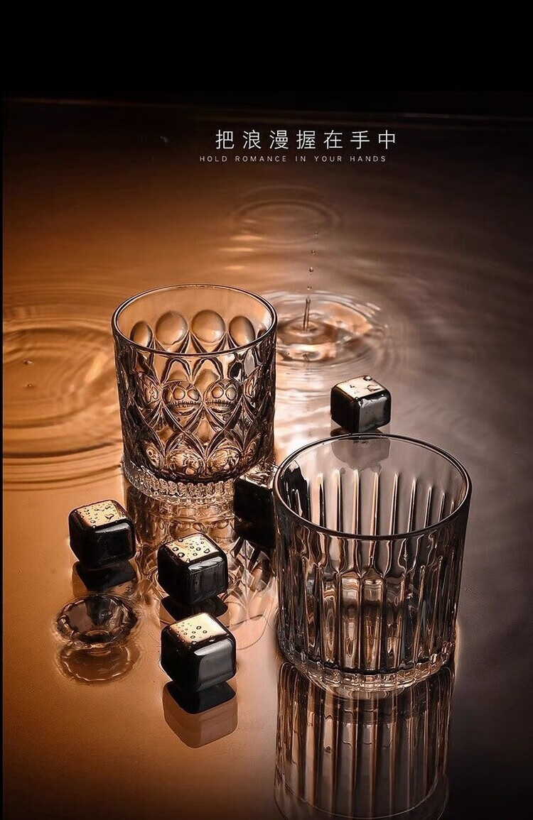 简漾威士忌酒杯家用复古水晶玻璃洋酒杯创意ins风八角啤酒杯酒吧套装 280ml卡伦花雕款