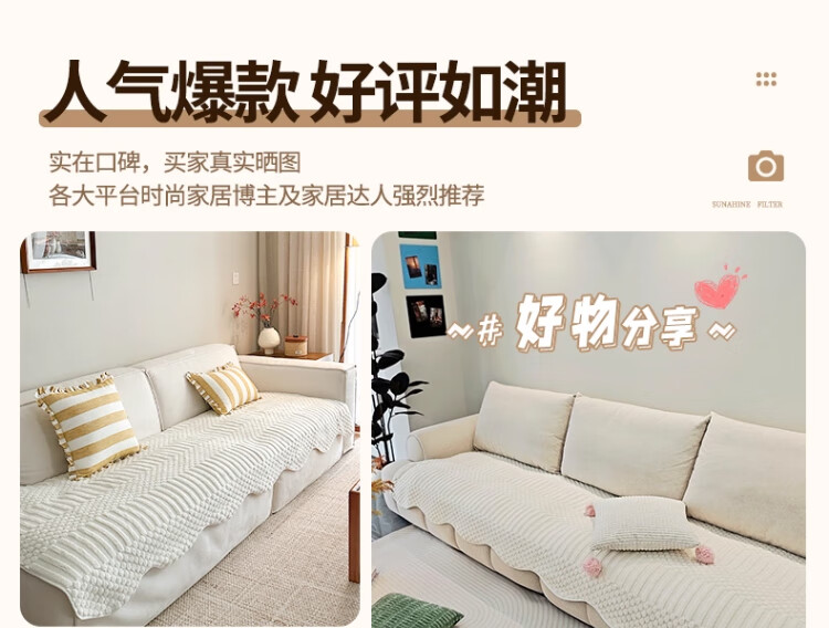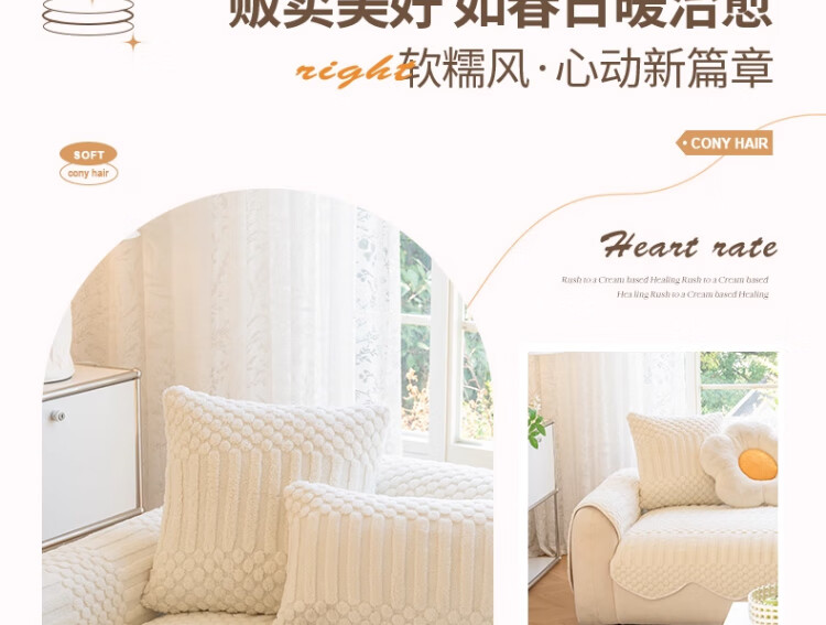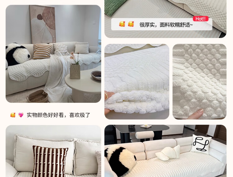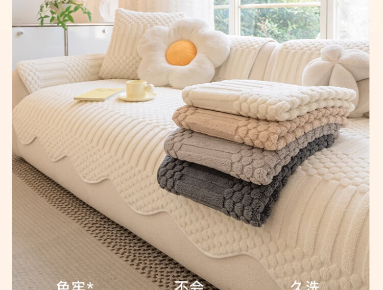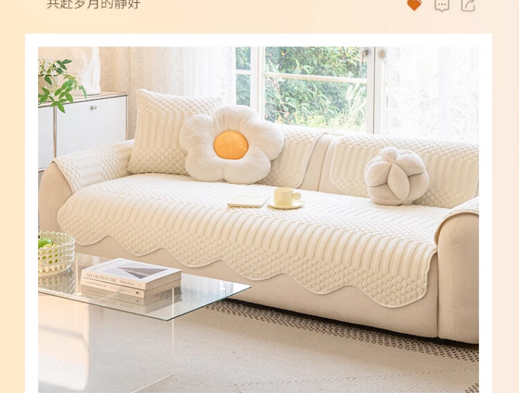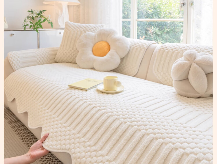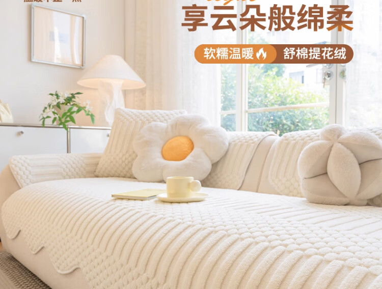无印良品【防静电】沙发垫冬季奶油风舒棉绒加厚防滑坐垫高级感沙发座垫套 异形慕丝-白色 加厚舒绒棉-秋冬必备 90*280cm (大三人位/四人位)